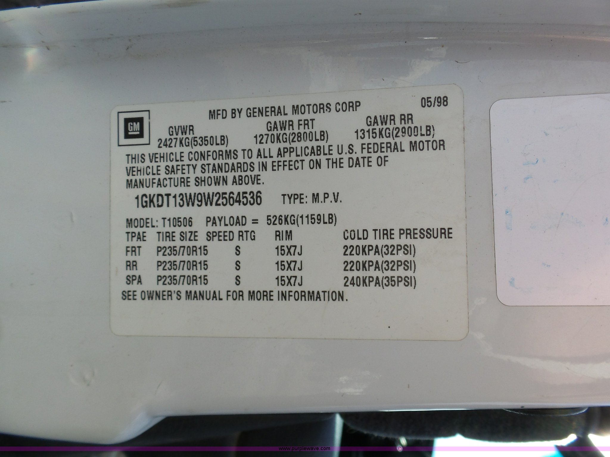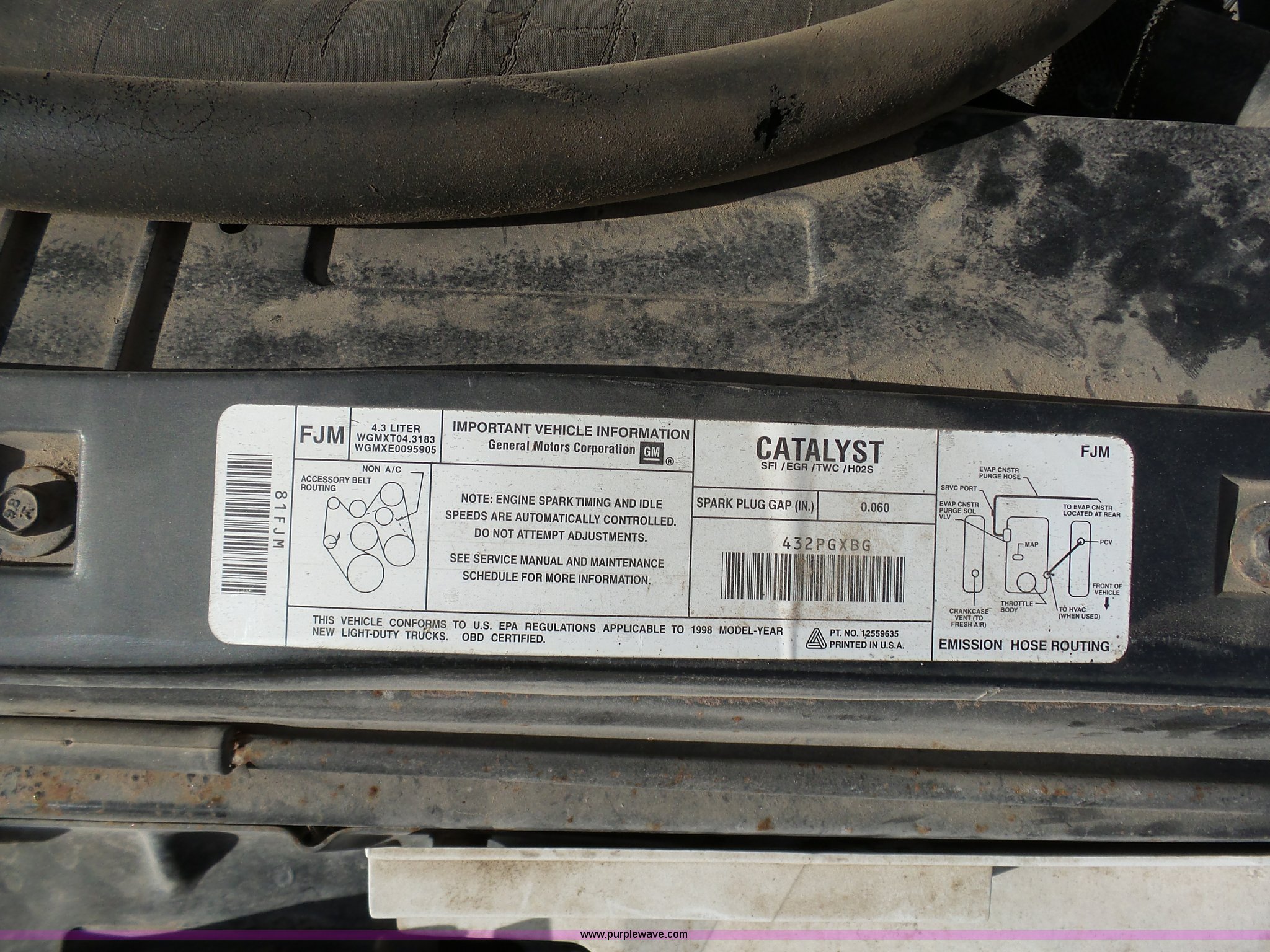 Purple Wave is selling a used Passenger Vehicle in Missouri. This item is a 1998 GMC Jimmy SL SUV with the following: 160,969 miles on odometer, 4.3L V6 OHV 12V gas engine, Automatic transmission, AC and heat, Tilt, Cruise, AM/FM, Power windows, locks, and mirrors, Cloth interior, Receiver hitch, Trailer wiring, 235/75R16 tires, Check engine light on