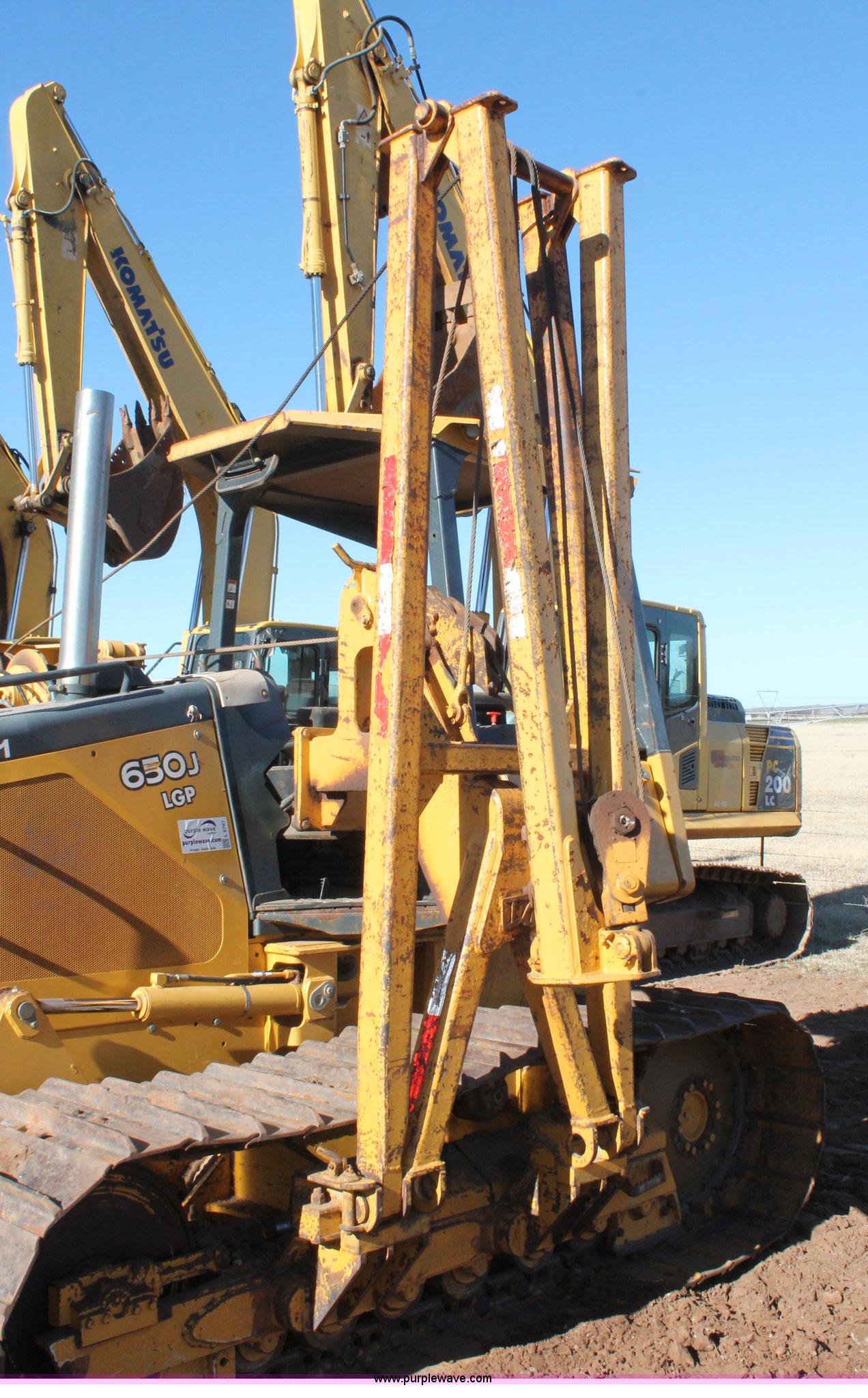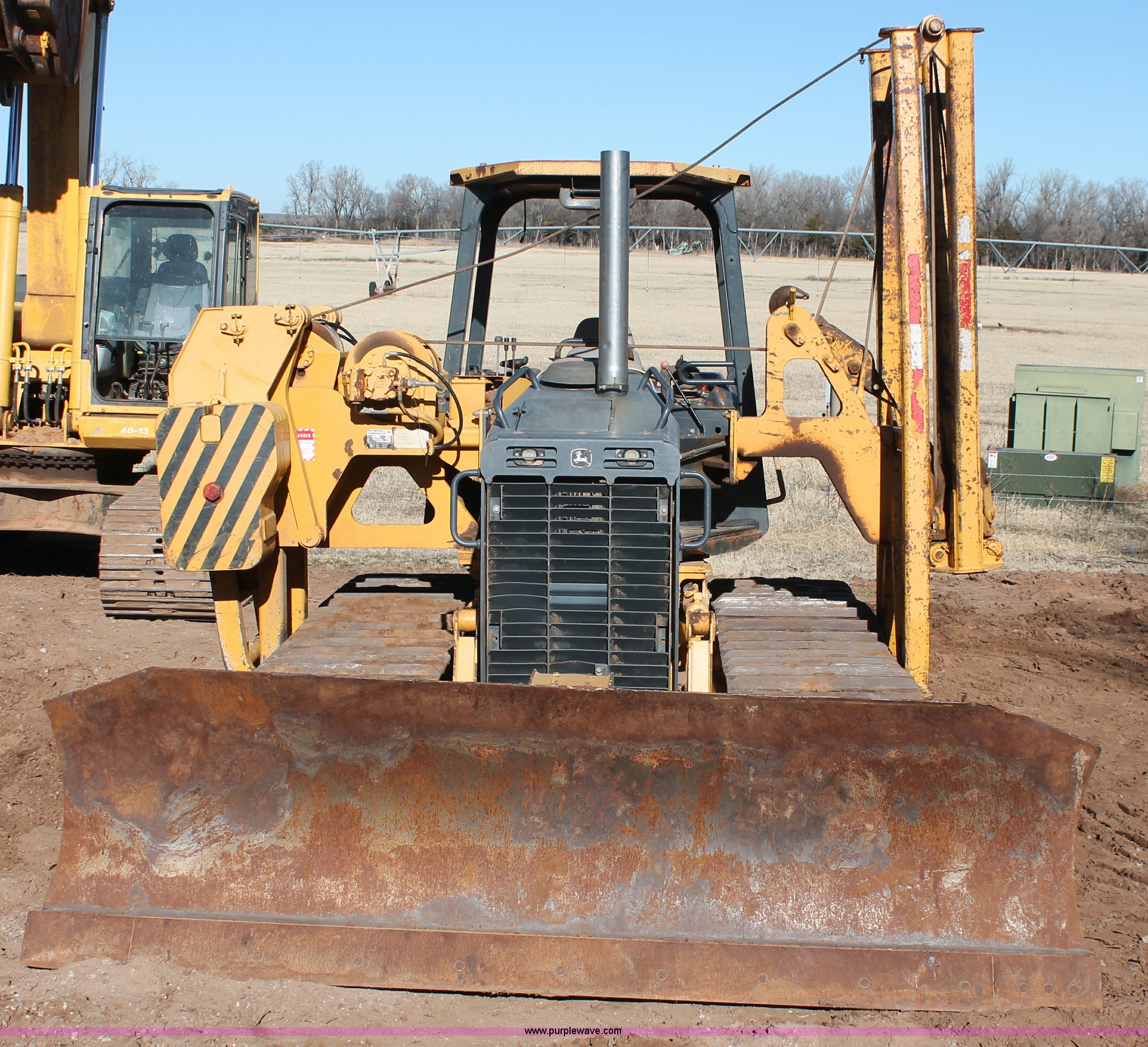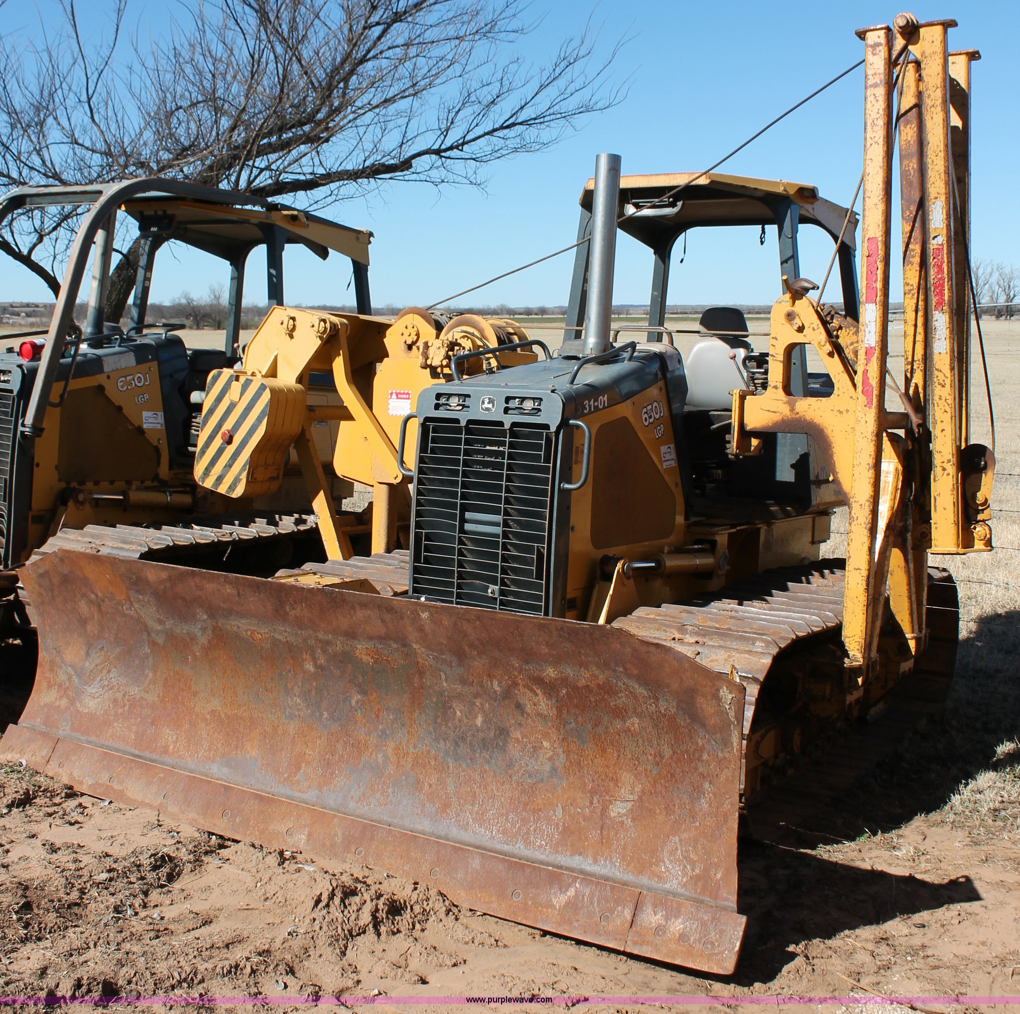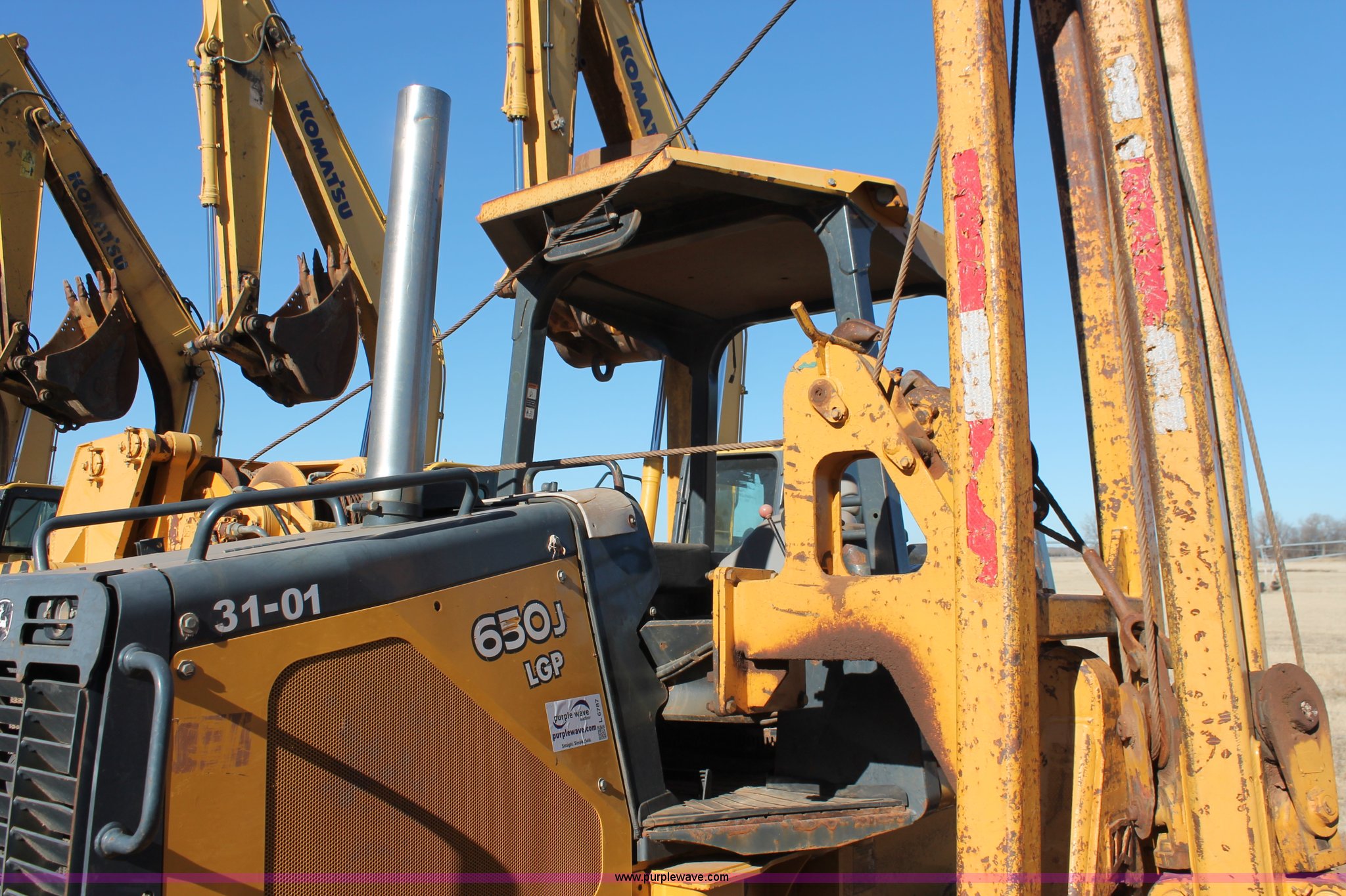 Purple Wave is selling a used Crawler Pipelayer in Oklahoma. This item is a 2007 John Deere 650J LGP pipelayer with the following: 5,312 hours on meter, John Deere 4045T 4.5L six cylinder turbo diesel engine, 99 HP, Hydrostatic transmission, OROPS, Joystick steering, Suspension seat, Front and rear work lights, 130"W six-way straight dozer blade, Midwestern M520C pipelayer, 20,000 lbs lift capacity, 20' boom length, Rear draw bar, Seven bottom rollers, 27.5"W single grouser track pads, Serial T0650JX149355, Unit# 31-01
