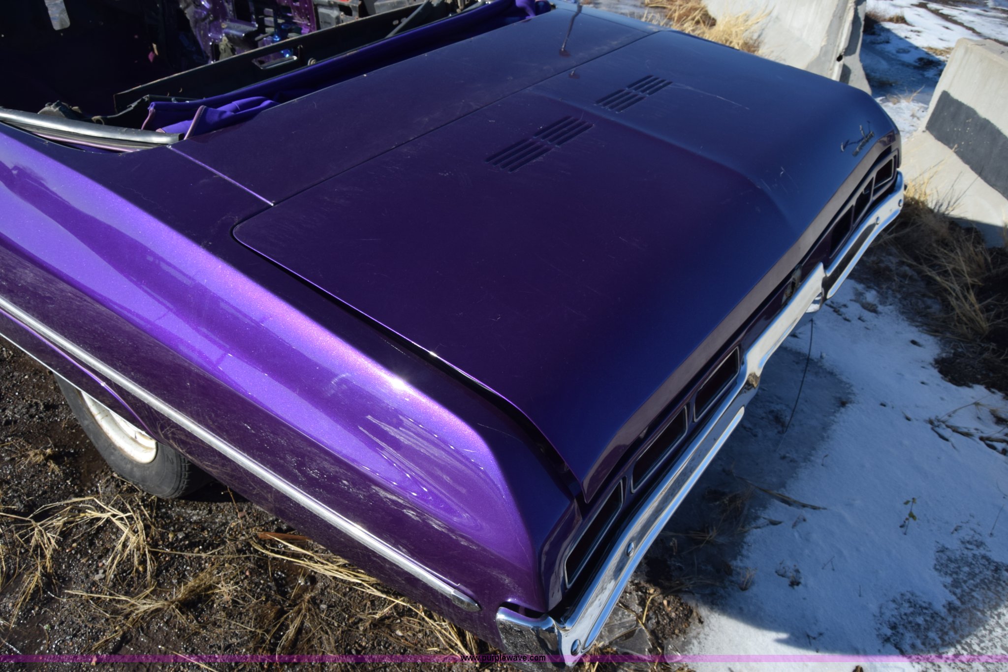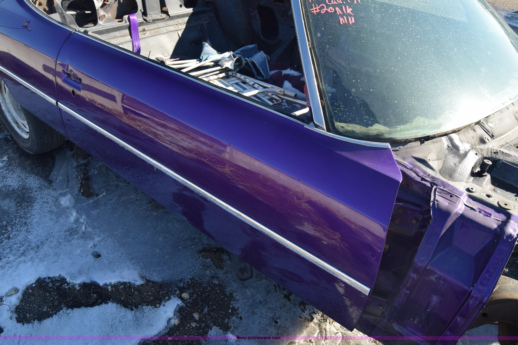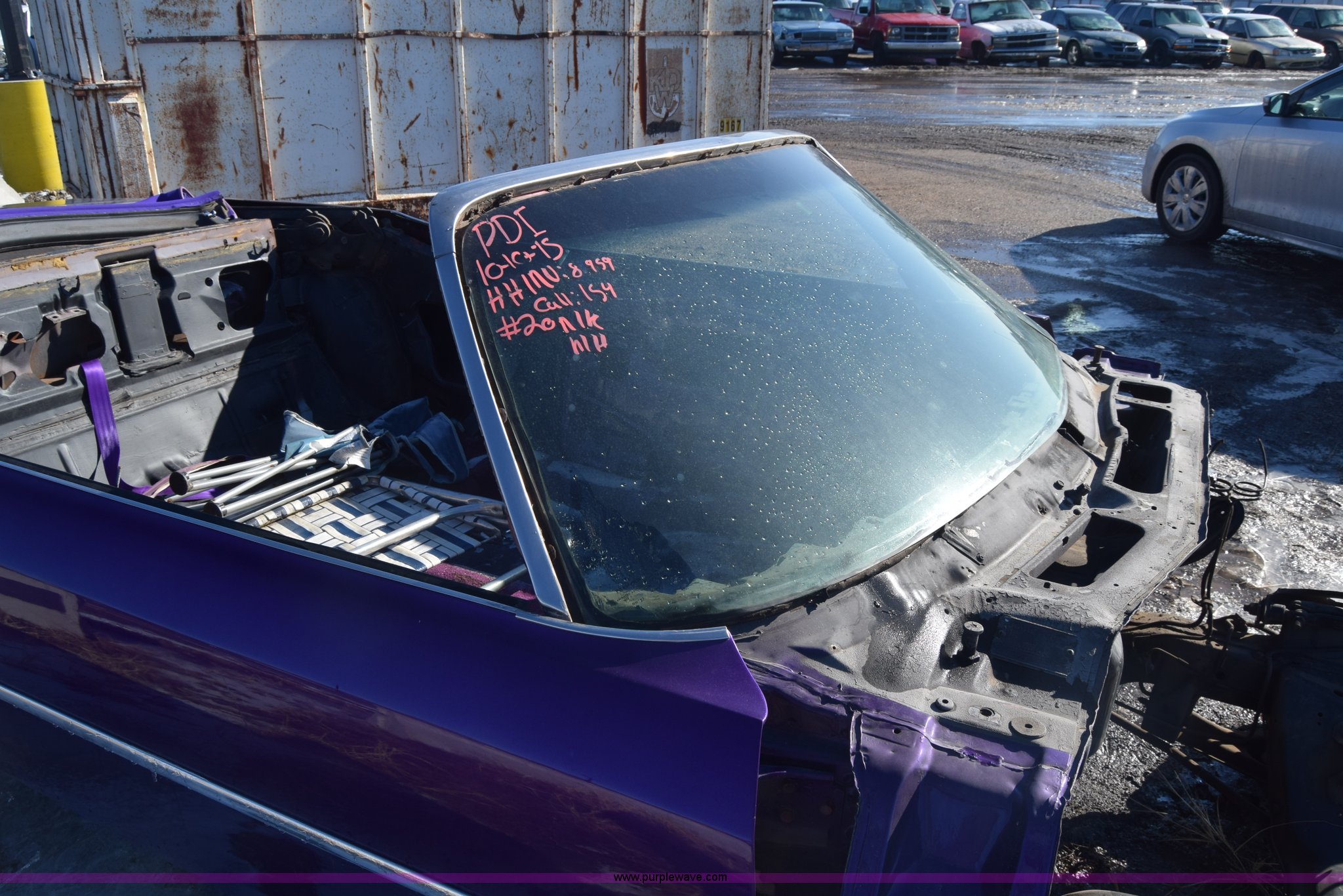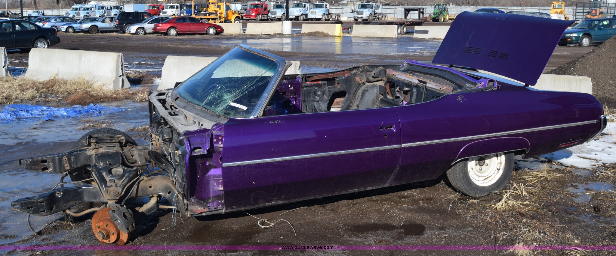 Purple Wave is selling a used Passenger Vehicle in Kansas. This item is a 1971 Chevrolet Impala with the following: Unknown miles on odometer, Engine removed, Transmission removed, 205/70R15 tires, Front end removed, One wheel removed, Parts missing, Seats missing, Windshield cracked, Interior/exterior cosmetic damage, Dents and scratches, Case# 15C027355