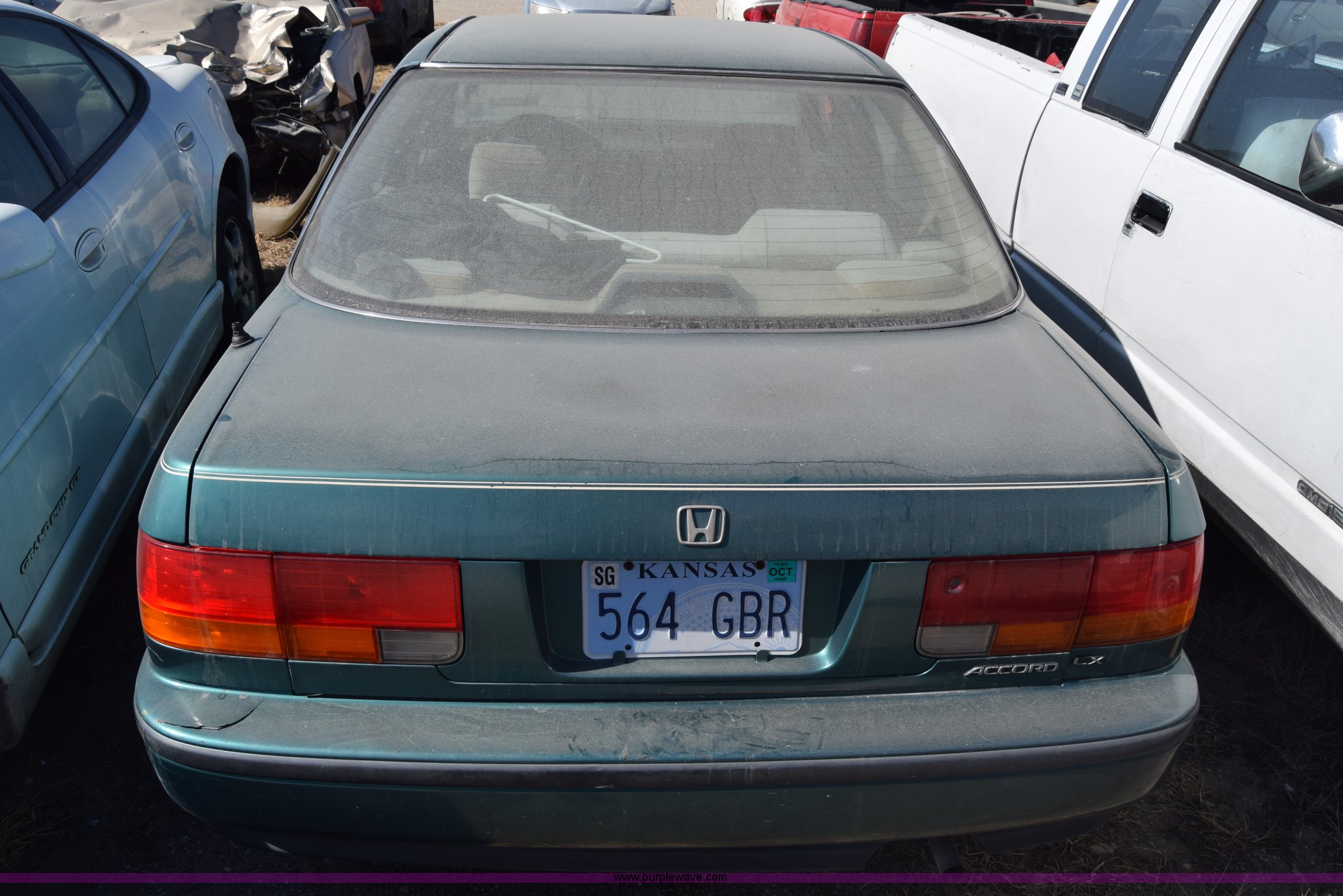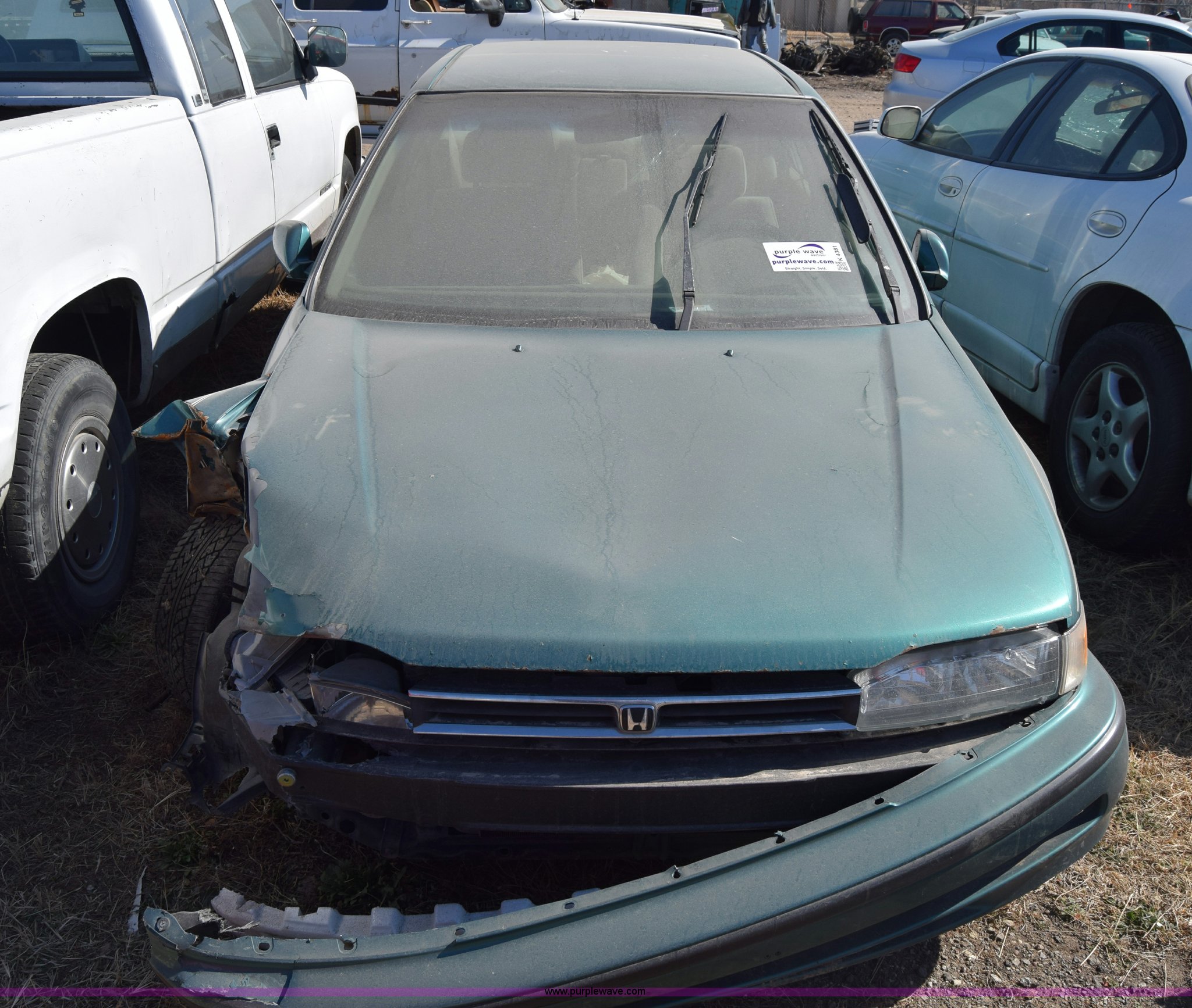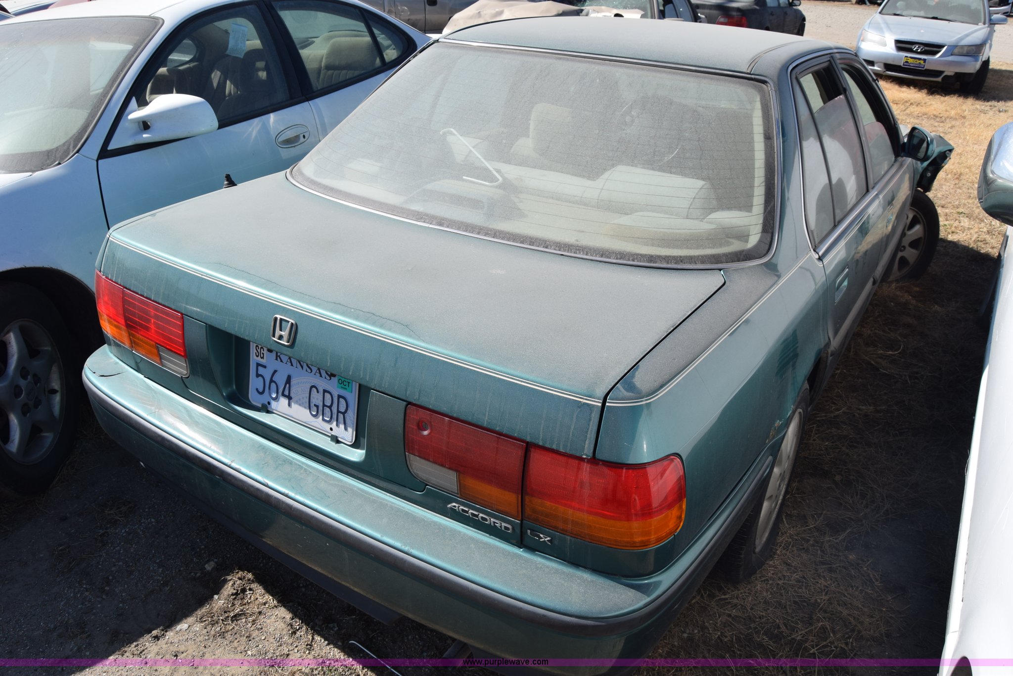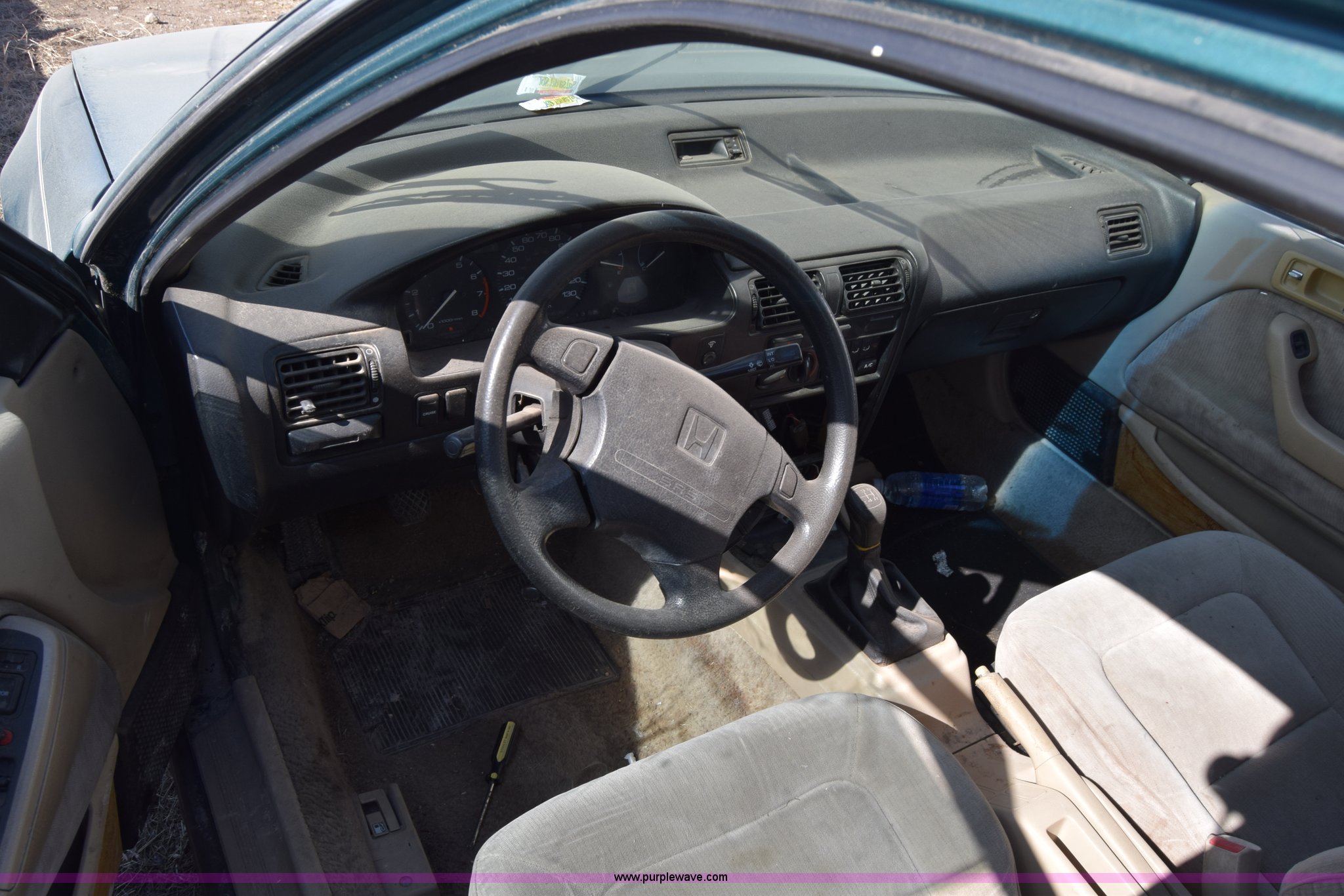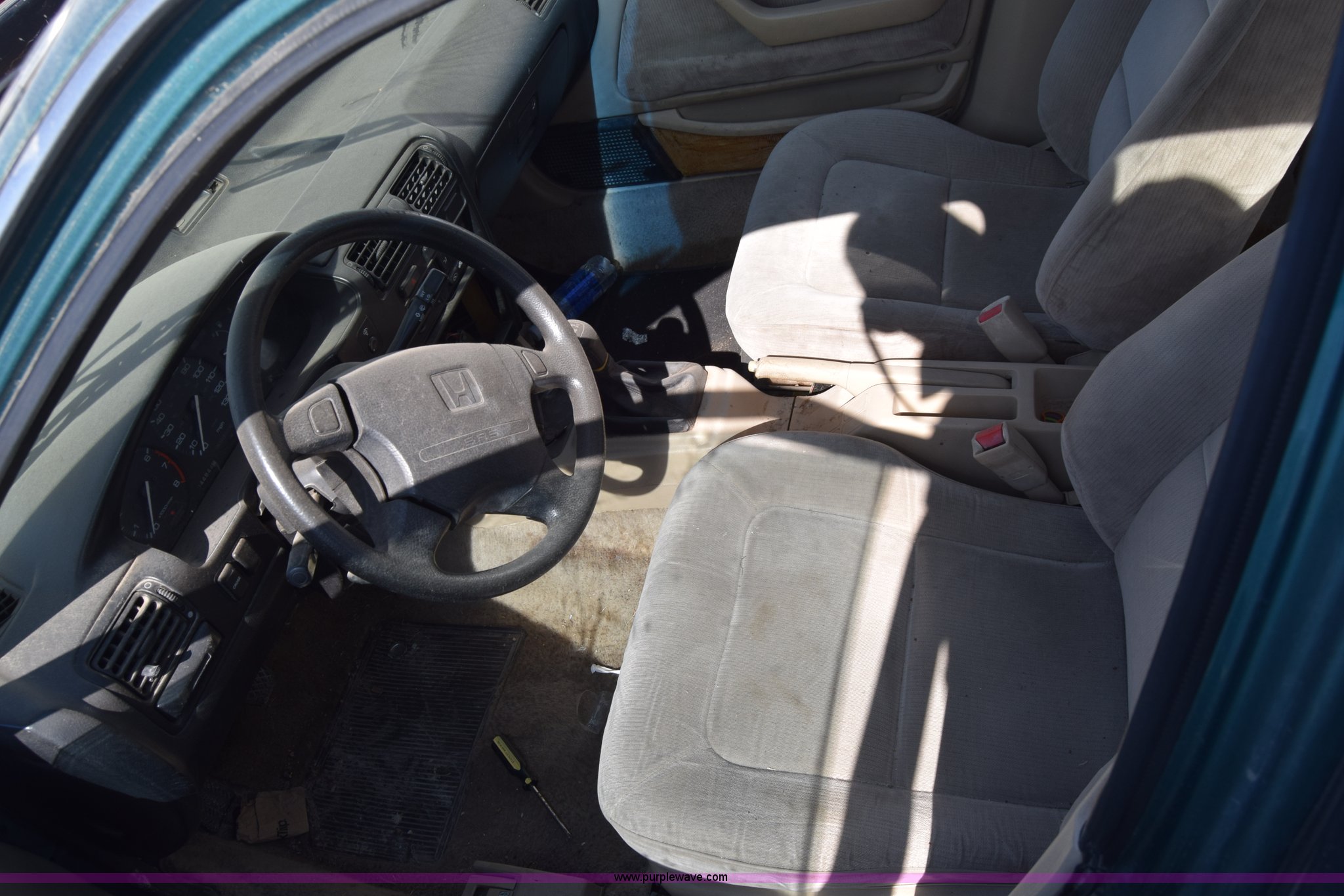 Purple Wave is selling a used Passenger Vehicle in Kansas. This item is a 1993 Honda Accord with the following: 344,844 miles on odometer, 2.2L L4 SOHC 16V gas engine, Automatic transmission, AC and heat, Tilt, Cruise, Power windows, locks, and mirrors, Cloth interior, P195/65R15 tires, Interior/exterior cosmetic damage, Dents and scratches, Front end damage, Stereo removed, Case# 15C79724
