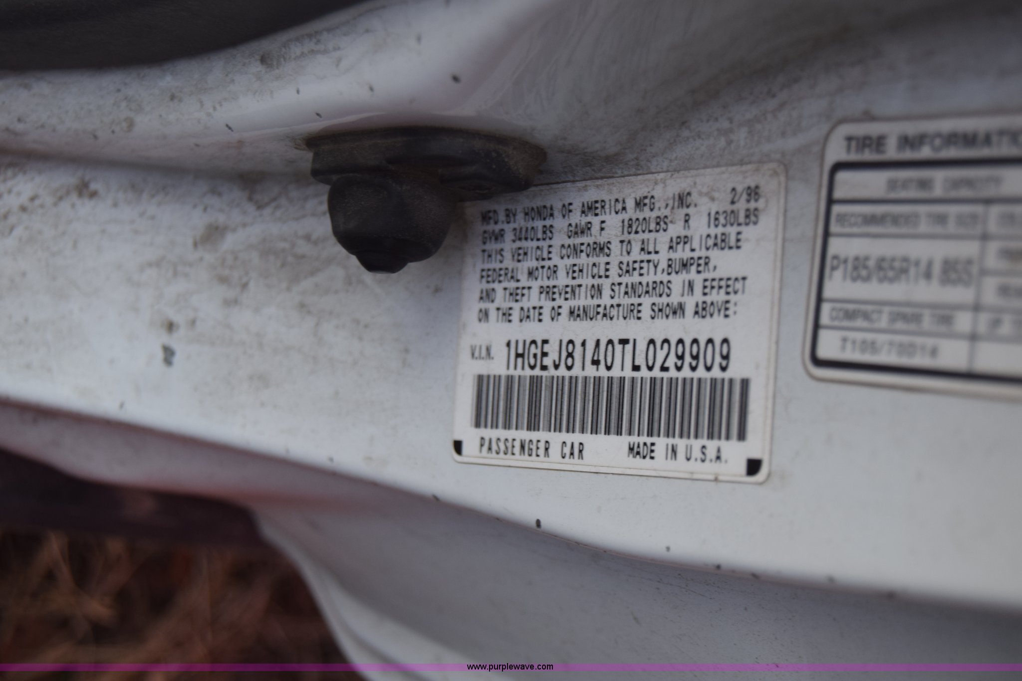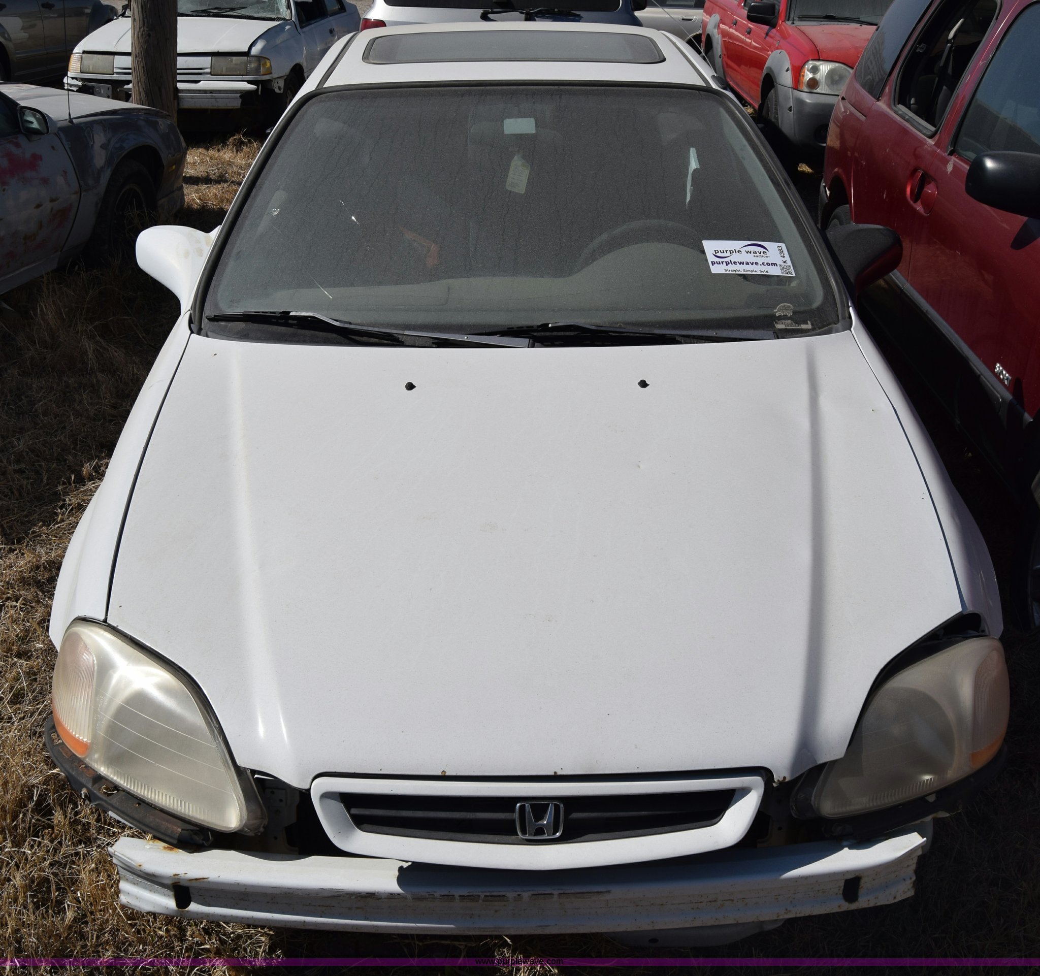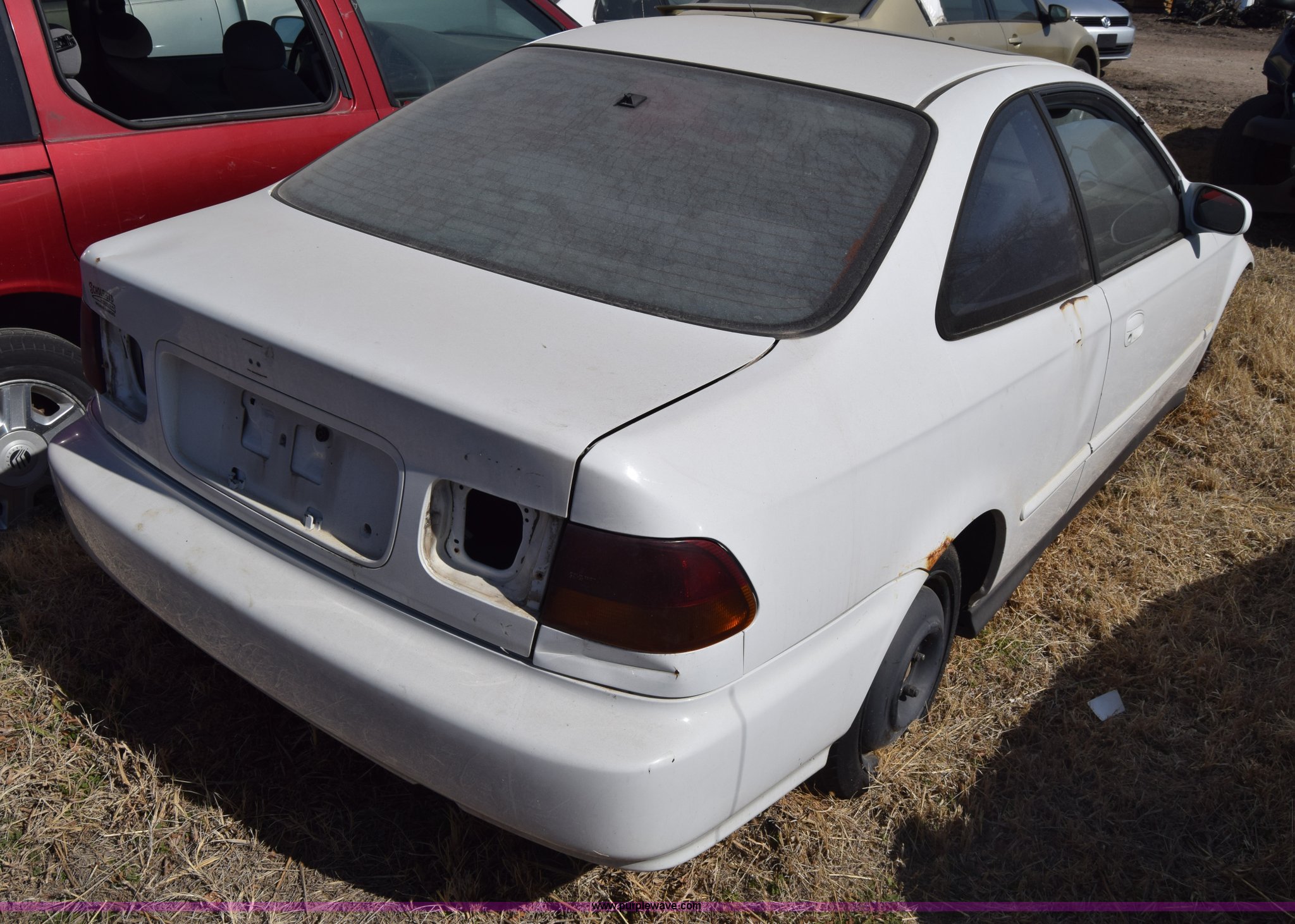 Purple Wave is selling a used Passenger Vehicle in Kansas. This item is a 1996 Honda Civic with the following: 127,099 miles on odometer, 1.6L L4 SOHC 16V gas engine, Manual transmission, AC and heat, Power windows, locks, and mirrors, Sunroof, 105/70D15 tires, Interior/exterior cosmetic damage, Dents and scratches, Wheel removed, Seats removed, Stereo removed, Case# 15C517683