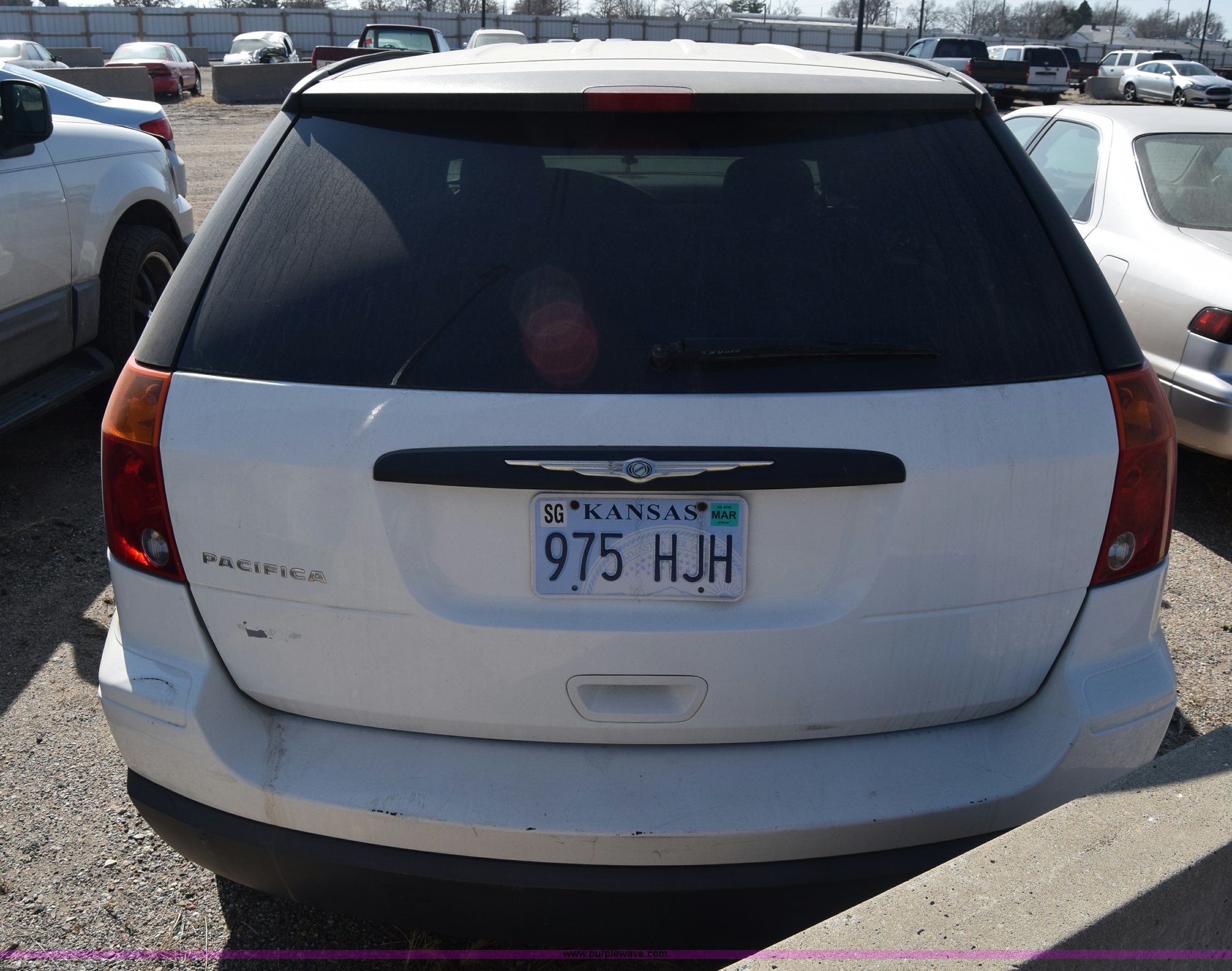 2006 Chrysler Pacifica. Unknown miles on odometer, 3.5L V6 SOHC 24V gas engine, Automatic transmission, AC and heat, Tilt, Cruise, Power windows, locks, and mirrors, Cloth interior, 235/65R17 tires, Interior/exterior cosmetic damage, Dents and scratches, Fender damaged, Stereo removed, Case# 15C522284. Vehicle is abandoned. Condition and history are unknown. No additional information is available. Vehicle does not have keys unless notated otherwise in the item listing.. View City Of Wichita Terms for title acquisition and item removal requirements.. 2A4GM48426R709605. Happy Hooker Towing. 3760 South Broadway. Wichita, KS 67216