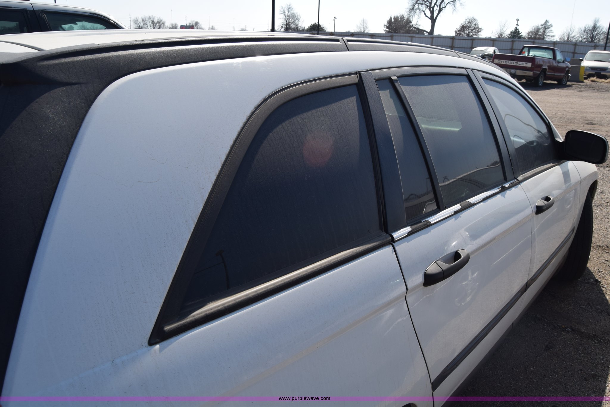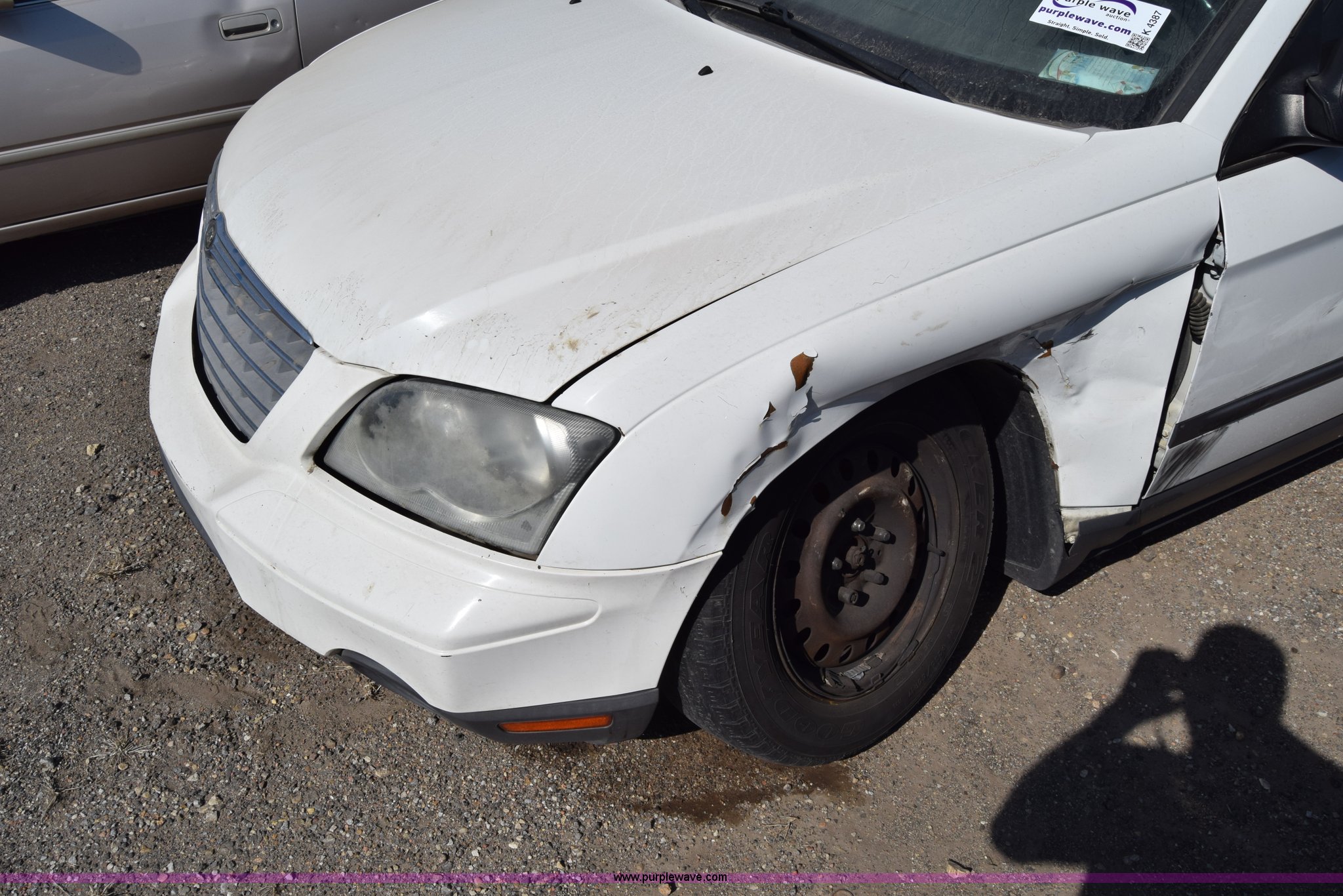 Purple Wave is selling a used Passenger Vehicle in Kansas. This item is a 2006 Chrysler Pacifica with the following: Unknown miles on odometer, 3.5L V6 SOHC 24V gas engine, Automatic transmission, AC and heat, Tilt, Cruise, Power windows, locks, and mirrors, Cloth interior, 235/65R17 tires, Interior/exterior cosmetic damage, Dents and scratches, Fender damaged, Stereo removed, Case# 15C522284