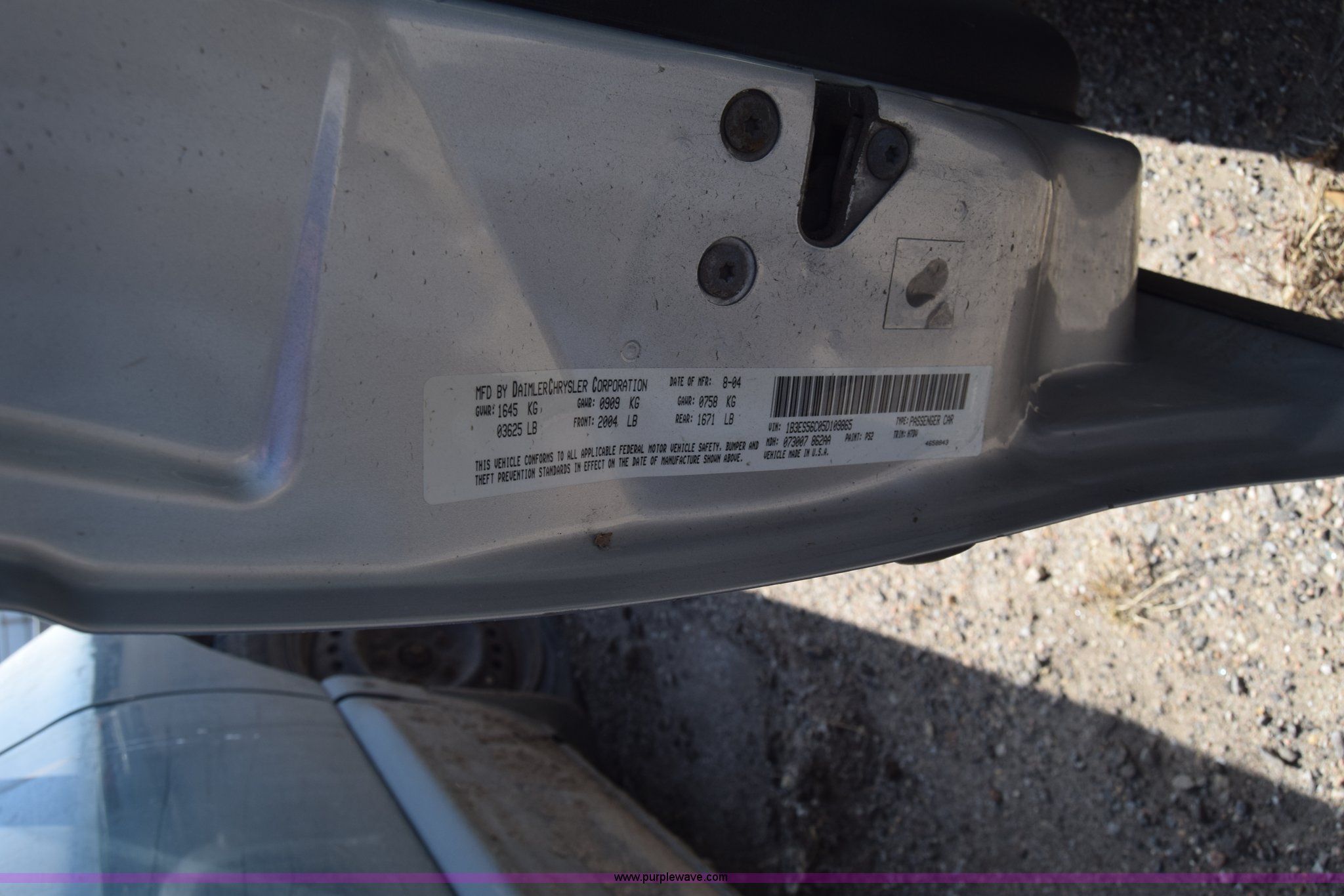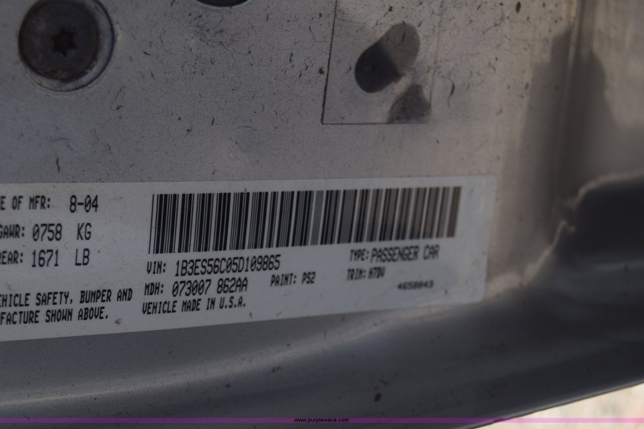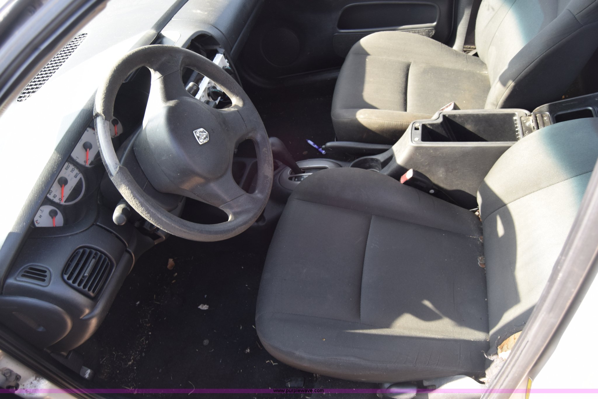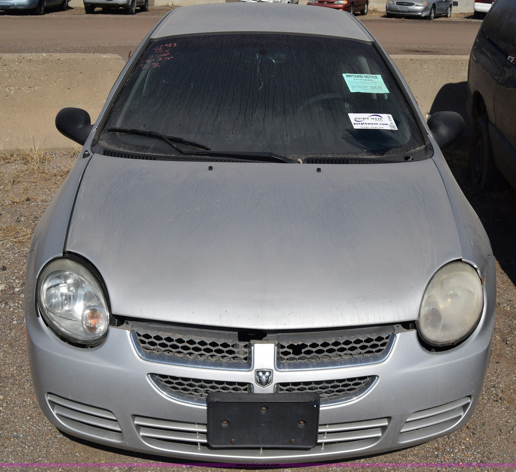 Purple Wave is selling a used Passenger Vehicle in Kansas. This item is a 2005 Dodge Neon with the following: Unknown miles on odometer, 2.0L L4 SOHC 16V gas engine, Automatic transmission, AC and heat, Power windows, locks, and mirrors, Cloth interior, 195/65R15 tires, Interior/exterior cosmetic damage, Dents and scratches, Stereo removed, Case# 15C071529