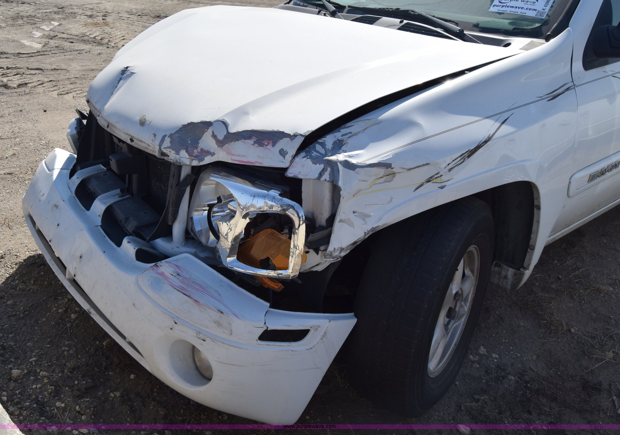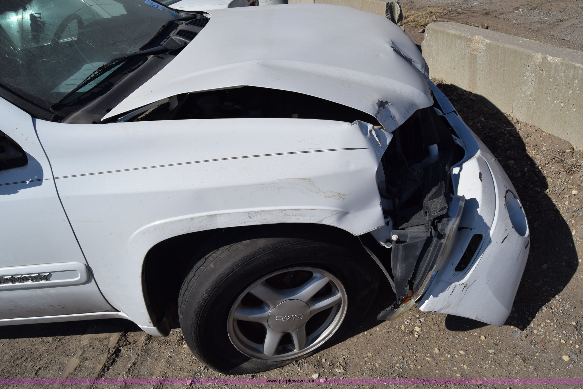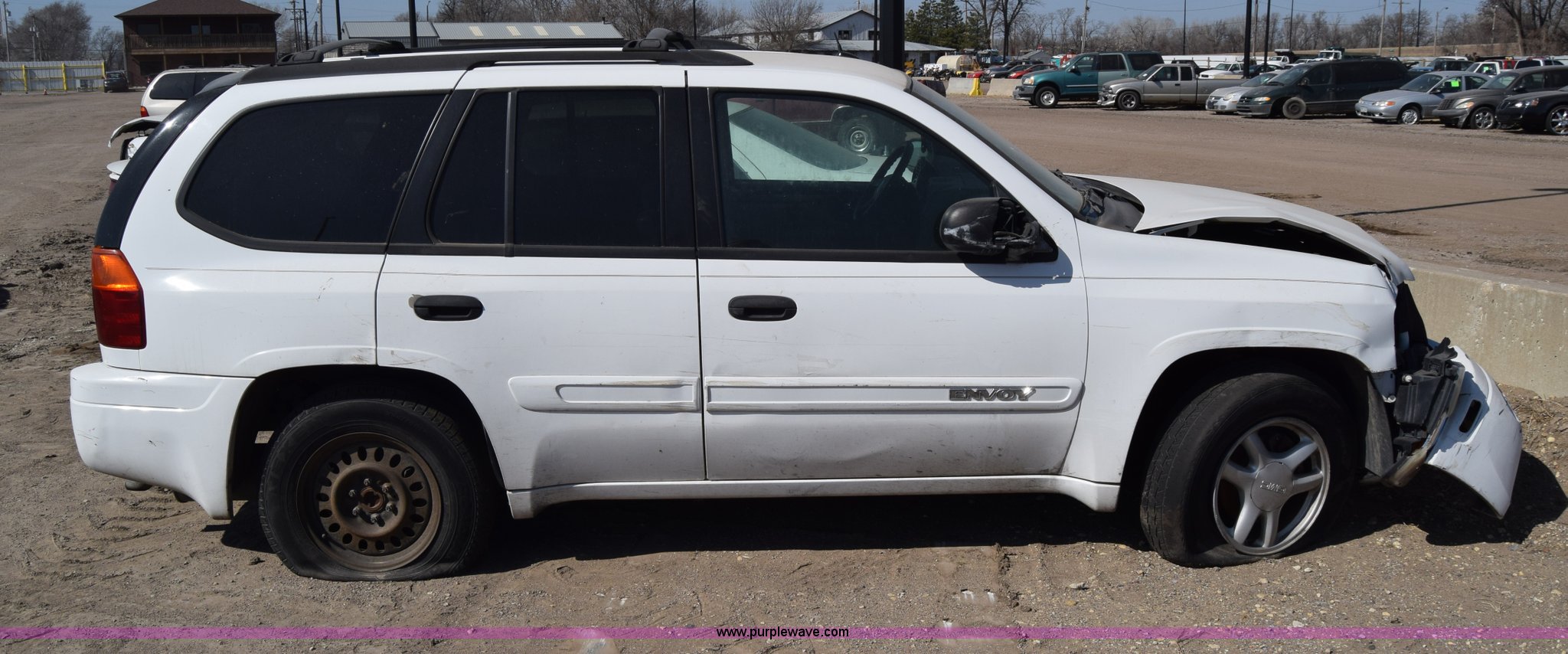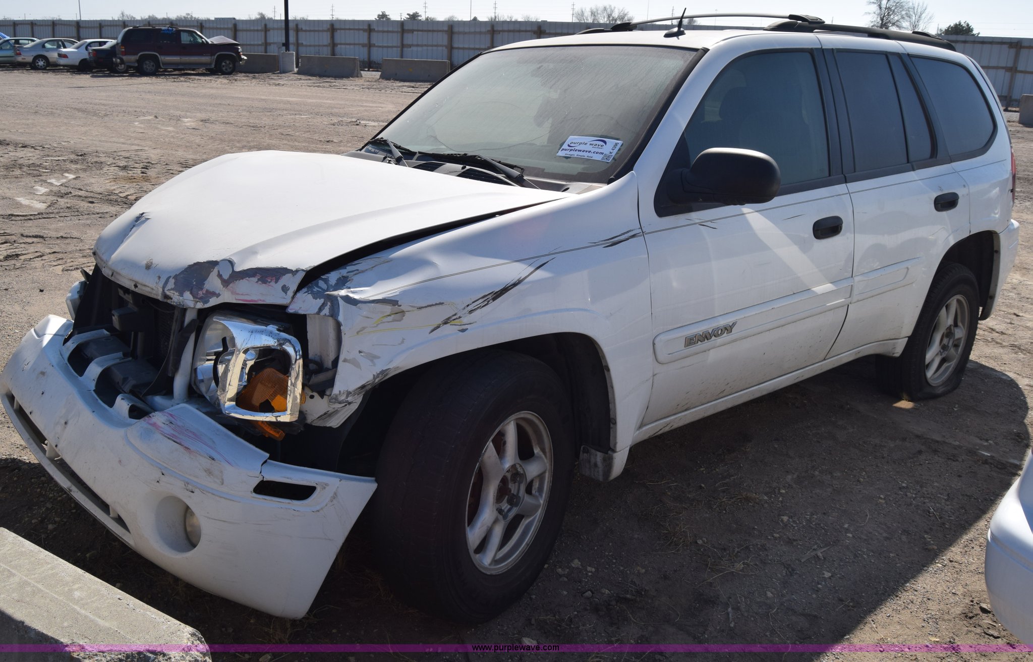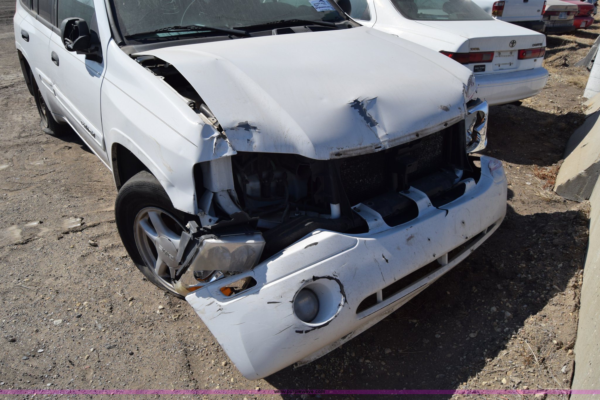 Purple Wave is selling a used Passenger Vehicle in Kansas. This item is a 2005 GMC Envoy SUV with the following: Unknown miles on odometer, 4.2L L6 DOHC 24V gas engine, Automatic transmission, AC and heat, Tilt, Cruise, AM/FM/CD, Power windows, locks, and mirrors, Cloth interior, Receiver hitch, 235/70R17 tires, Interior/exterior cosmetic damage, Dents and scratches, Major front end damage, Hood will not open, Windshield cracked, Doors locked, (2) flat tires, Case# 15C077414