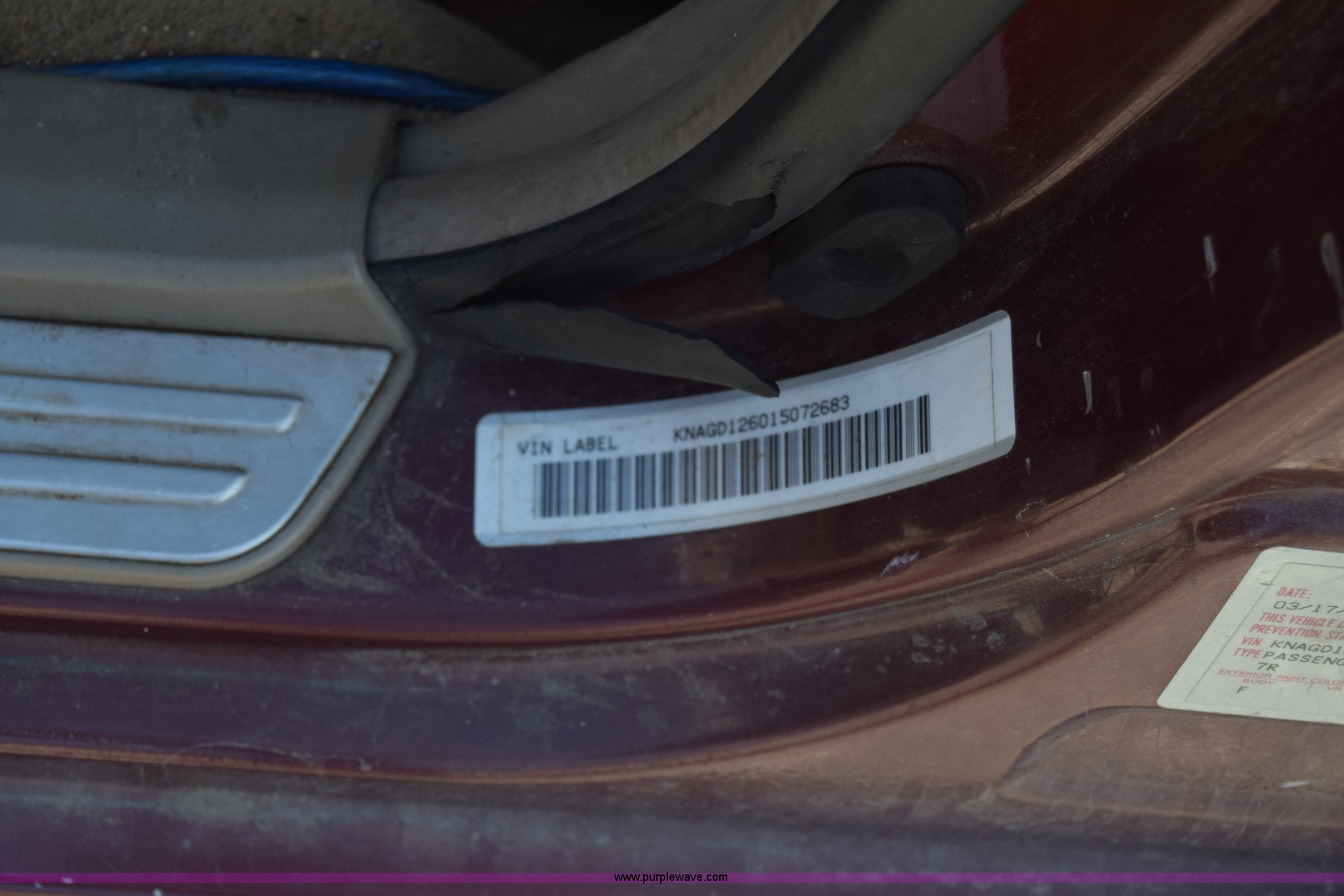 Purple Wave is selling a used Passenger Vehicle in Kansas. This item is a 2001 Kia Optima with the following: 235,221 miles on odometer, 2.4L L4 DOHC 16V gas engine, Automatic transmission, AC and heat, AM/FM/CD, Power windows, locks, and mirrors, Cloth interior, Keys, 195/70R14 tires, Interior/exterior cosmetic damage, Dents and scratches, Windshield cracked, Flat tire, Case# 15CO59863