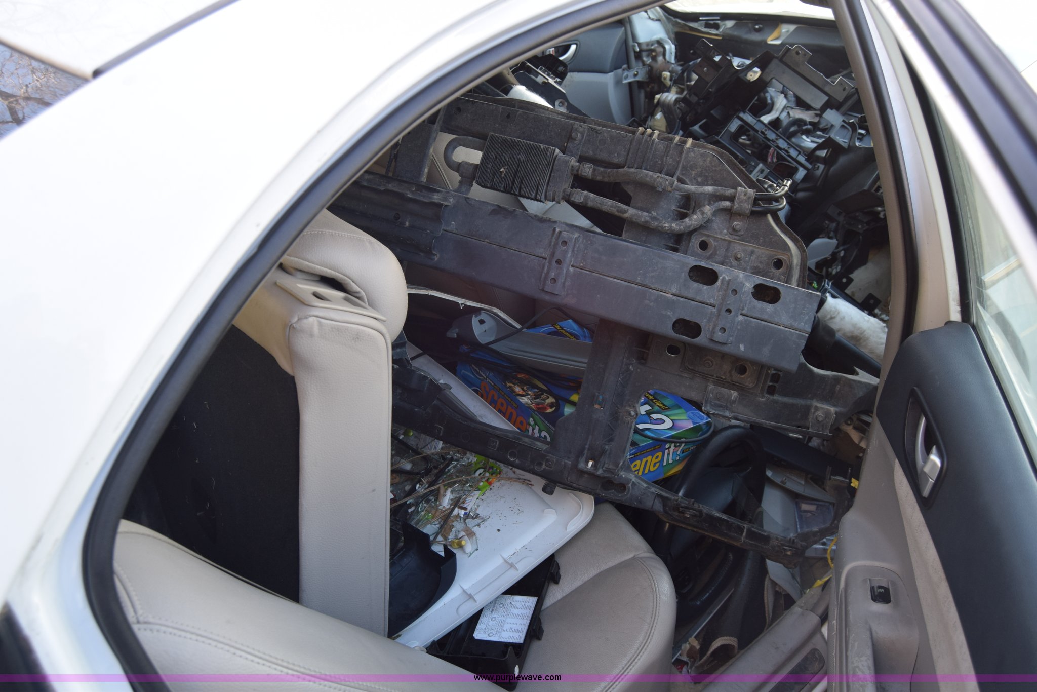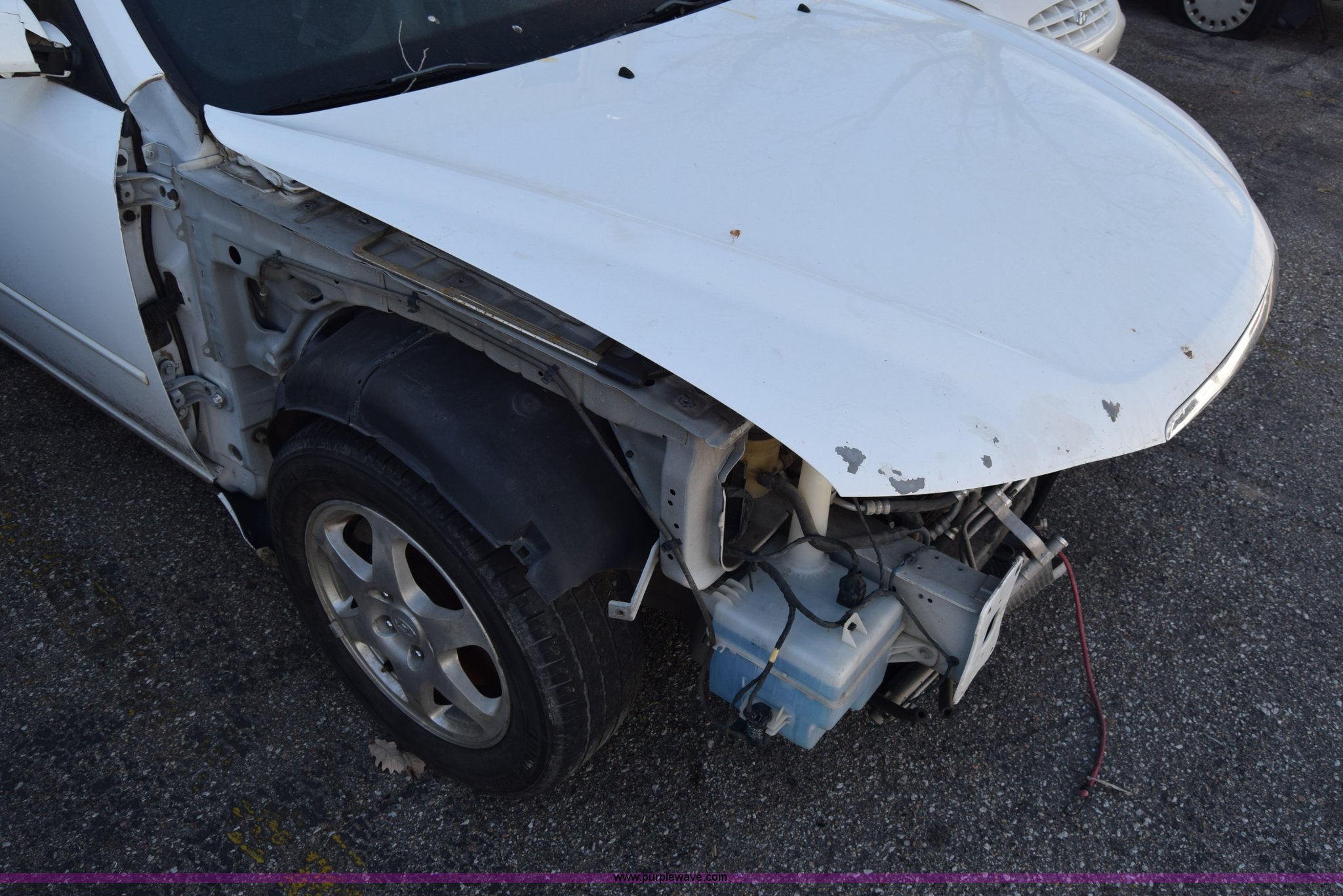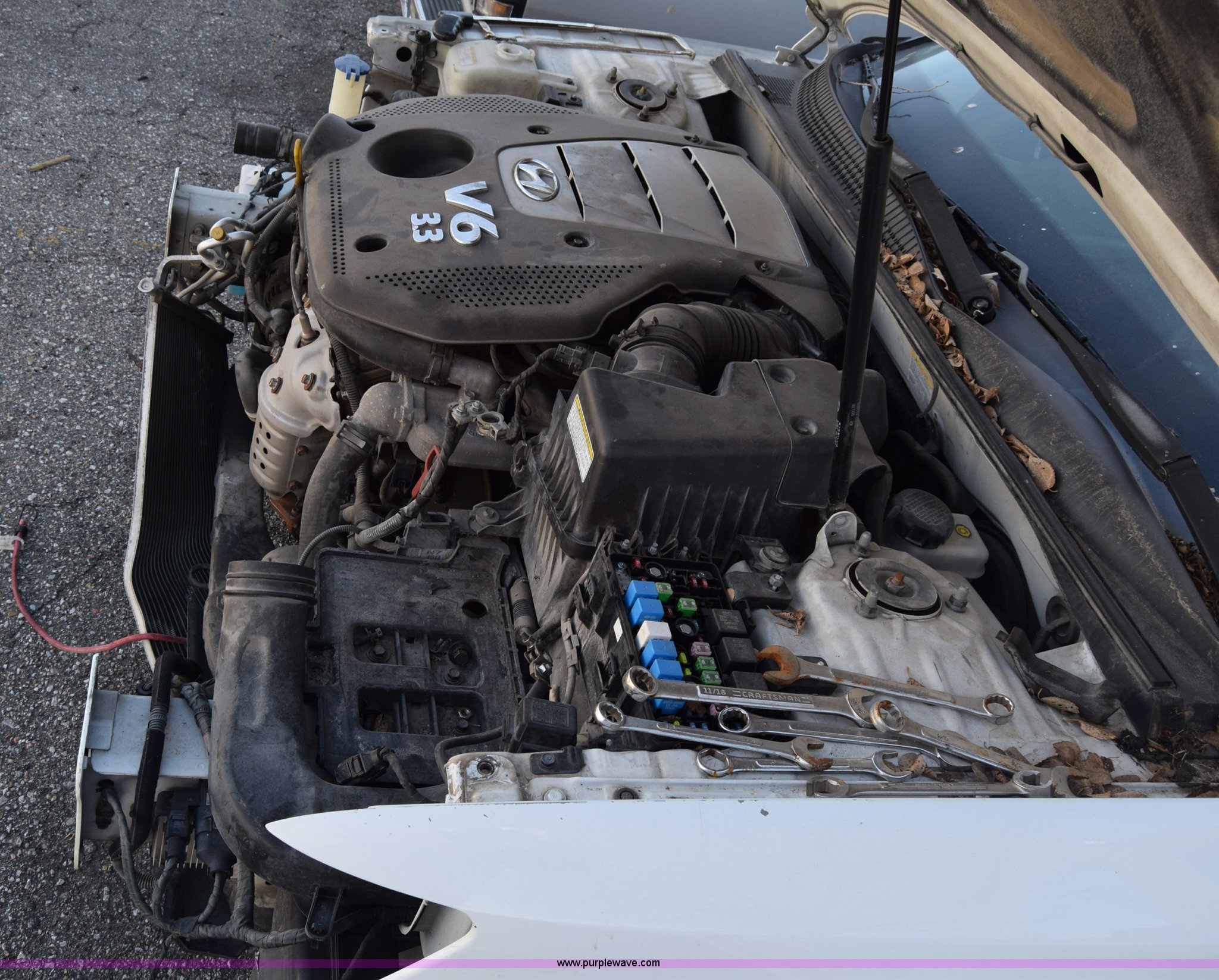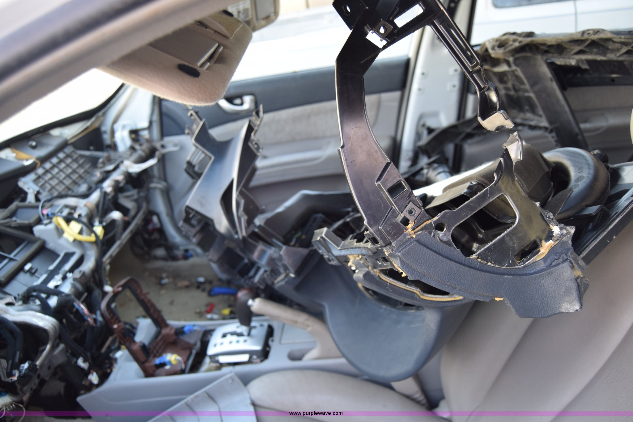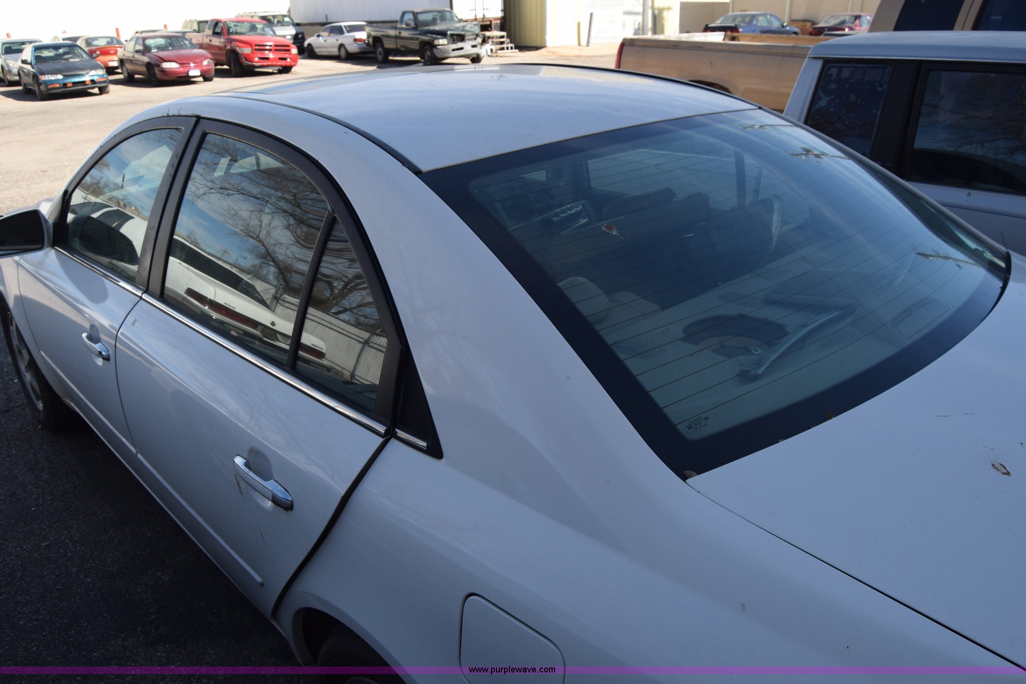 Purple Wave is selling a used Passenger Vehicle in Kansas. This item is a 2006 Hyundai Sonata with the following: Unknown miles on odometer, 3.3L V6 DOHC 24V gas engine, Automatic transmission, AC and heat, Power windows, locks, and mirrors, Vinyl interior, Sunroof, 215/60R16 tires, Interior/exterior cosmetic damage, Dents and scratches, Front bumper removed, Front fender removed, Interior stripped, Windshield cracked, Case# 15C510864