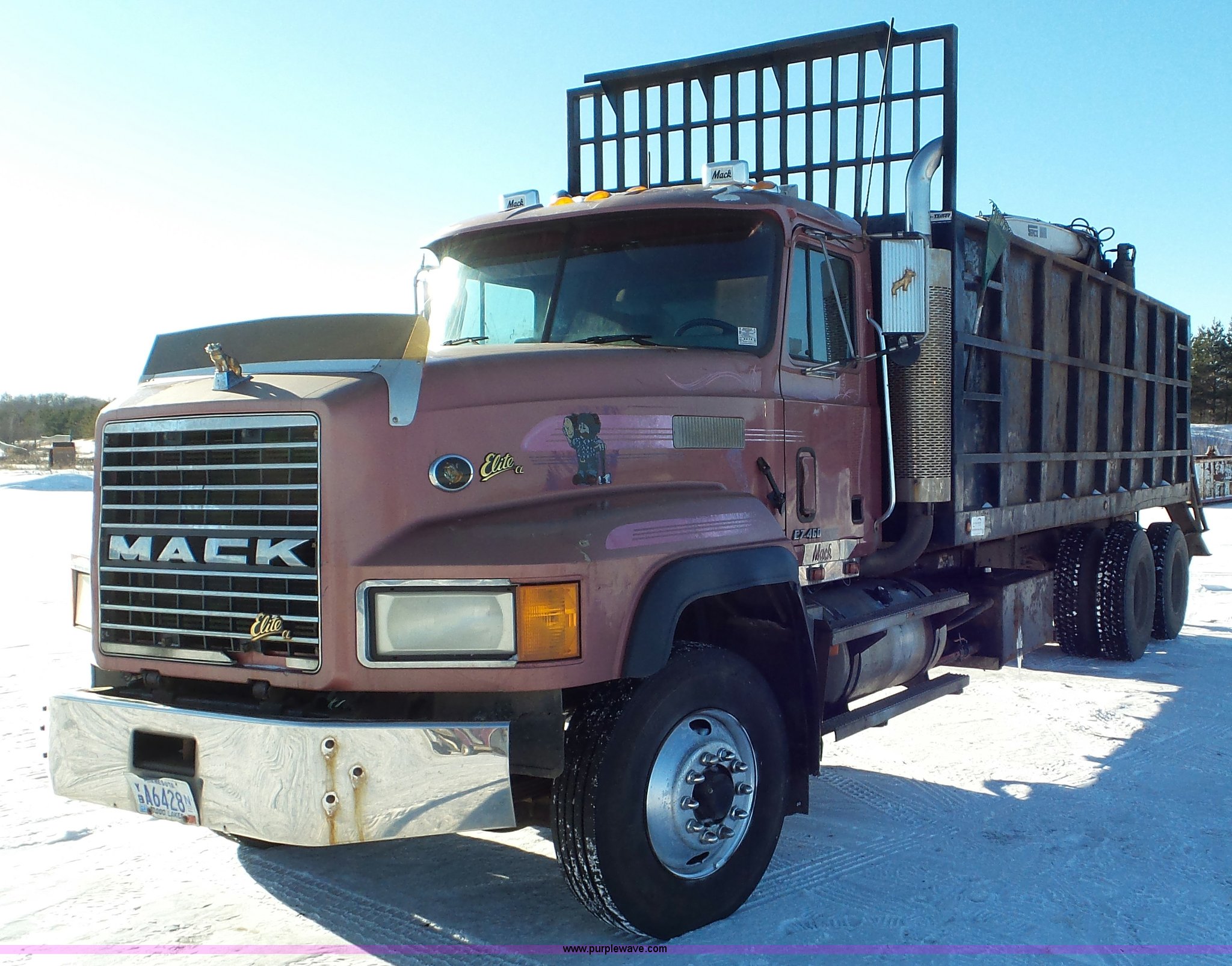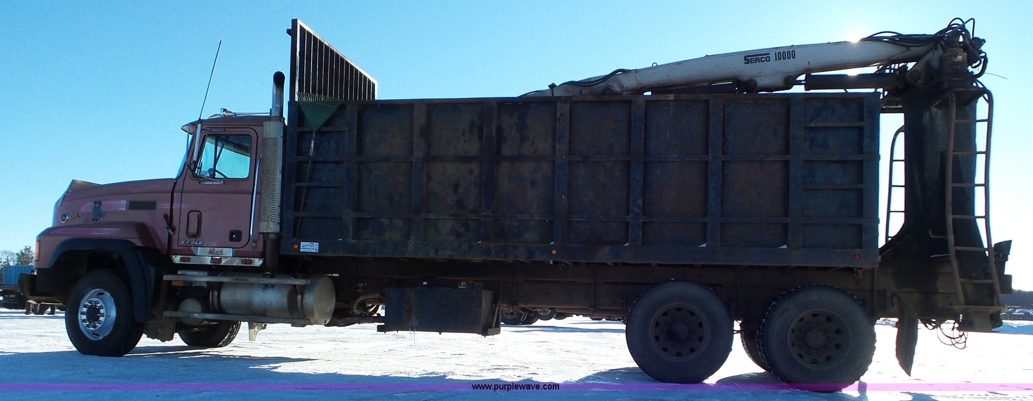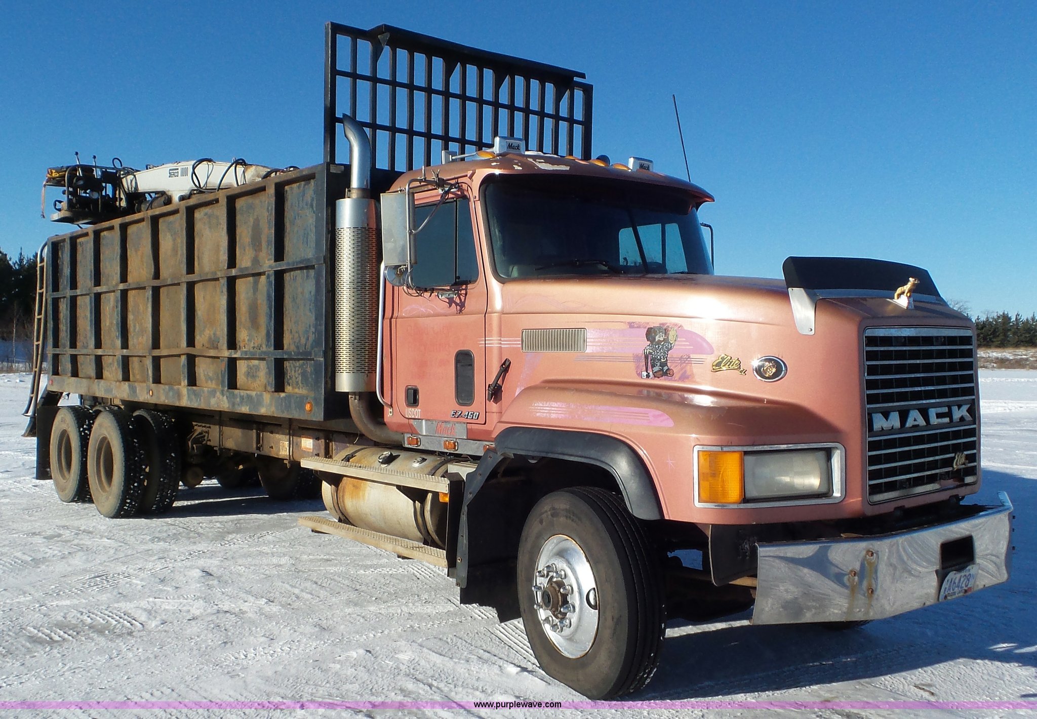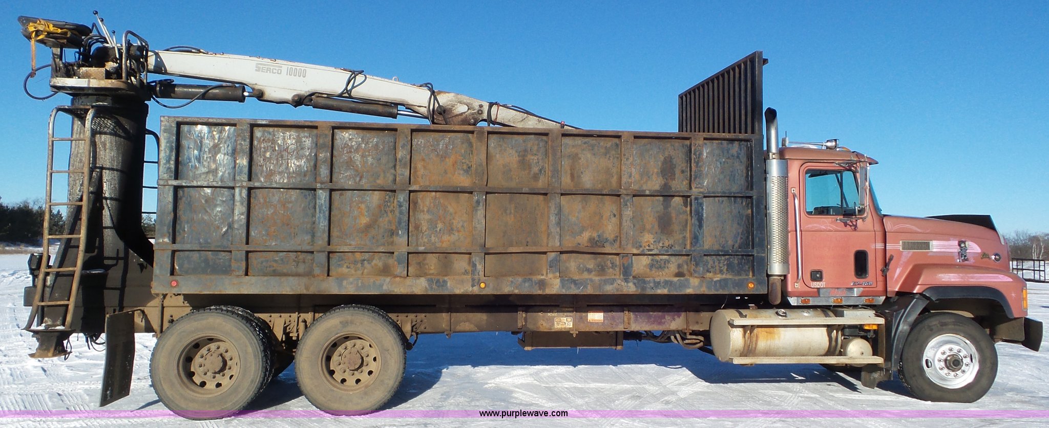 Purple Wave is selling a used Truck Tractor in Minnesota. This item is a 1999 Mack CL713 grapple truck with the following: 383,233 miles on odometer, 23,060 hours on meter, Mack E7 12.0L L6 turbo diesel engine, Maxi torque nine speed manual transmission, Tandem axle, Inter-axle differential lock, AC and heat, Cruise, AM/FM/cassette, Heated mirrors, Spring suspension seat, Air ride cab, Block heater, Front tow hooks, Exterior visor, PTO, Dump valves, Serco 100G0 grapple bed, 20'L box, (2) valve control, Grapple, Dual rear exhaust stacks, Dual fuel tanks, Mud flaps, 282" wheelbase, Air suspension, Air brakes, Engine brake, 11R22.5 tires