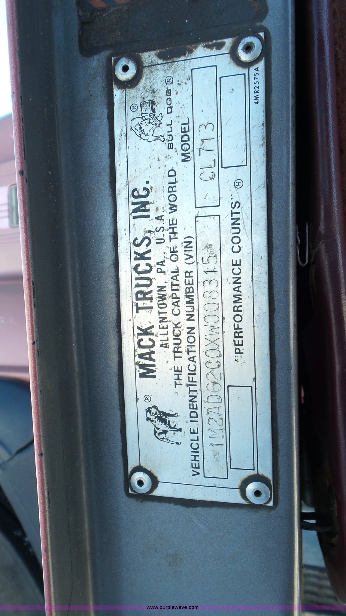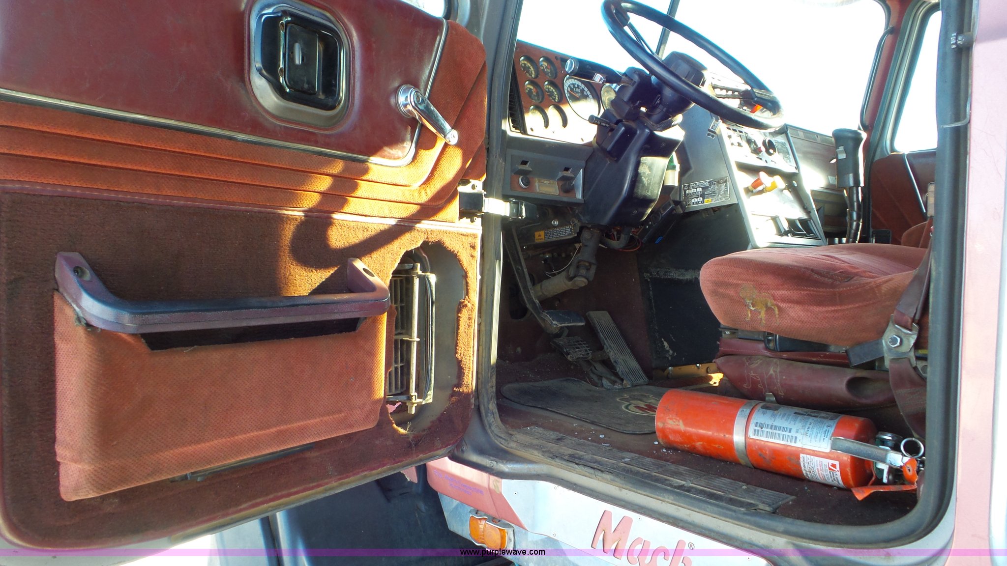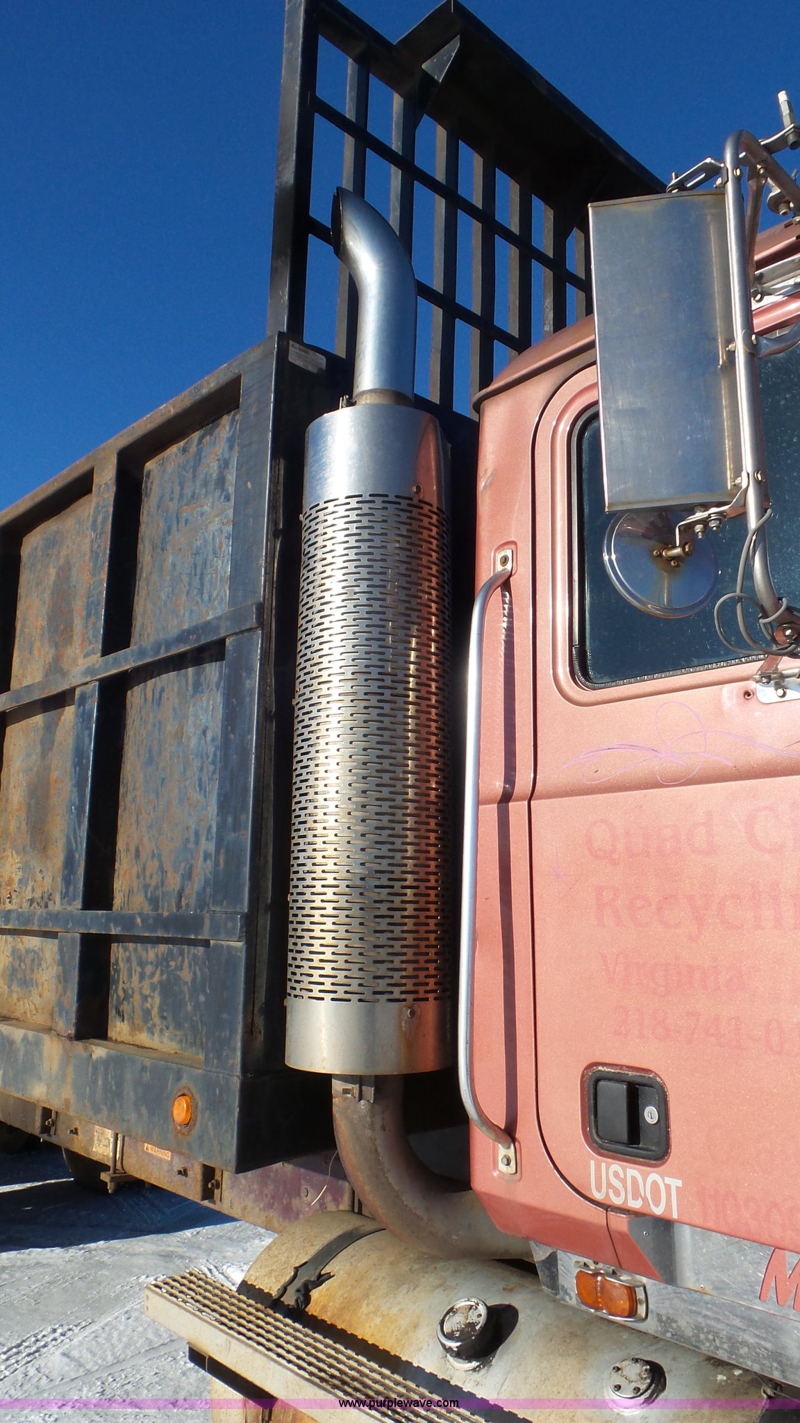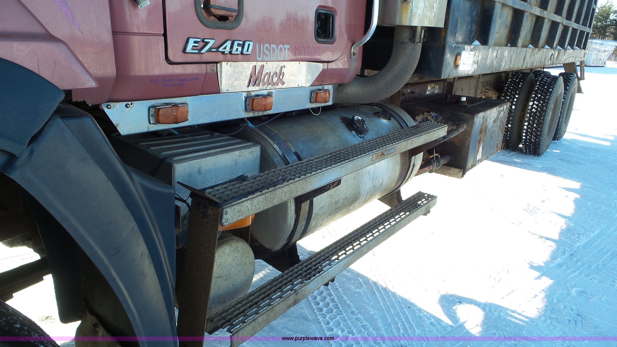 Purple Wave is selling a used Truck Tractor in Minnesota. This item is a 1999 Mack CL713 grapple truck with the following: 383,233 miles on odometer, 23,060 hours on meter, Mack E7 12.0L L6 turbo diesel engine, Maxi torque nine speed manual transmission, Tandem axle, Inter-axle differential lock, AC and heat, Cruise, AM/FM/cassette, Heated mirrors, Spring suspension seat, Air ride cab, Block heater, Front tow hooks, Exterior visor, PTO, Dump valves, Serco 100G0 grapple bed, 20'L box, (2) valve control, Grapple, Dual rear exhaust stacks, Dual fuel tanks, Mud flaps, 282" wheelbase, Air suspension, Air brakes, Engine brake, 11R22.5 tires