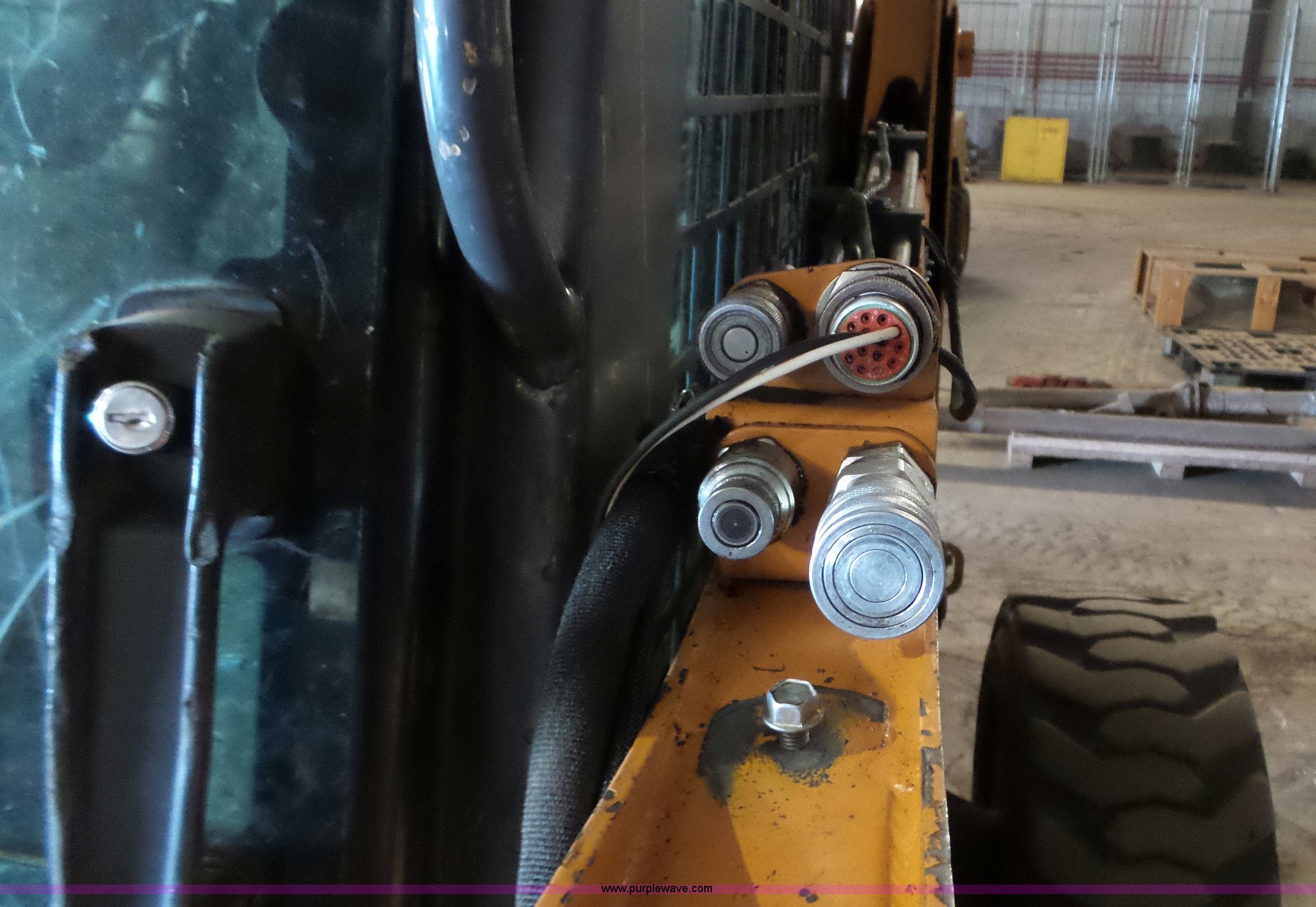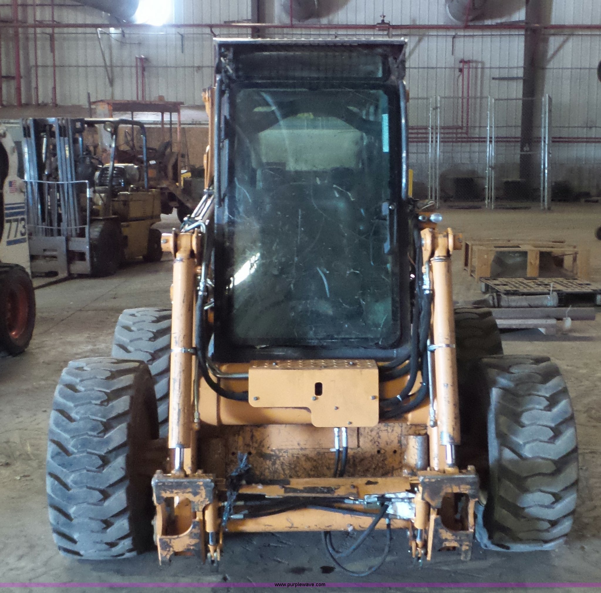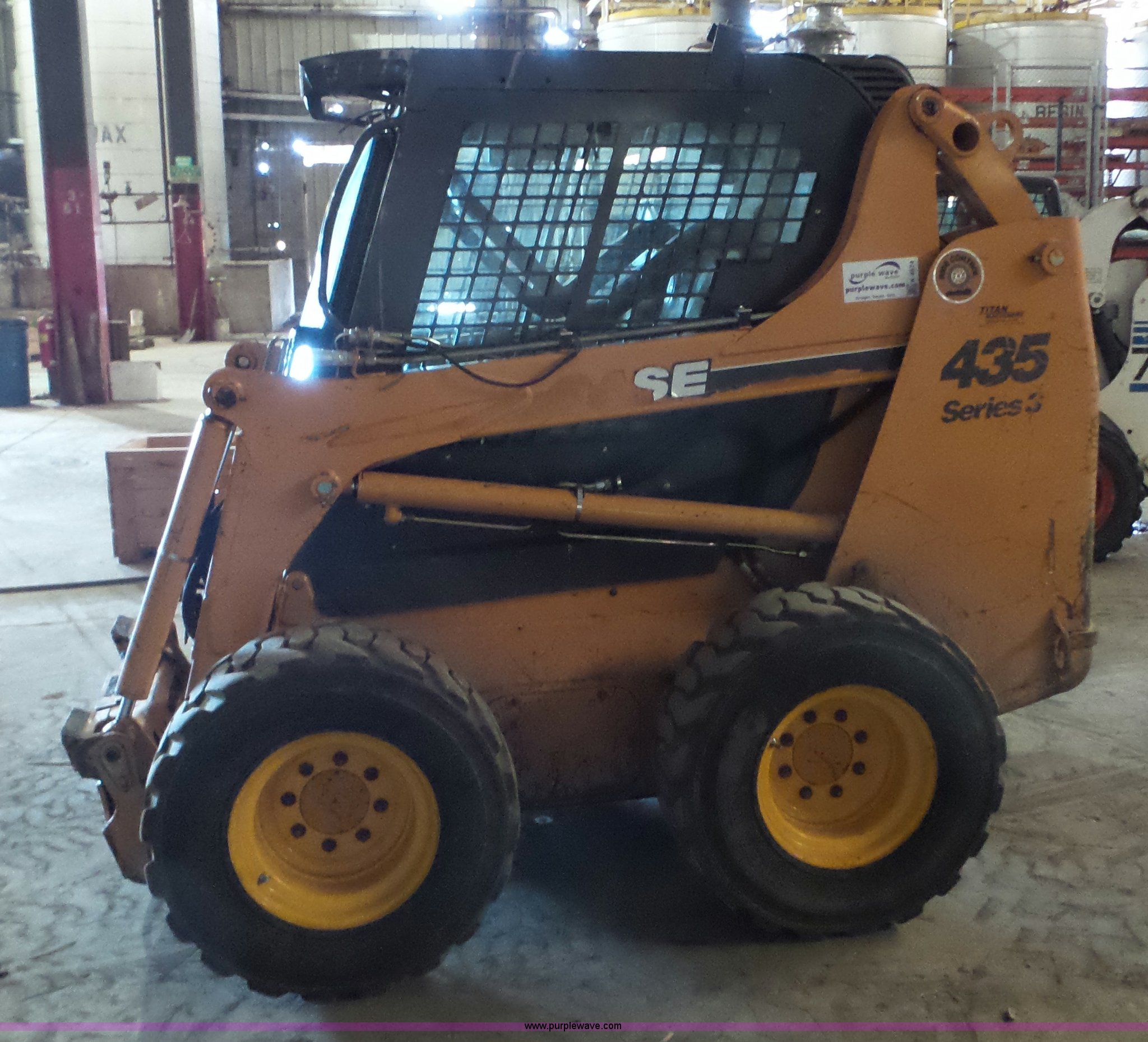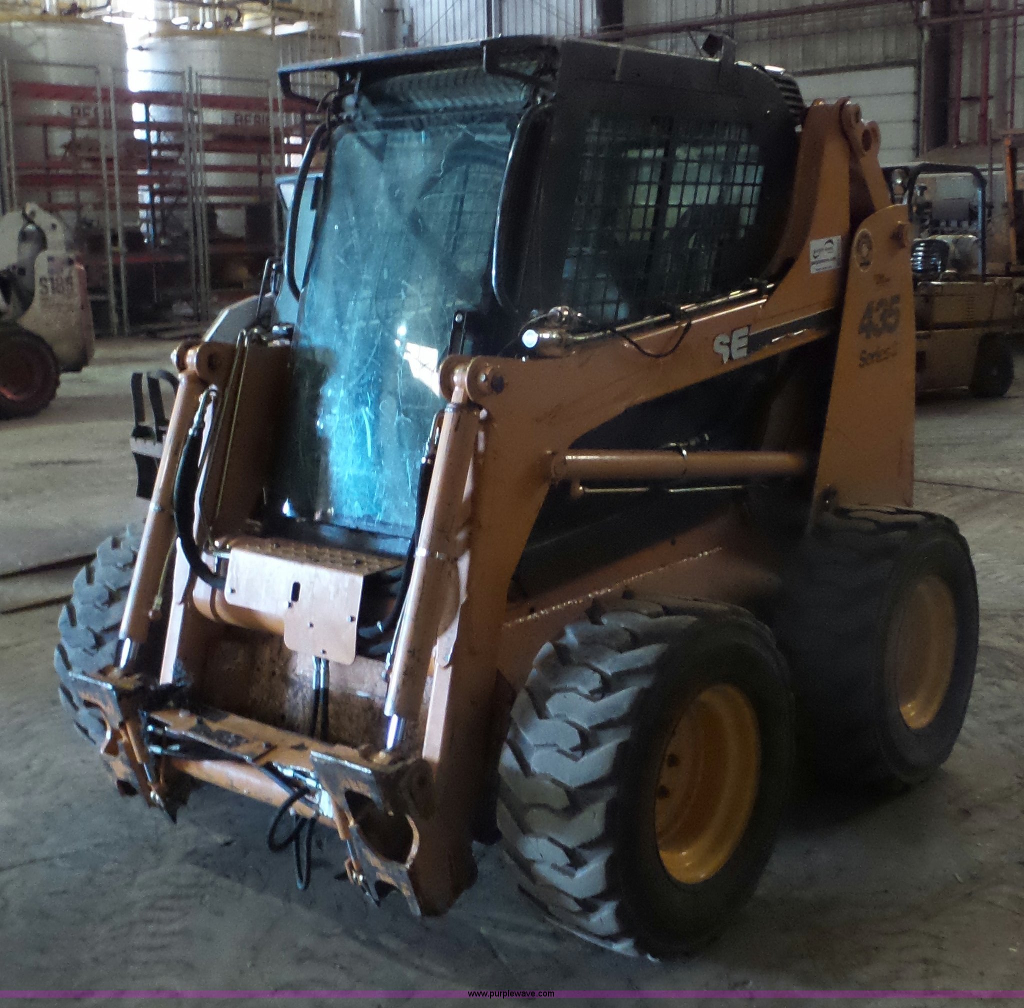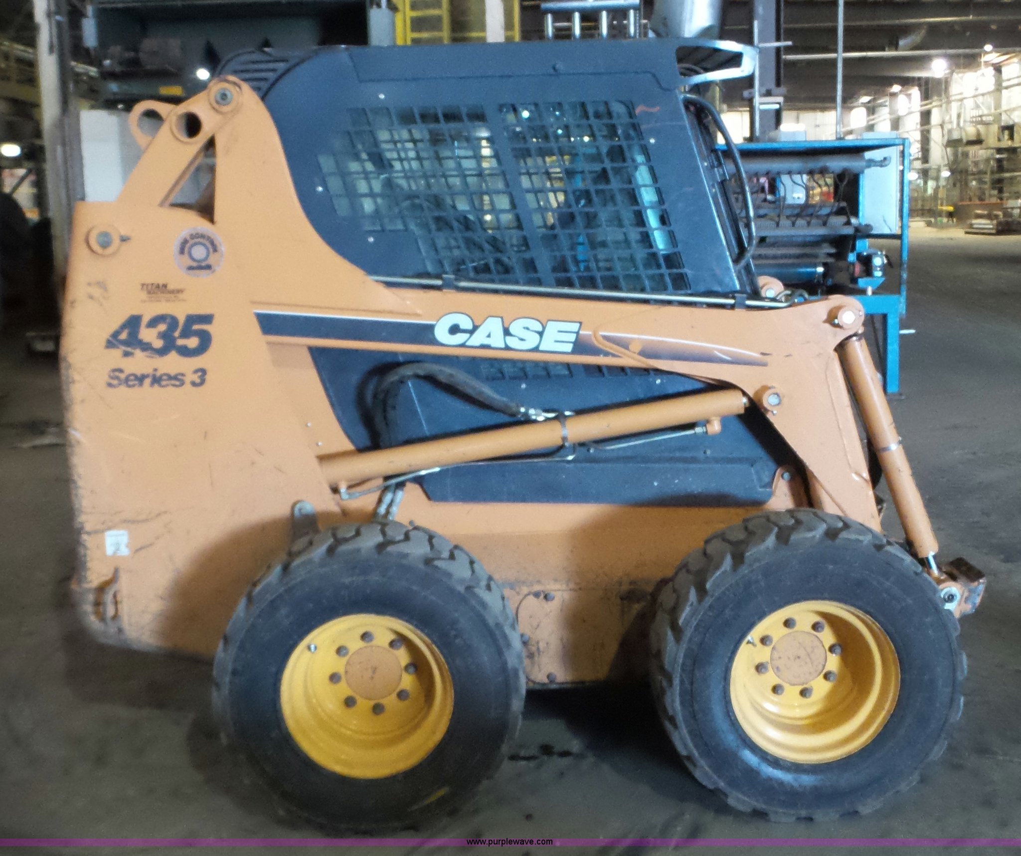 Purple Wave is selling a used Skid Steer Loader in Minnesota. This item is a 2008 Case 435 Series 3 skid steer with the following: 2,450 hours on meter, Case 3.2L four cylinder turbo diesel engine, 81.8 HP, Two speed hydrostatic transmission, Enclosed cab, AC and heat, AM/FM, Joystick controls, Spring suspension seat, Ride control, Hydraulic quick coupler, High flow auxiliary hydraulics, 12-16.5 tires, Glass cracked, Serial N8M482473