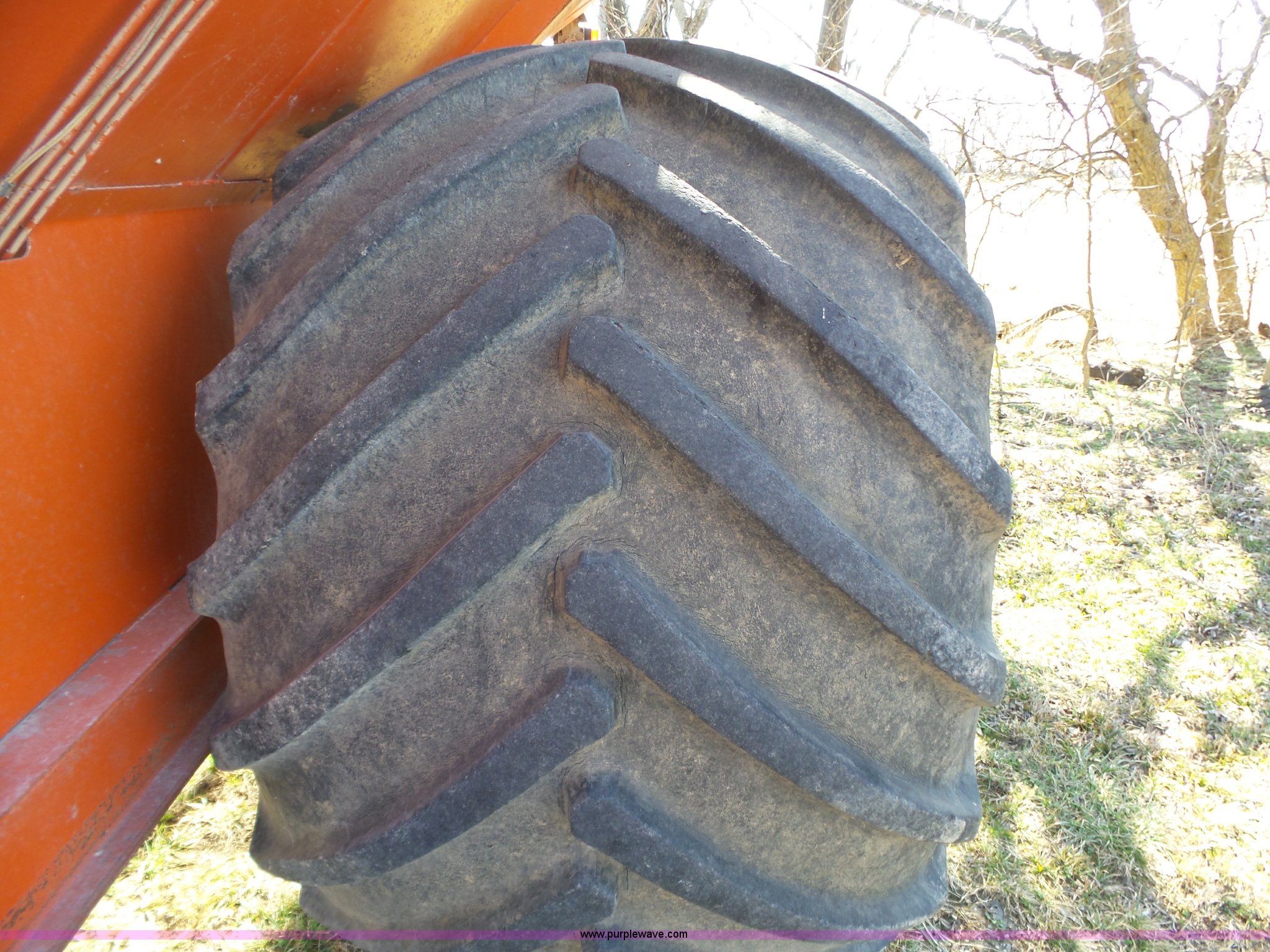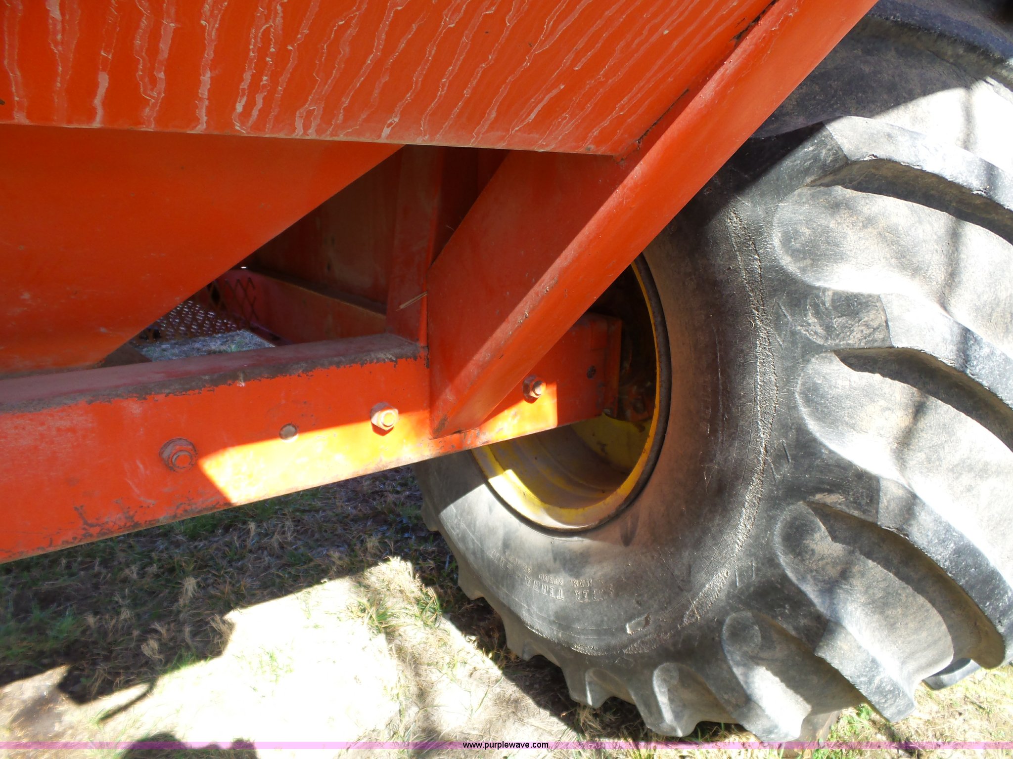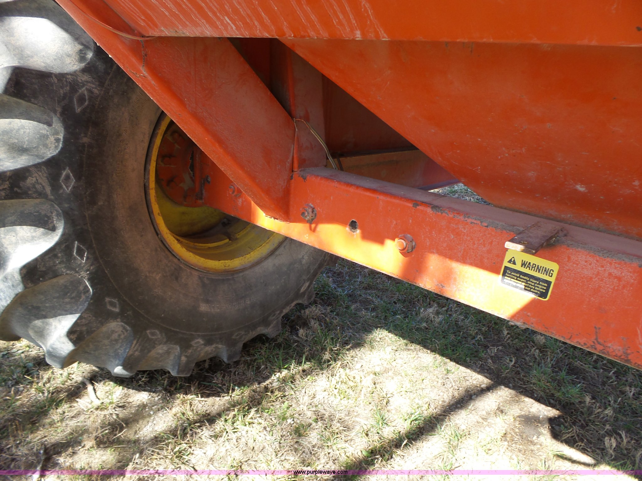 Purple Wave is selling a used Grain Cart or Gravity Wagon in Kansas. This item is a UFT 500 grain cart with the following: 500 bushel capacity, Manual rollover tarp, Transport lights, Pin hitch, 66x43.00-25 tires, Serial 21239