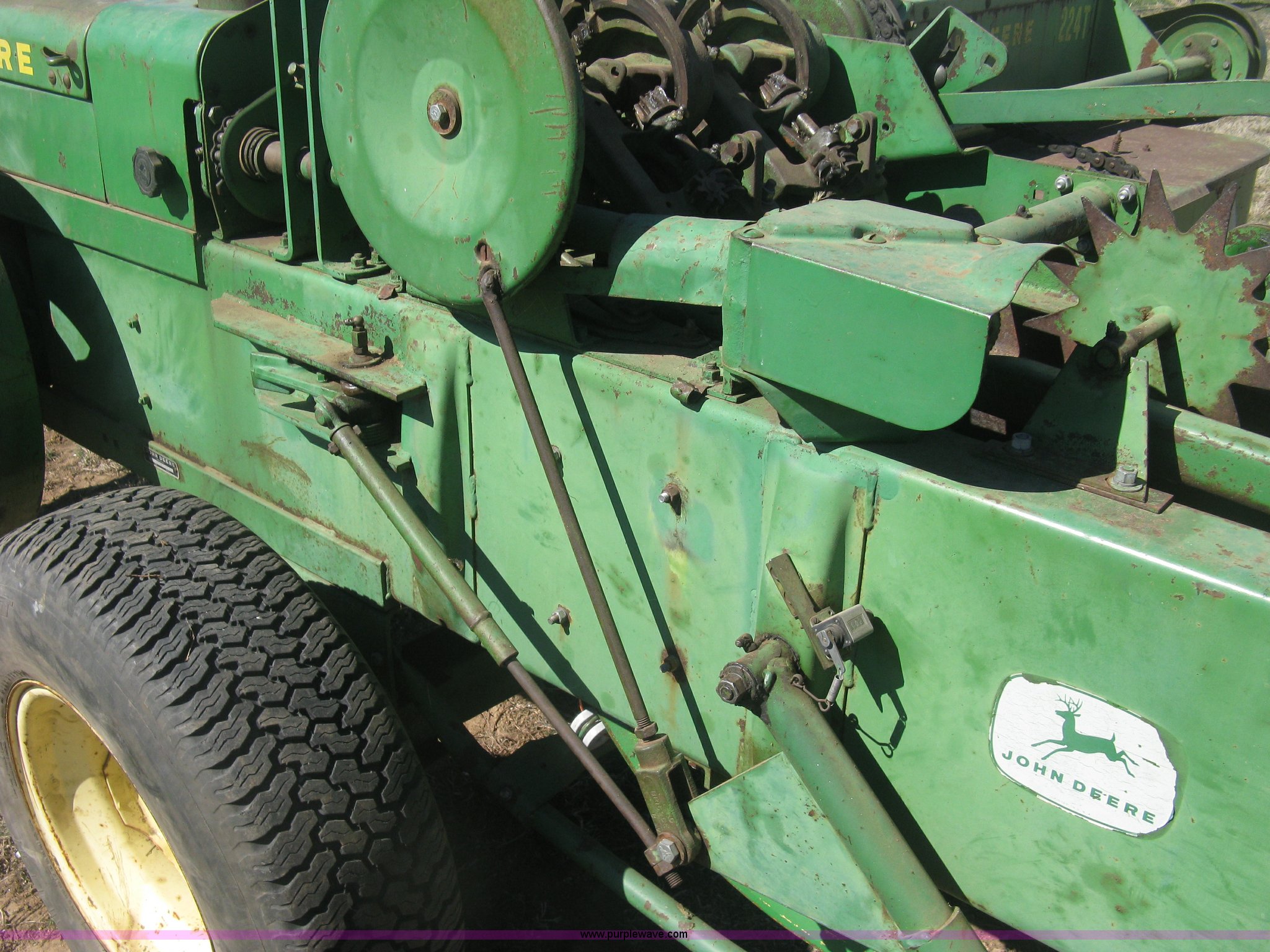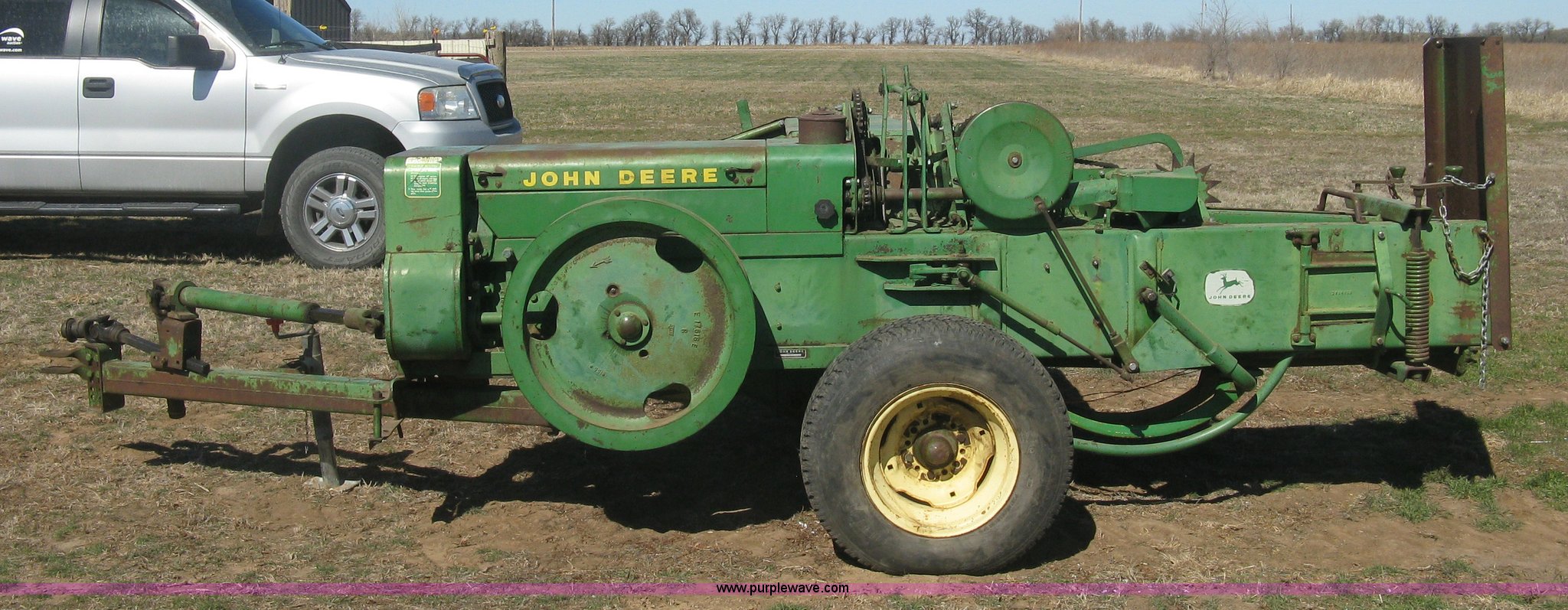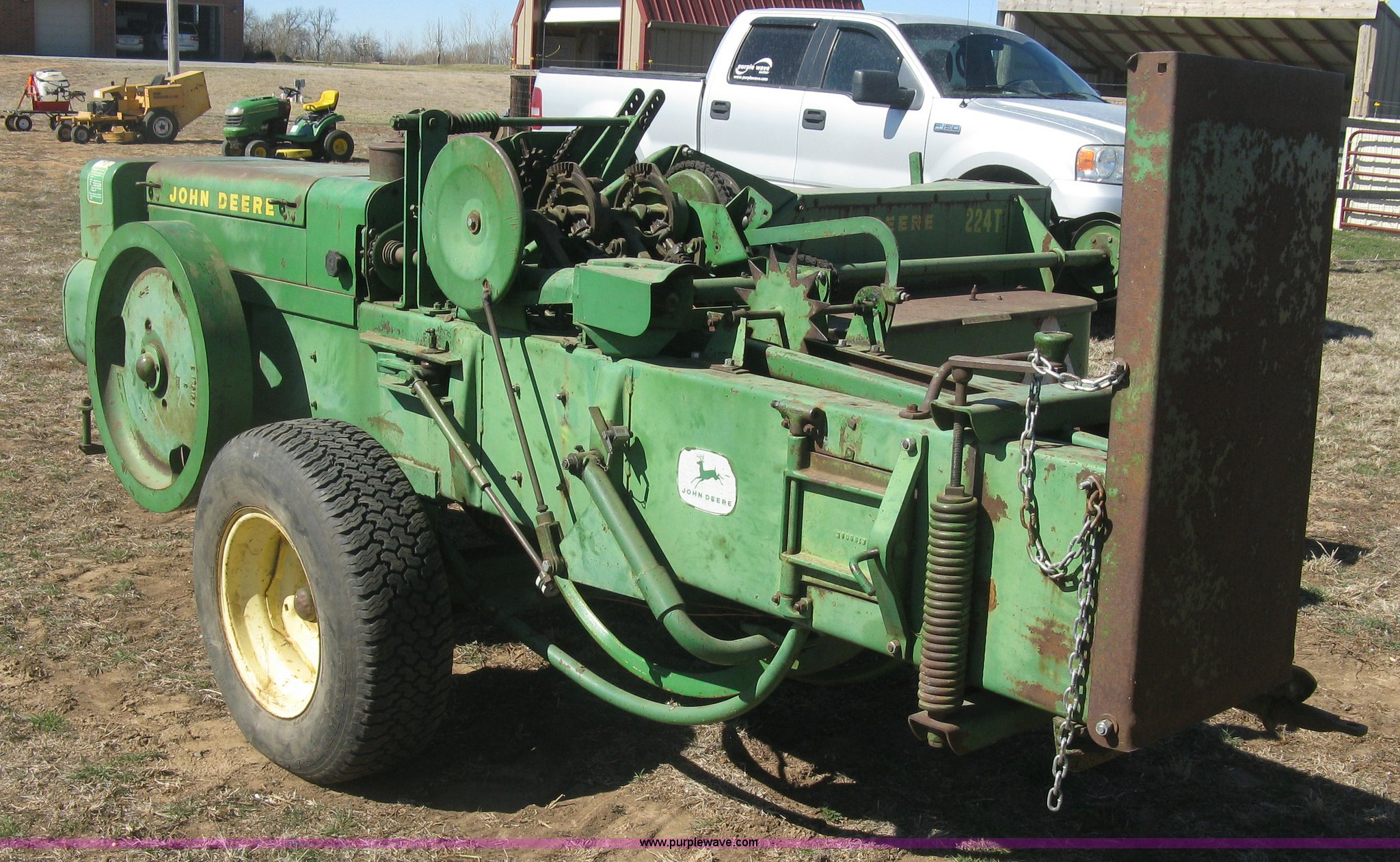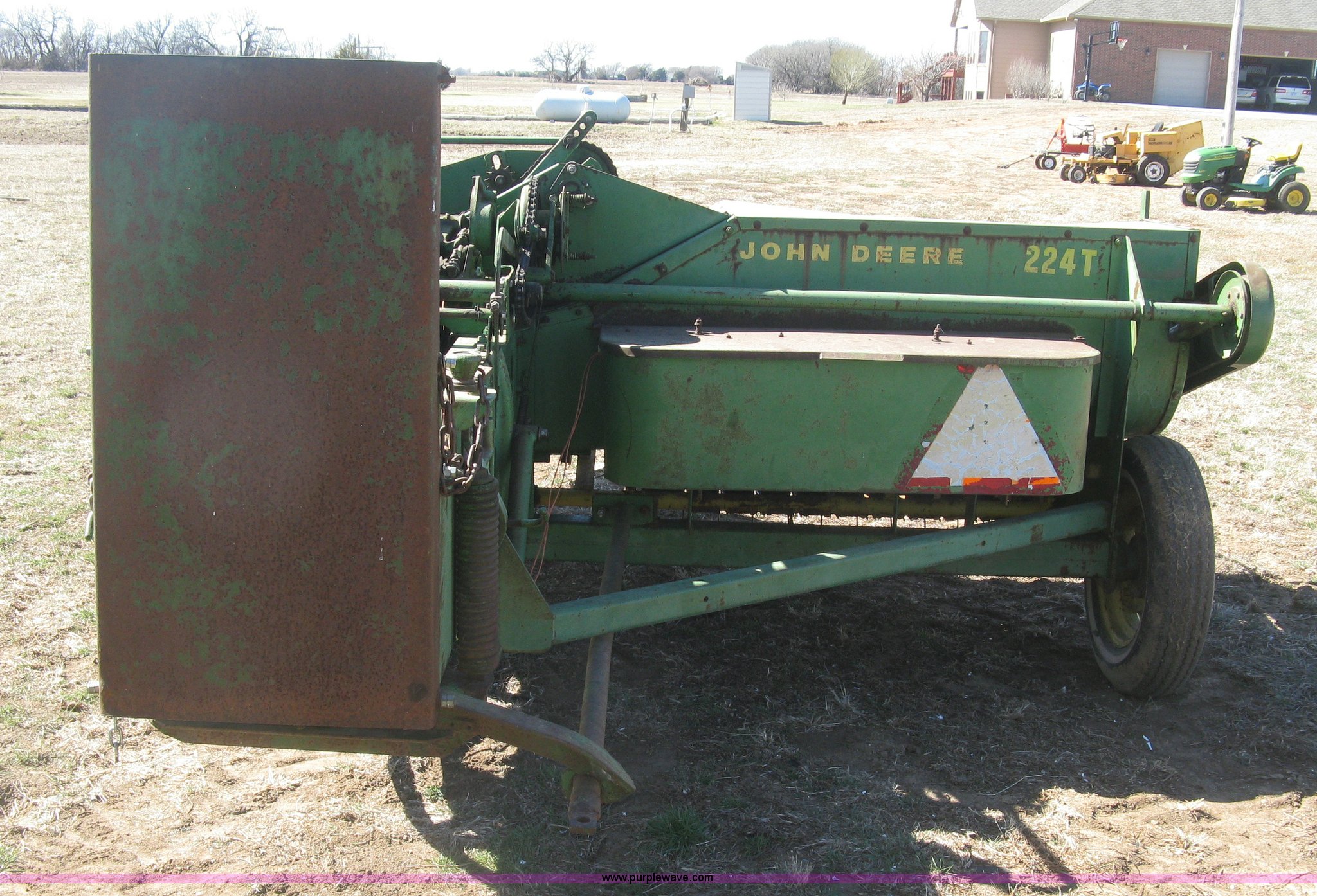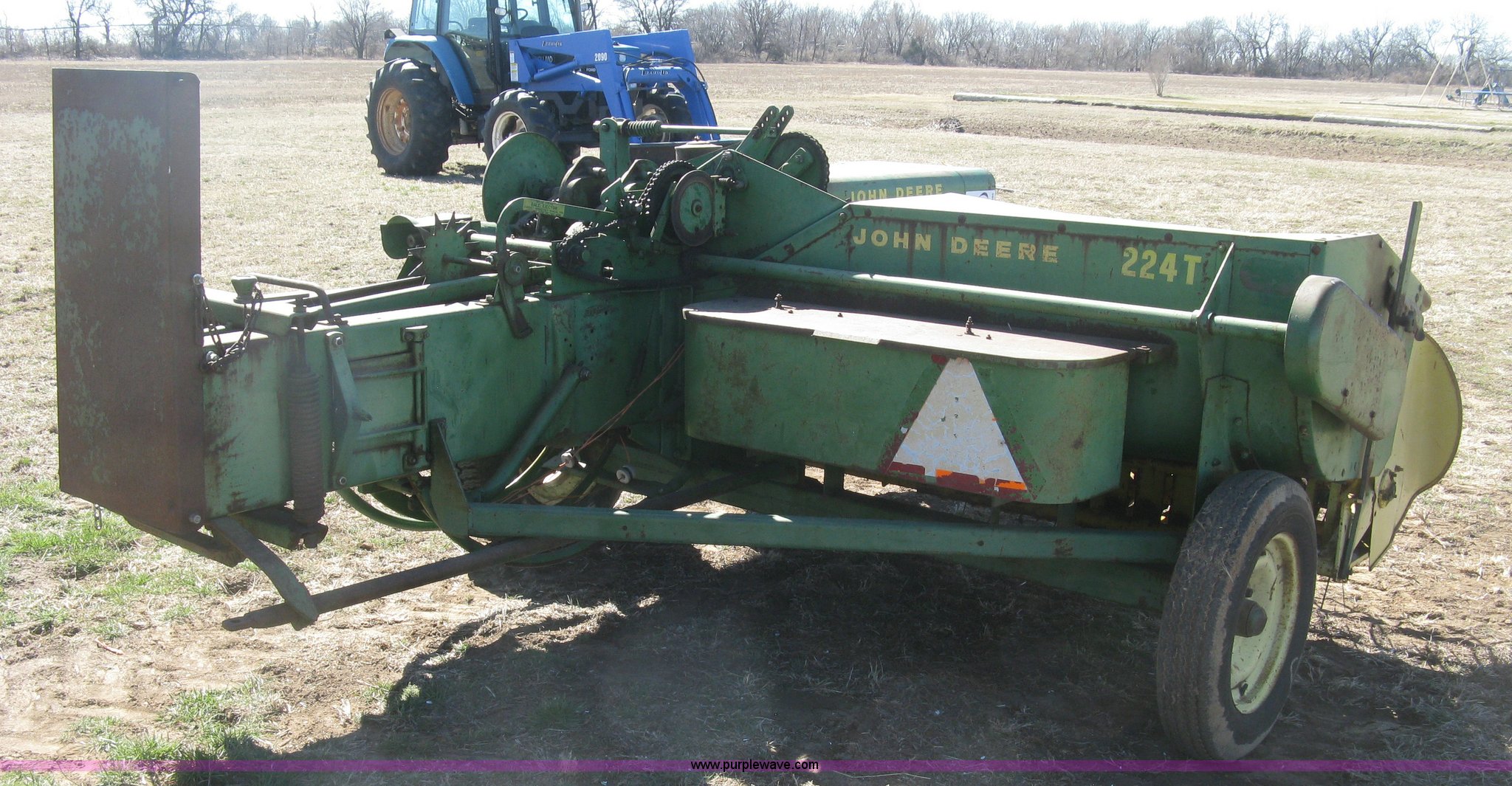 Purple Wave is selling a used Square Baler in Kansas. This item is a John Deere 224T square baler with the following: 52"W pickup, Twine tie, 540 PTO, Adjustable height pin hitch, Rear tow bar, 15" tires, Serial 011917E