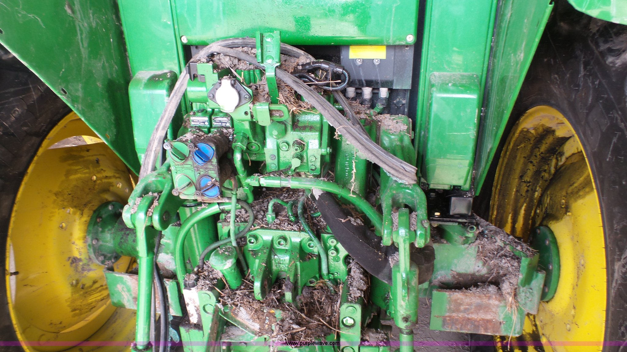 Purple Wave is selling a used Tractor in Kansas. This item is a 2011 John Deere 6430 Premium MFWD tractor with the following: Unknown hours on meter, Four cylinder diesel engine, Power Quad-Range transmission, AC and heat, Tilt steering wheel, AM/FM, Suspension seat, Visor, John Deere H310 loader, Quick attach, Joystick controls, 540 PTO, 340/85R28 front tires, 460/85R38 rear tires, Loader bent, Three point arm bent, Broken windows, Oil coming out of cab fan, Non-operational unit, Unit has been rolled over, Serial 06430K661735