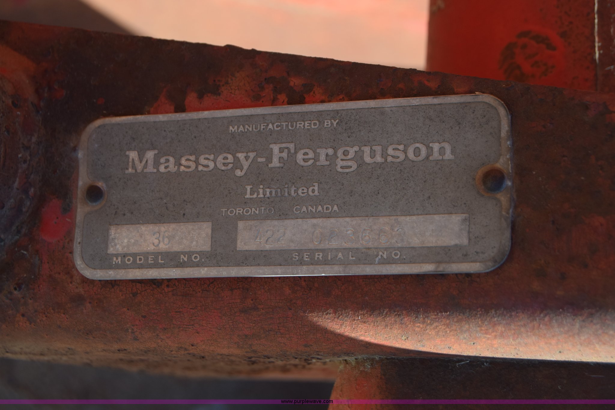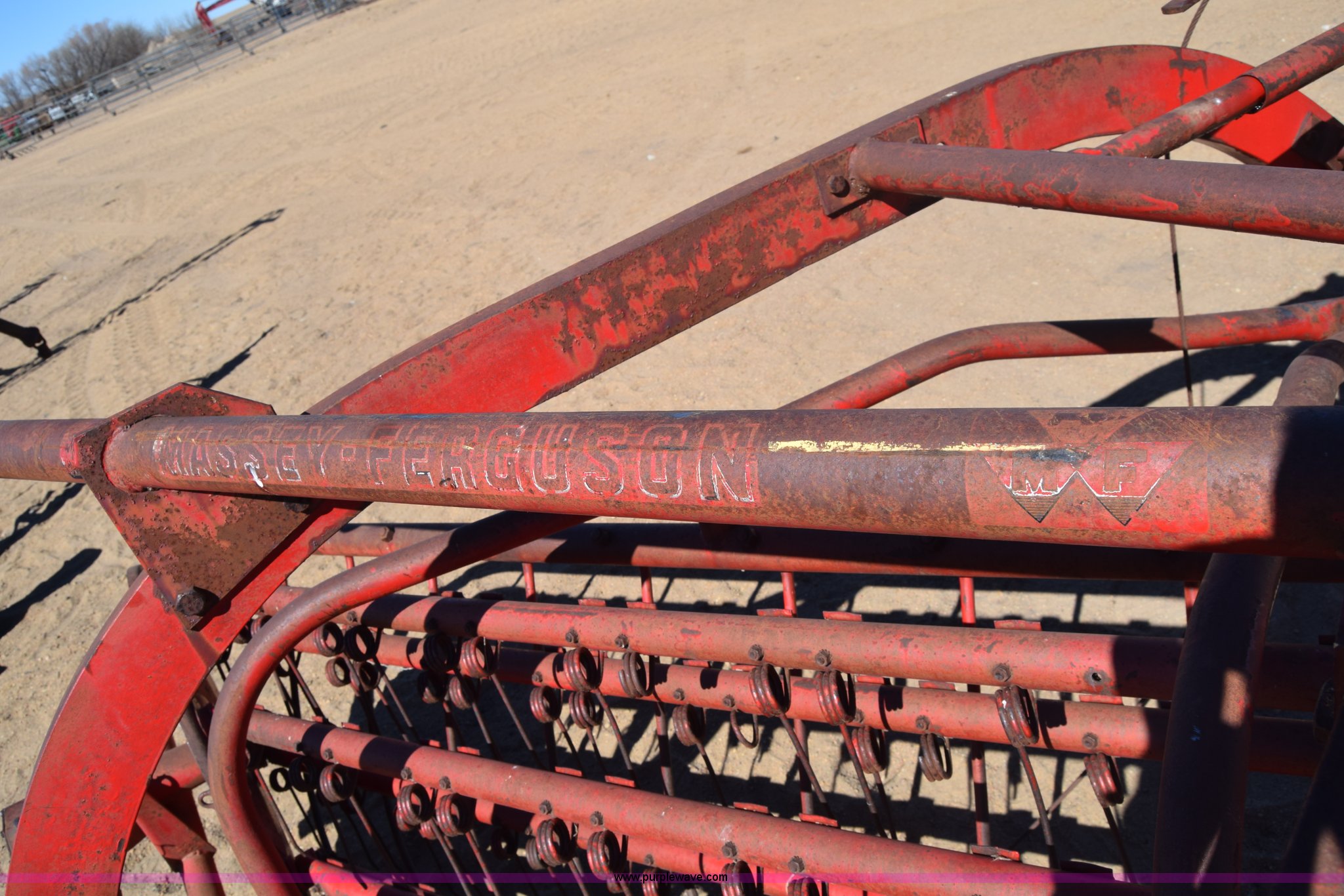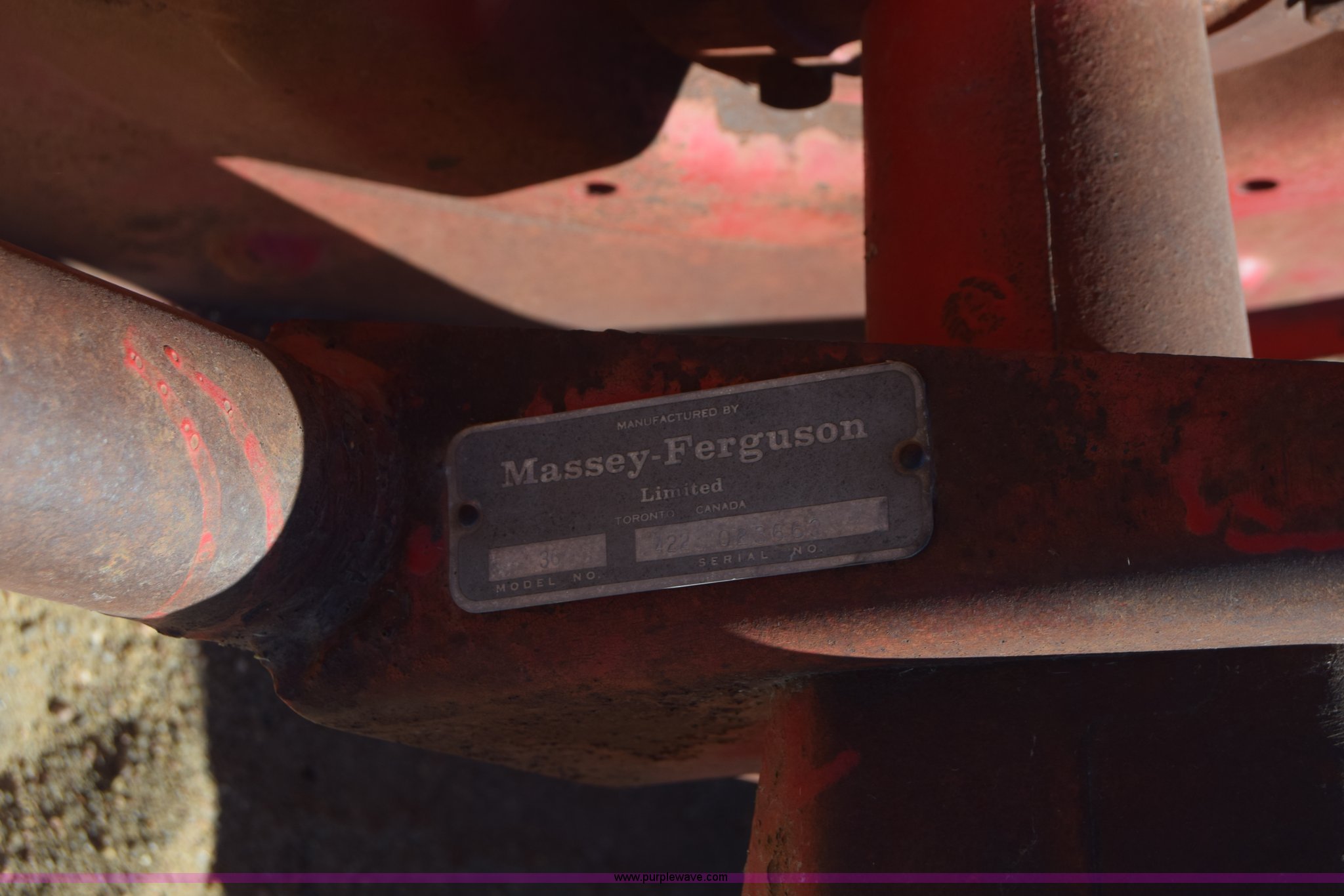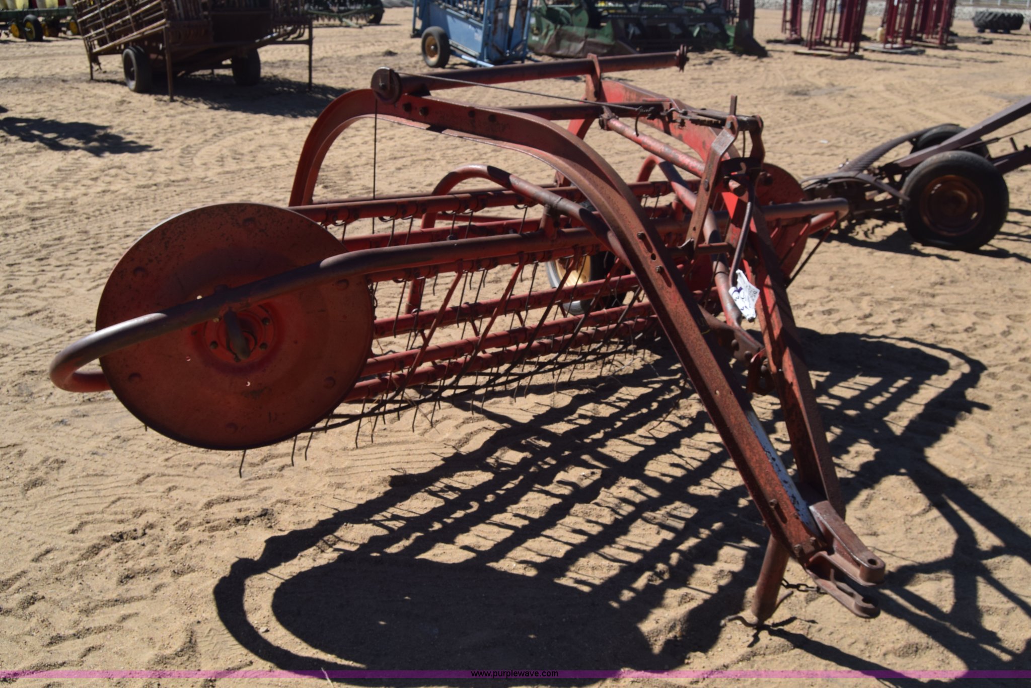 Purple Wave is selling a used Hay Rake in Kansas. This item is a Massey-Ferguson 36 hay rake with the following: 10'W, Pin hitch, Serial 422023663