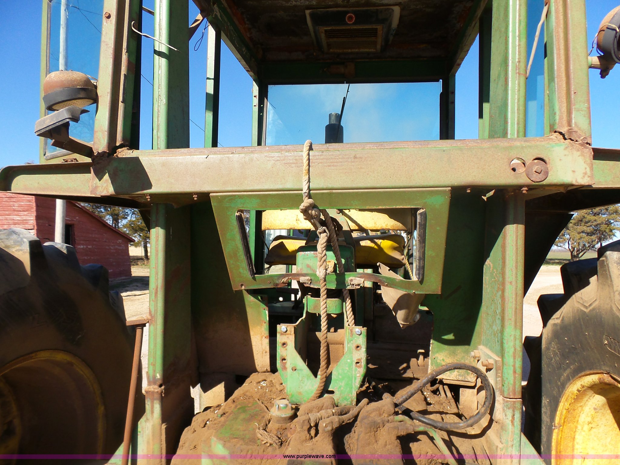 Purple Wave is selling a used Tractor in Oklahoma. This item is a John Deere 5020 tractor with the following: 2,663 hours on meter, Six cylinder diesel engine, Synchro transmission, 8F-2R gears, Enclosed cab, 1000 PTO, (2) rear hydraulic remote sets, 14L-16.1 front tires, 24.5-32 rear tires, Serial T323R022915R