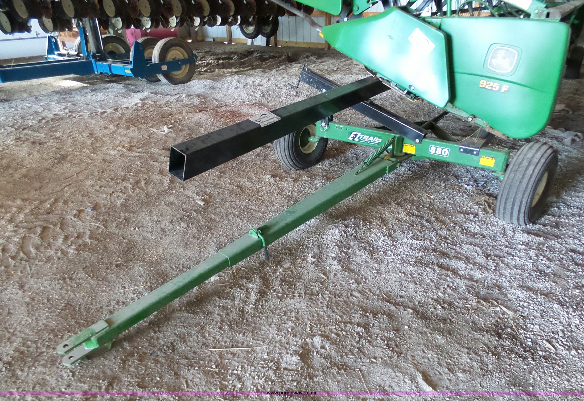 E-Z Trail 880 header trailer. 35' bar, Adjustable hitch length, Pin hitch, Rear pin hitch, 9-10 tires, Head not included. 44848 Hwy E. Harris, MO 64645