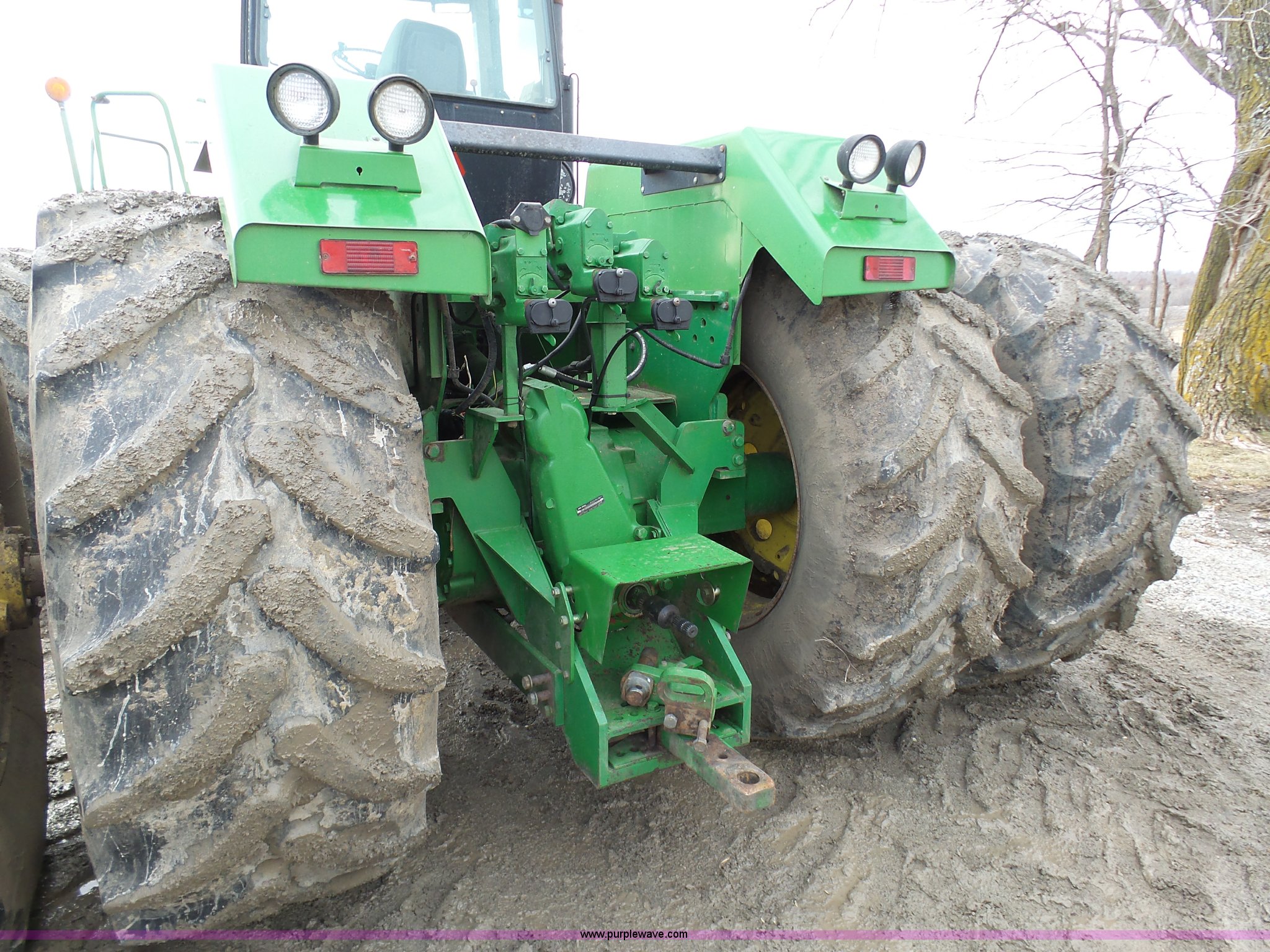 Purple Wave is selling a used Articulated 4-Wheel Drive Tractor in Missouri. This item is a 1993 John Deere 8970 4WD tractor with the following: 9,535 hours on meter, Cummins six cylinder turbo diesel engine, Quad-Range transmission, 24F-24R gears, AC and heat, AM/FM, 1000 PTO, (3) rear hydraulic remote sets, 710/70R38 dual tires, Serial RW8970H001249
