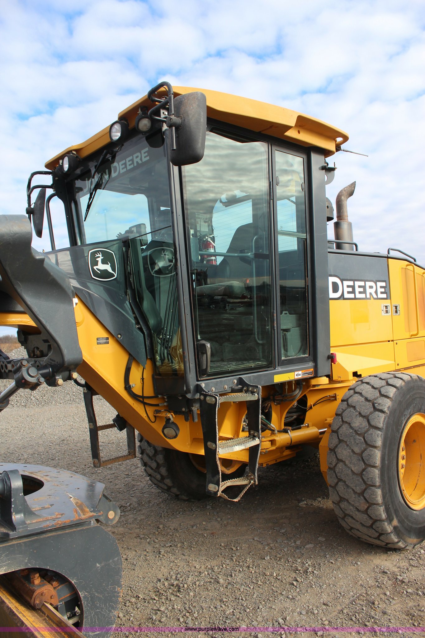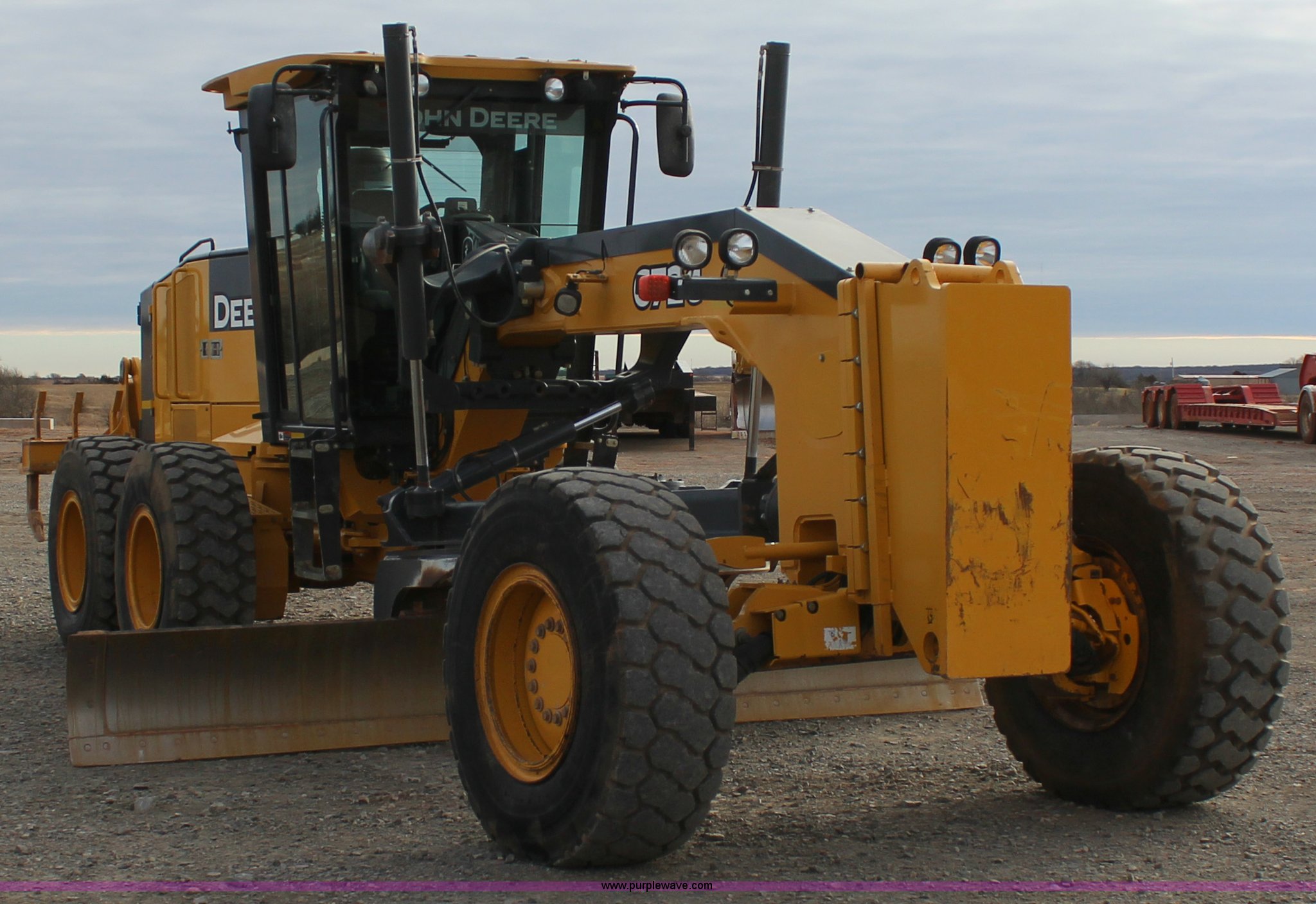Purple Wave is selling a used Motor Grader in Oklahoma. This item is a 2011 John Deere 672G motor grader with the following: 8,088 hours on meter, John Deere Powertech PSS 9.0L six cylinder turbo diesel engine, Serial RG6090L092800, Powershift transmission, 8F-8R gears, All wheel drive, Differential lock, Enclosed cab, AC and heat, AM/FM, Air suspension seat, Front and rear work lights, Wipers, Window shade, 14'W moldboard, Tip control, Side shift, Front mounted push block, Rear ripper, (3) ripper shanks, 17.5R25 tires, 36,060 lbs. base operating weight, Service records available, Serial 1DW672GXJA632592