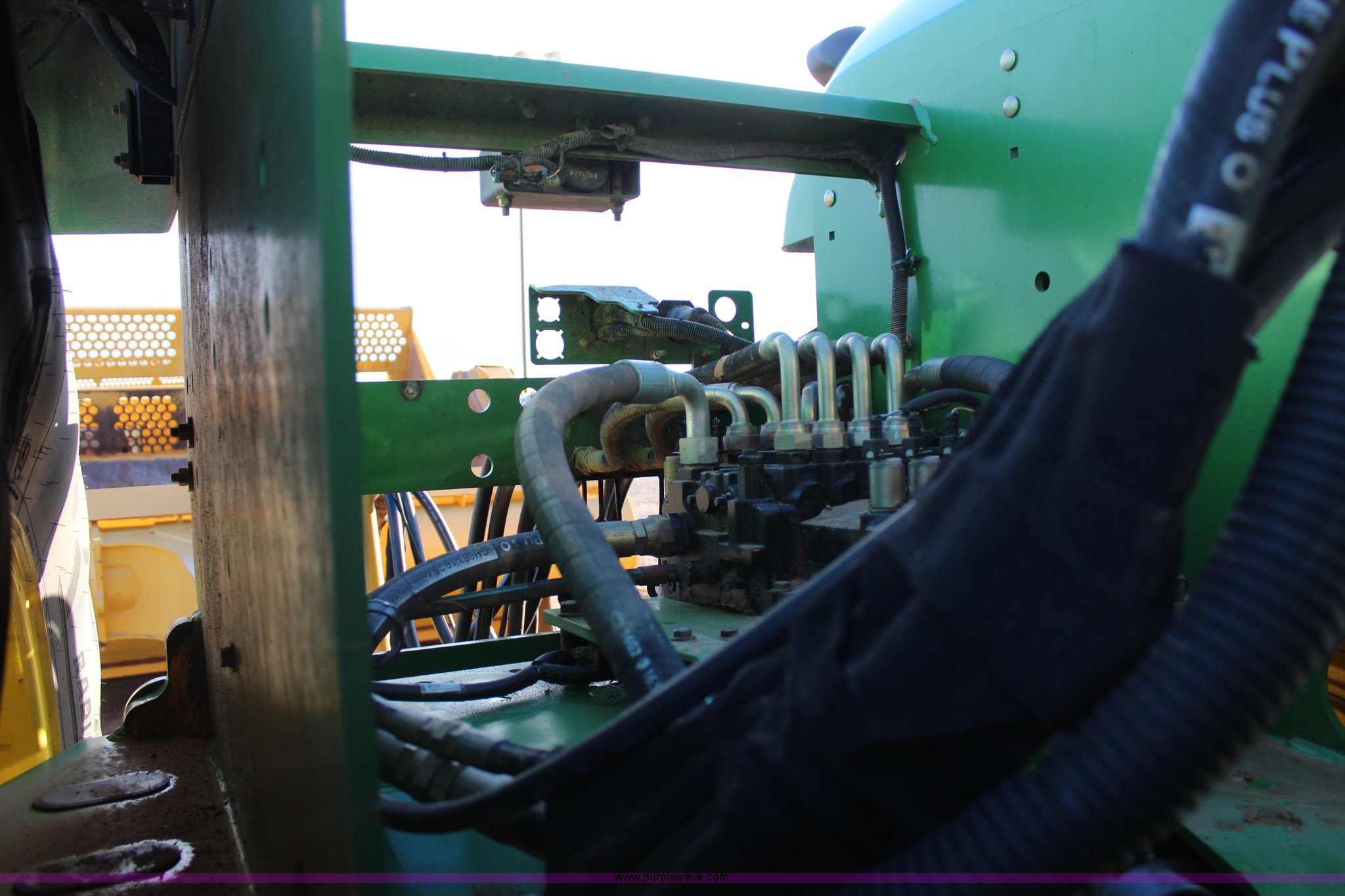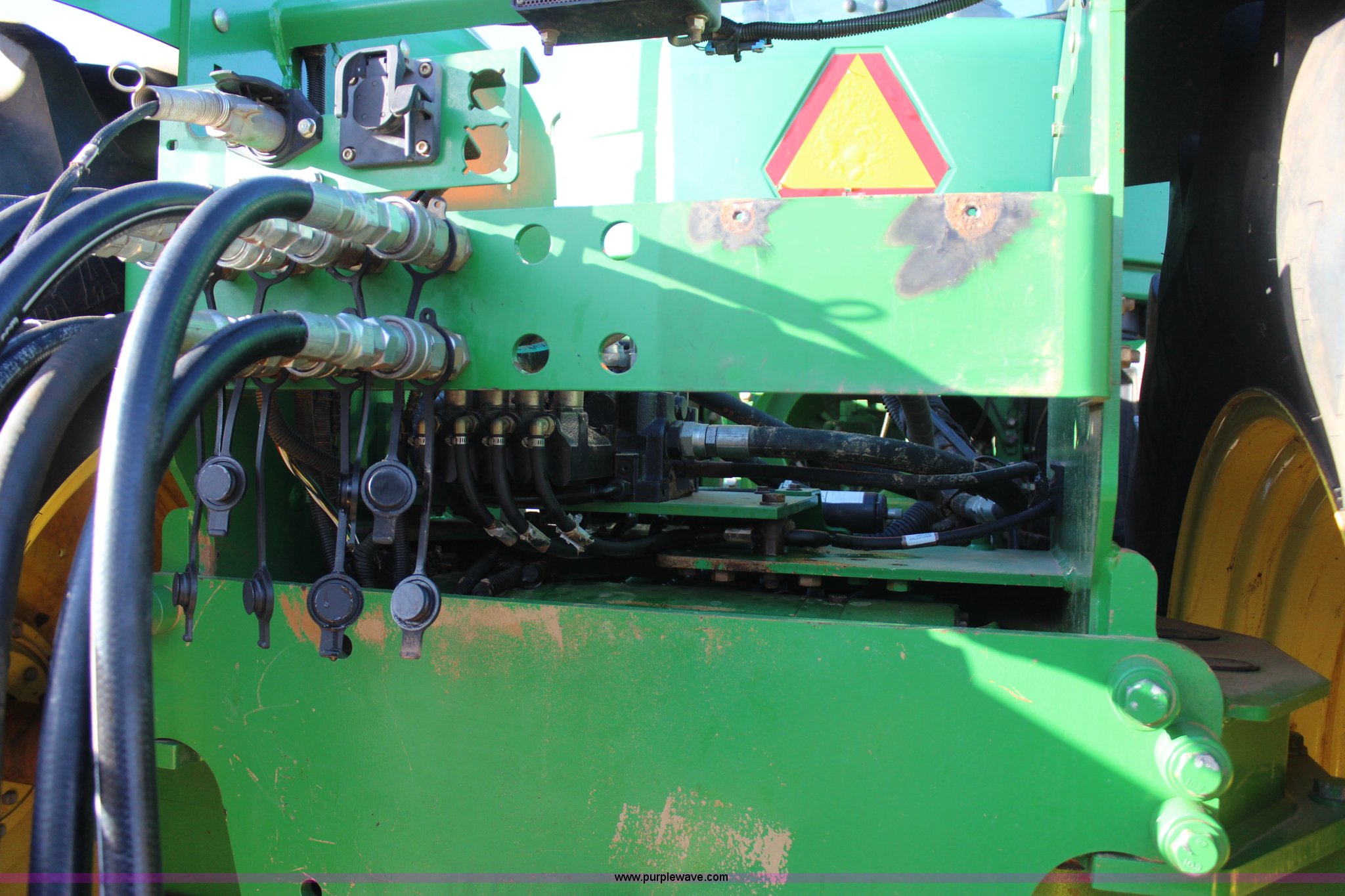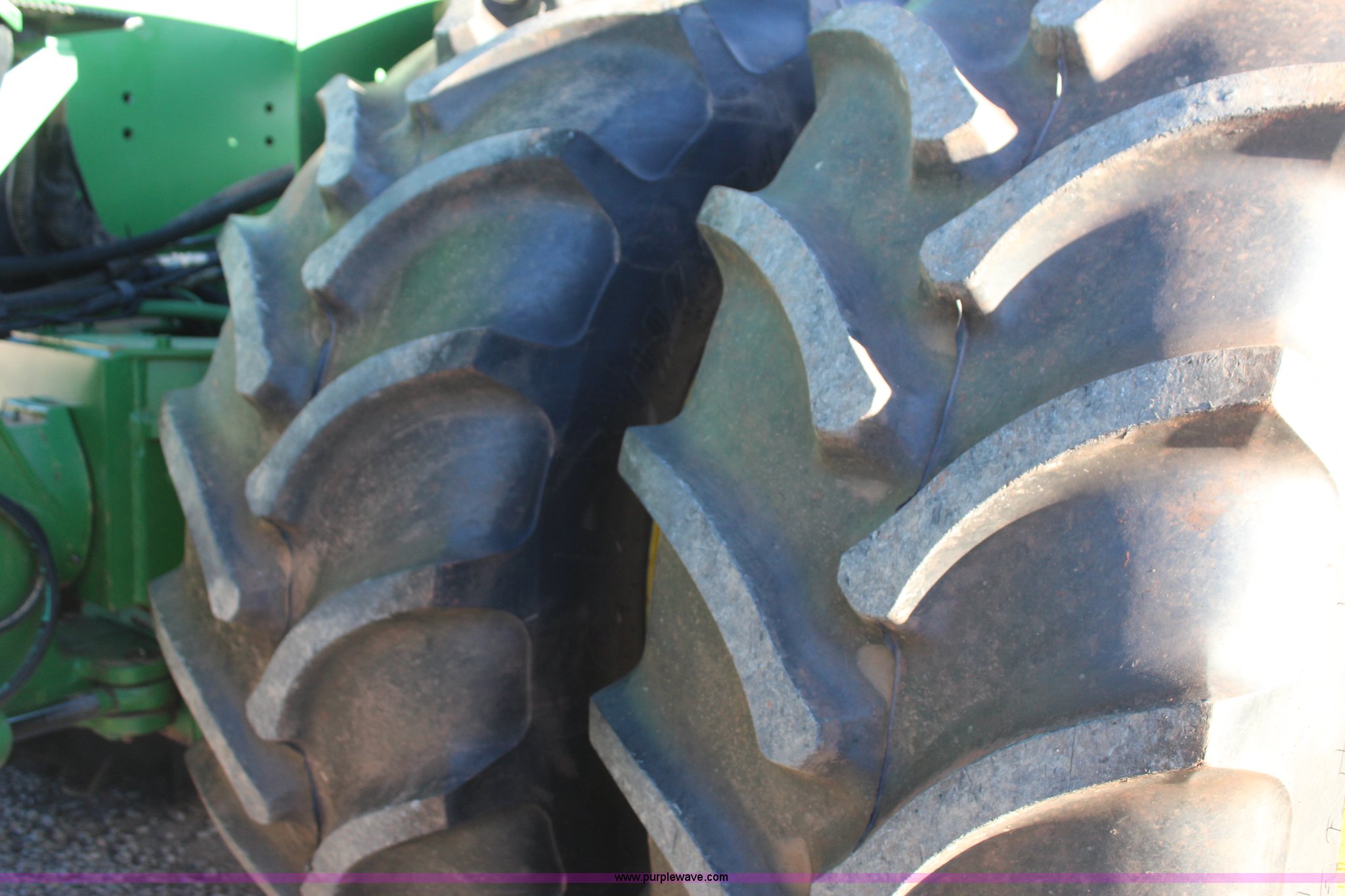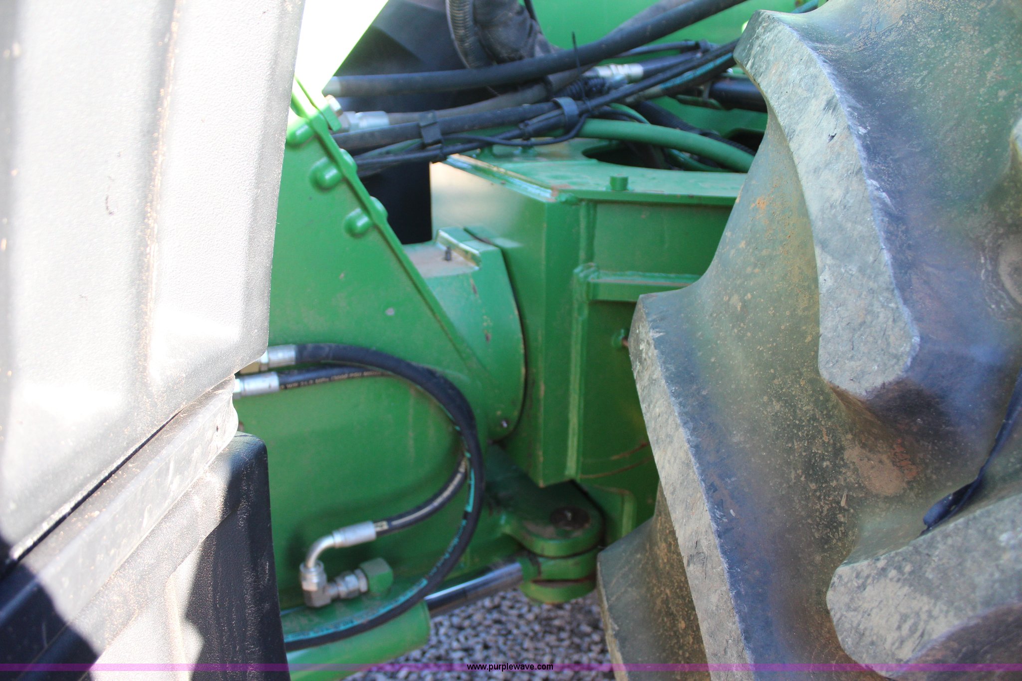 Purple Wave is selling a used Articulated 4-Wheel Drive Tractor in Oklahoma. This item is a 2009 John Deere 9630 4WD tractor with the following: 630 hours on meter, Approx. 6,399 total hours, John Deere 13.5L six cylinder diesel engine, Engine replaced at 5,769 hours in December 2014, 630 hours of use since engine was replaced, Serial SE6135L127699, Powershift transmission, 18F-6R gears, Transmission replaced approx. 1,500 hours ago in June 2013, Differential lock, AC and heat, Tilt steering wheel, AM/FM, Air suspension seat, Instructor's seat, Shade, GreenStar ready, (4) rear hydraulic remote sets, (22) suitcase weights, 710/70R42 dual tires, Front axle replaced in June 2015, Serial RW9630E010185