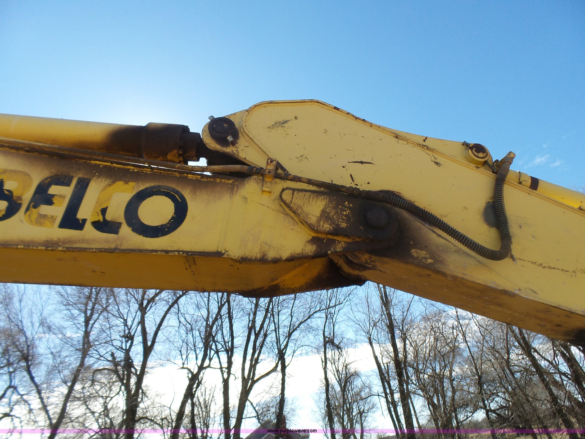 Purple Wave is selling a used Hydraulic Excavator in Missouri. This item is a 2002 Kobelco SK210LC excavator with the following: 7,942 hours on meter, Mitsubishi L03.9D3A six cylinder turbo diesel engine, Hydrostatic transmission, EROPS, AC and heat, AM/FM, Suspension seat, Front work lights, Standard boom, 9.5' stick length, Geith 44CL 40"W bucket, (5) weld-on teeth, Manual thumb, 32"W steel tracks, Glass missing, Rear compartment dented, Serial Y00700947, Unit# PO9126