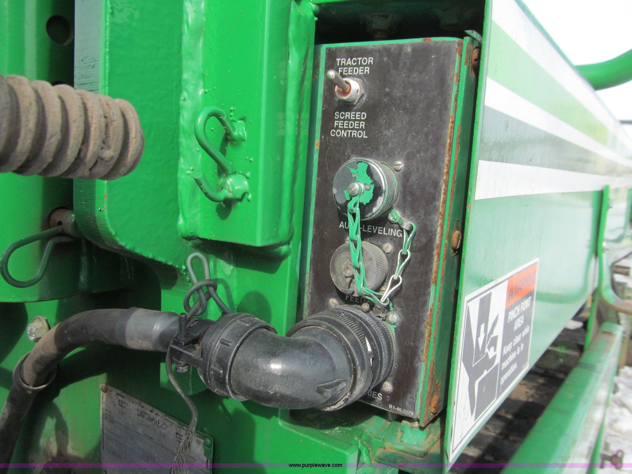 1996 Barber Greene BG225B paver. 3,973 hours on meter, Caterpillar 3054 four cylinder turbo diesel engine, Hydrostatic transmission, Dual operator stations, Caterpillar 8-16B extendable screed Fuel oil fired, Serial 3GL00232, Front work lights, Forward truck rollers, 14"W steel track pads Rubber inserts, Non-operational automatics, Serial 6YK00572, Unit# 320. Blacktop Service Co.. 1648 Highway 169 N. Fort Dodge, IA 50501