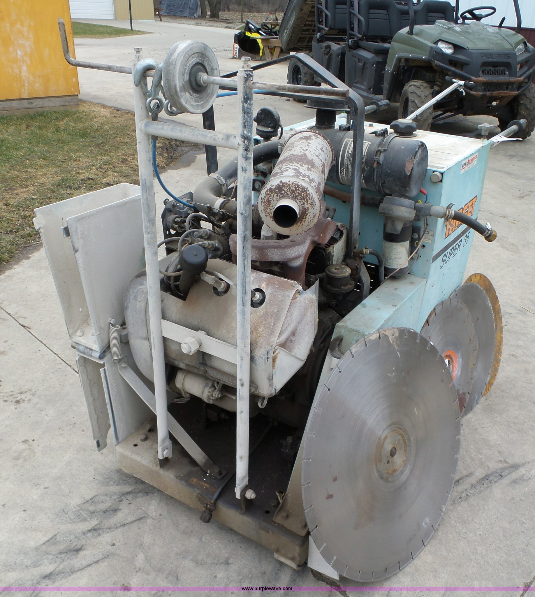 Purple Wave is selling a used Concrete Equip. or Acces. in Iowa. This item is a Target Super 35 concrete saw with the following: Wisconsin four cylinder gas engine, Serial 103232, Water spray system, Power blade depth control, 24" blade, 20" blade, (3) 18" blades
