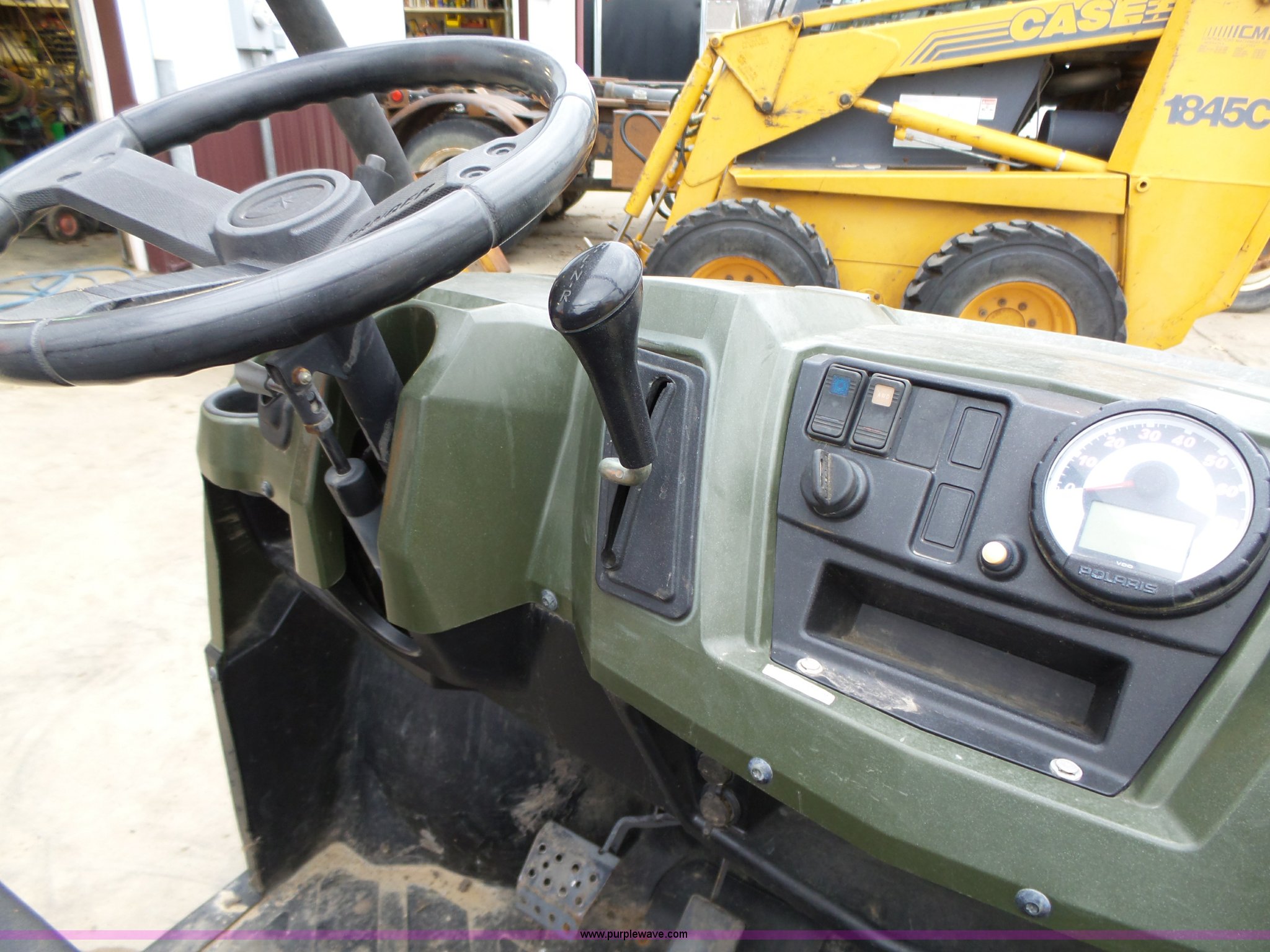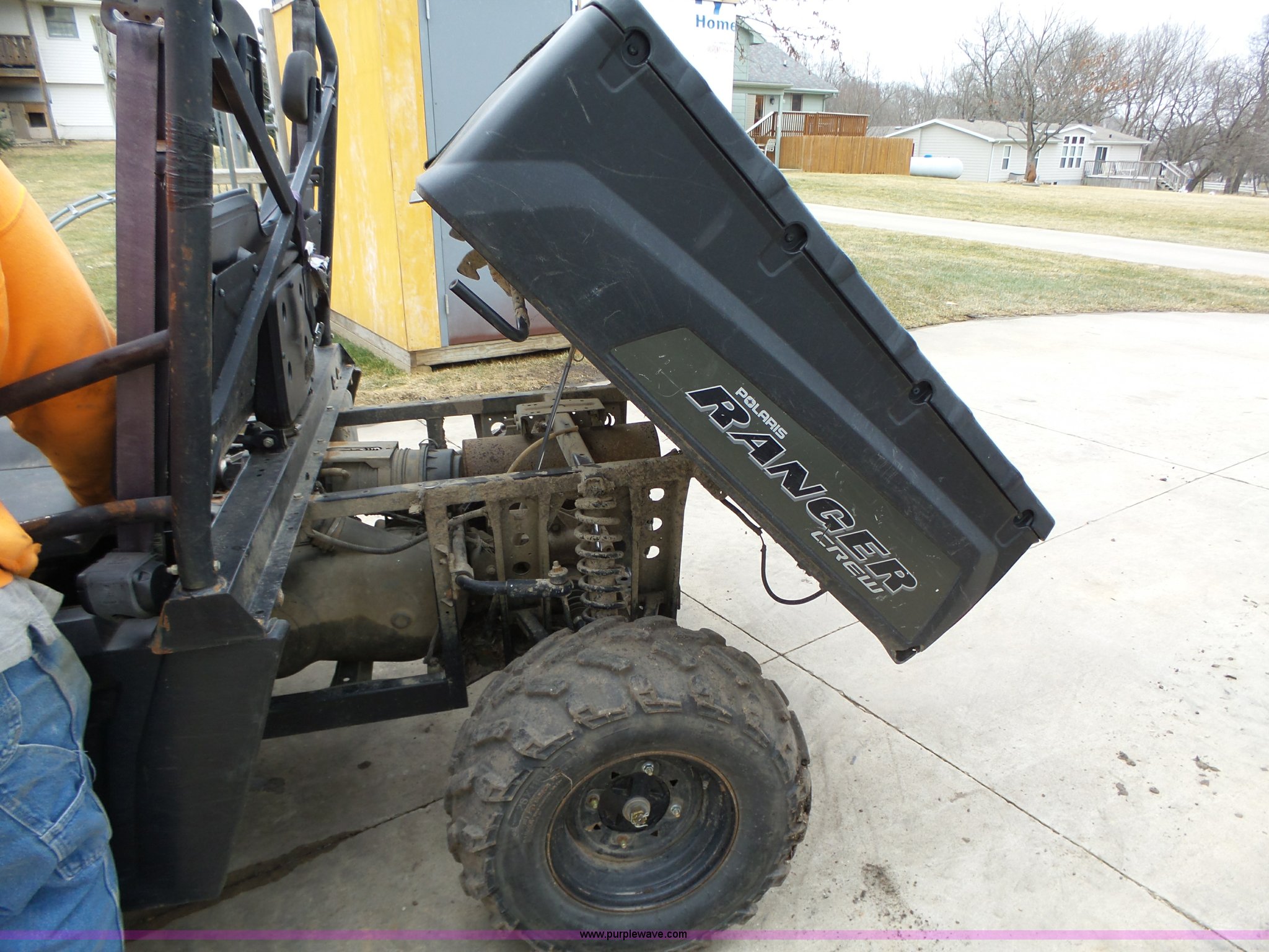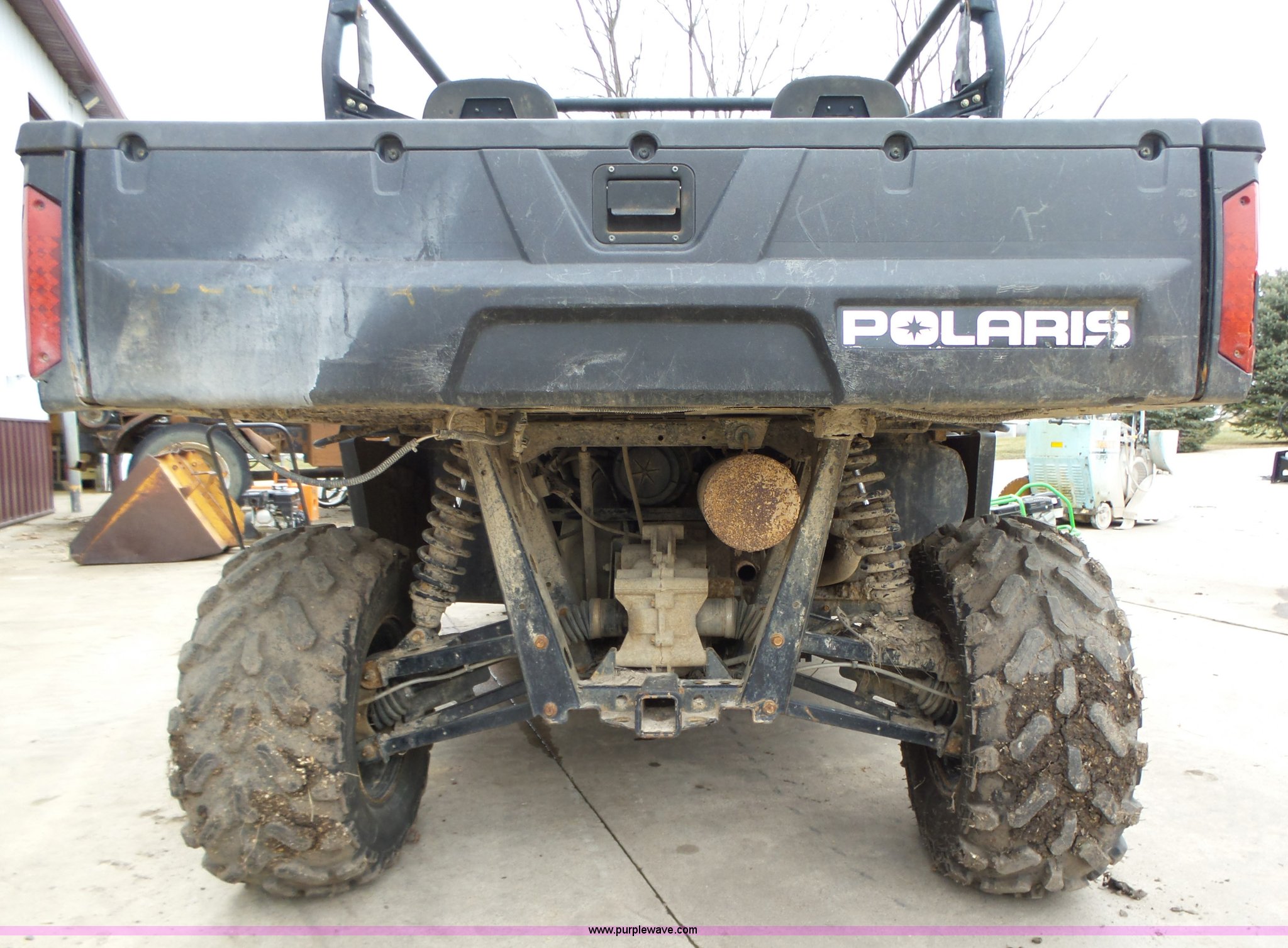 Purple Wave is selling a used Utility Vehicle in Iowa. This item is a 2010 Polaris Ranger EFI800 utility vehicle with the following: 2,072 miles on odometer, 461 hours on meter, Polaris two cylinder gas engine, 2F-1R gears, Four wheel drive, ROPS bar, Tilt, Manual tilt bed, Receiver hitch, 26 x 9.00R12 front tires, 26 x 11.00R12 rear tires, Engine has a knock