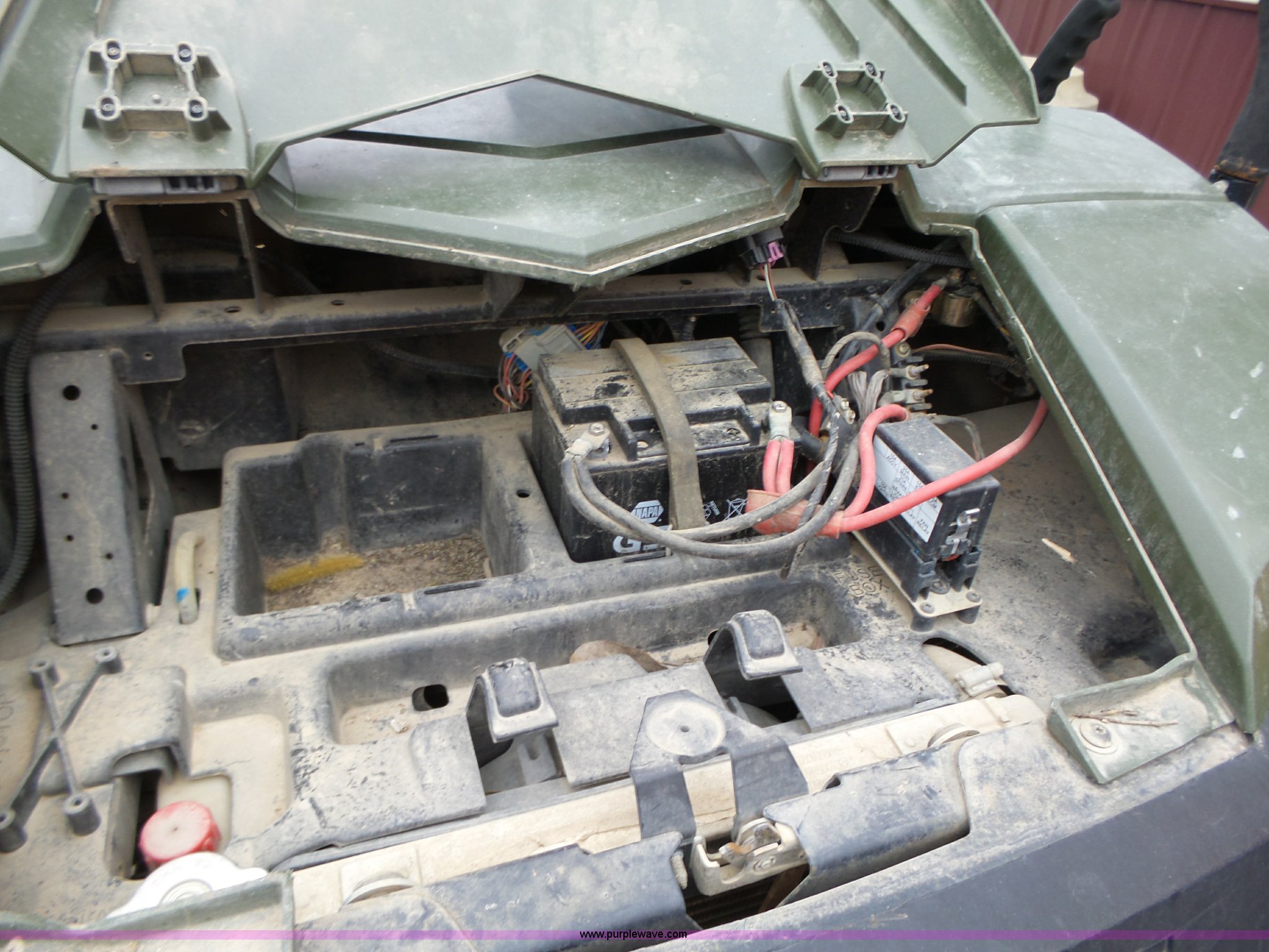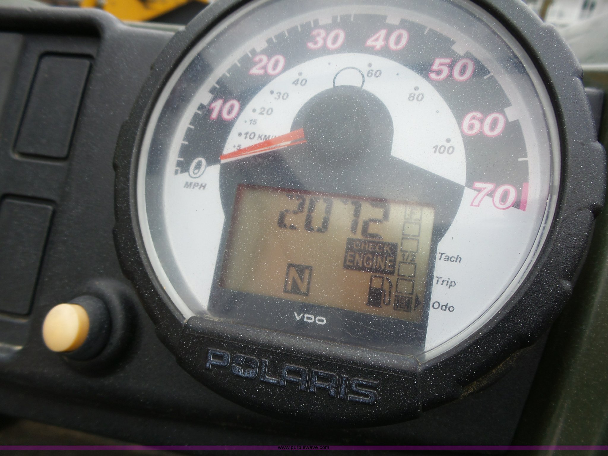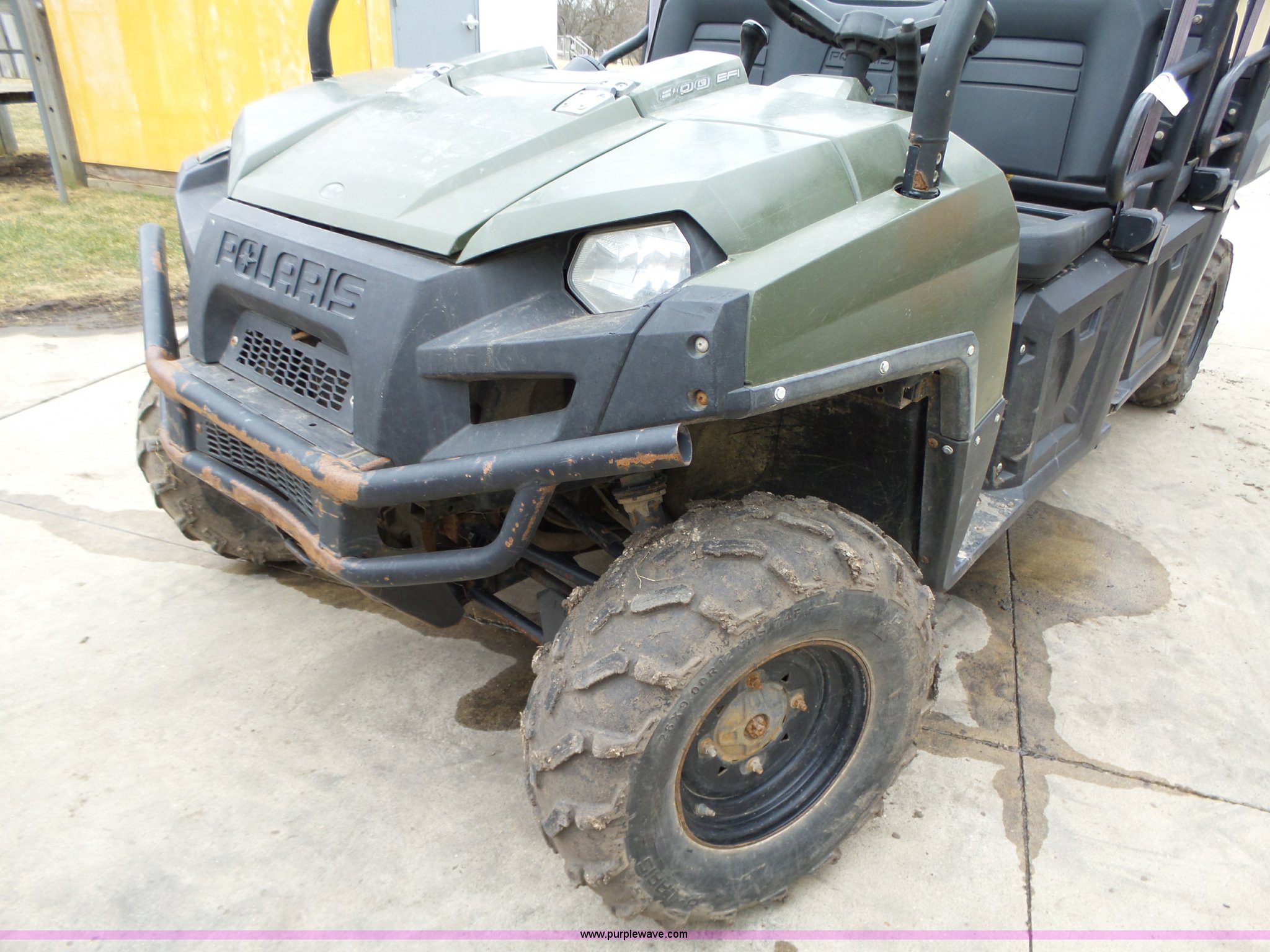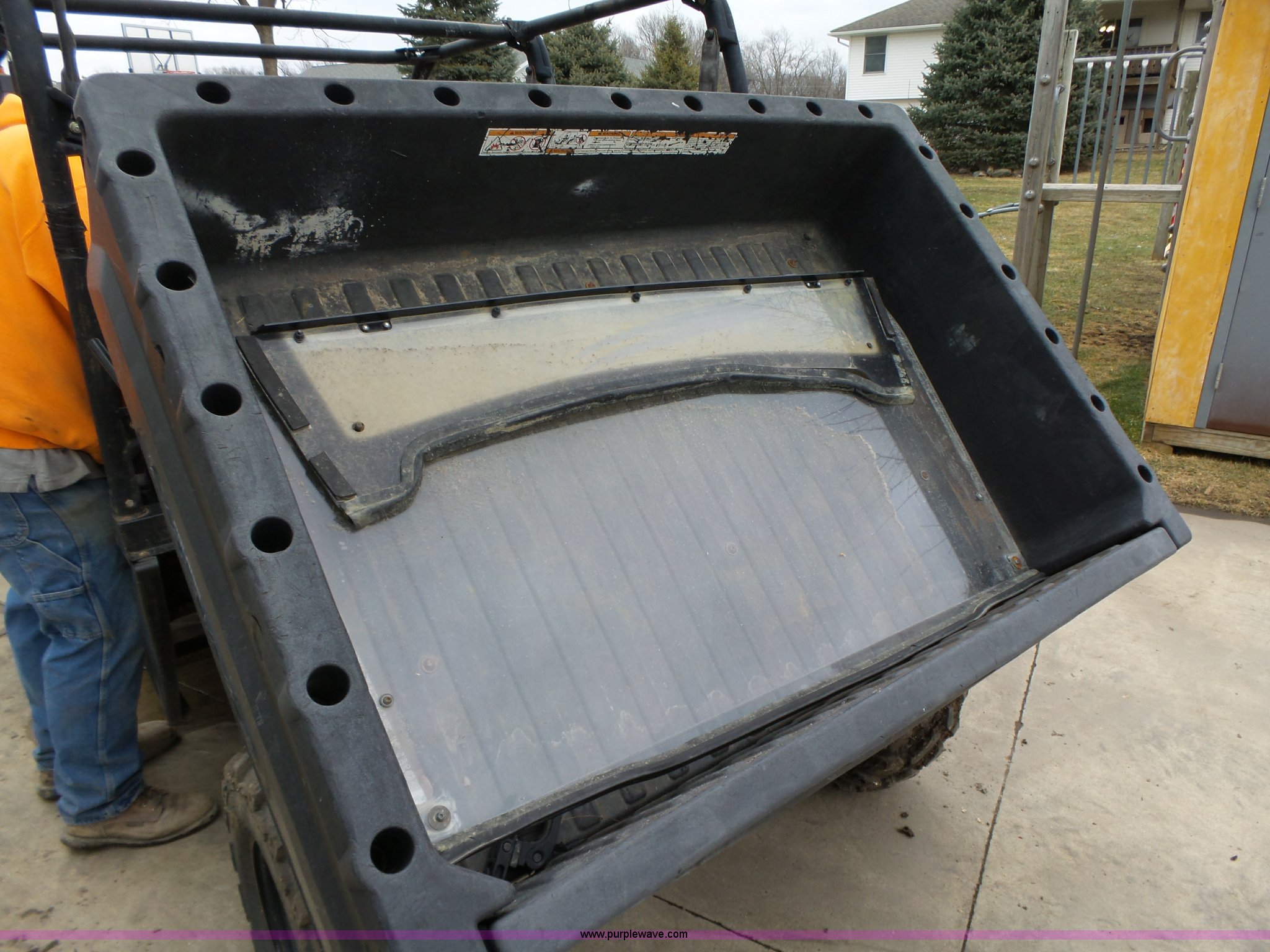 Purple Wave is selling a used Utility Vehicle in Iowa. This item is a 2010 Polaris Ranger EFI800 utility vehicle with the following: 2,072 miles on odometer, 461 hours on meter, Polaris two cylinder gas engine, 2F-1R gears, Four wheel drive, ROPS bar, Tilt, Manual tilt bed, Receiver hitch, 26 x 9.00R12 front tires, 26 x 11.00R12 rear tires, Engine has a knock