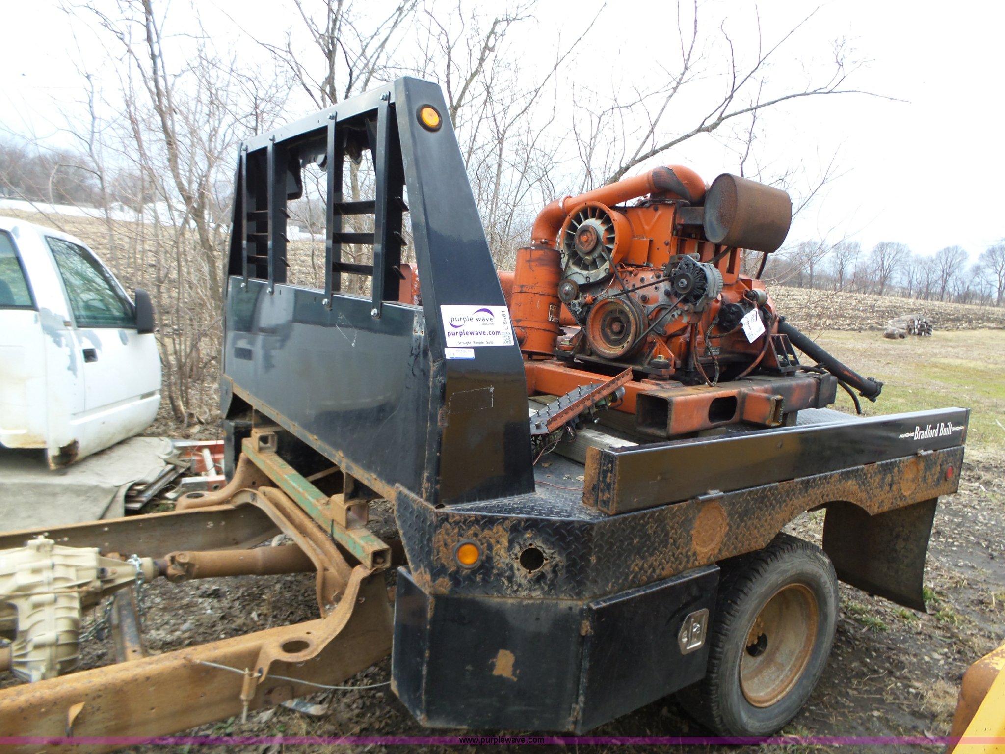 Purple Wave is selling a used Automotive Parts or Acces. in Iowa. This item is a Bradford flatbed with the following: 102"L x 96"W, Steel construction, Headache rack, (2) under body toolboxes, Receiver hitch, Trailer wiring, Engine is not included