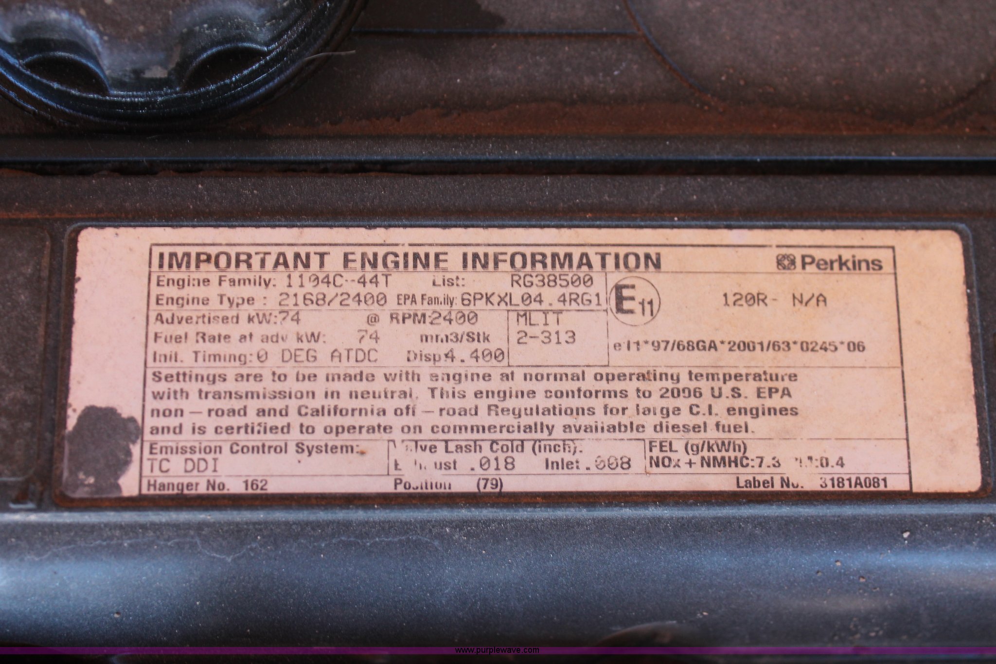 - Perkins 2168/2400 4.4L four cylinder diesel engine