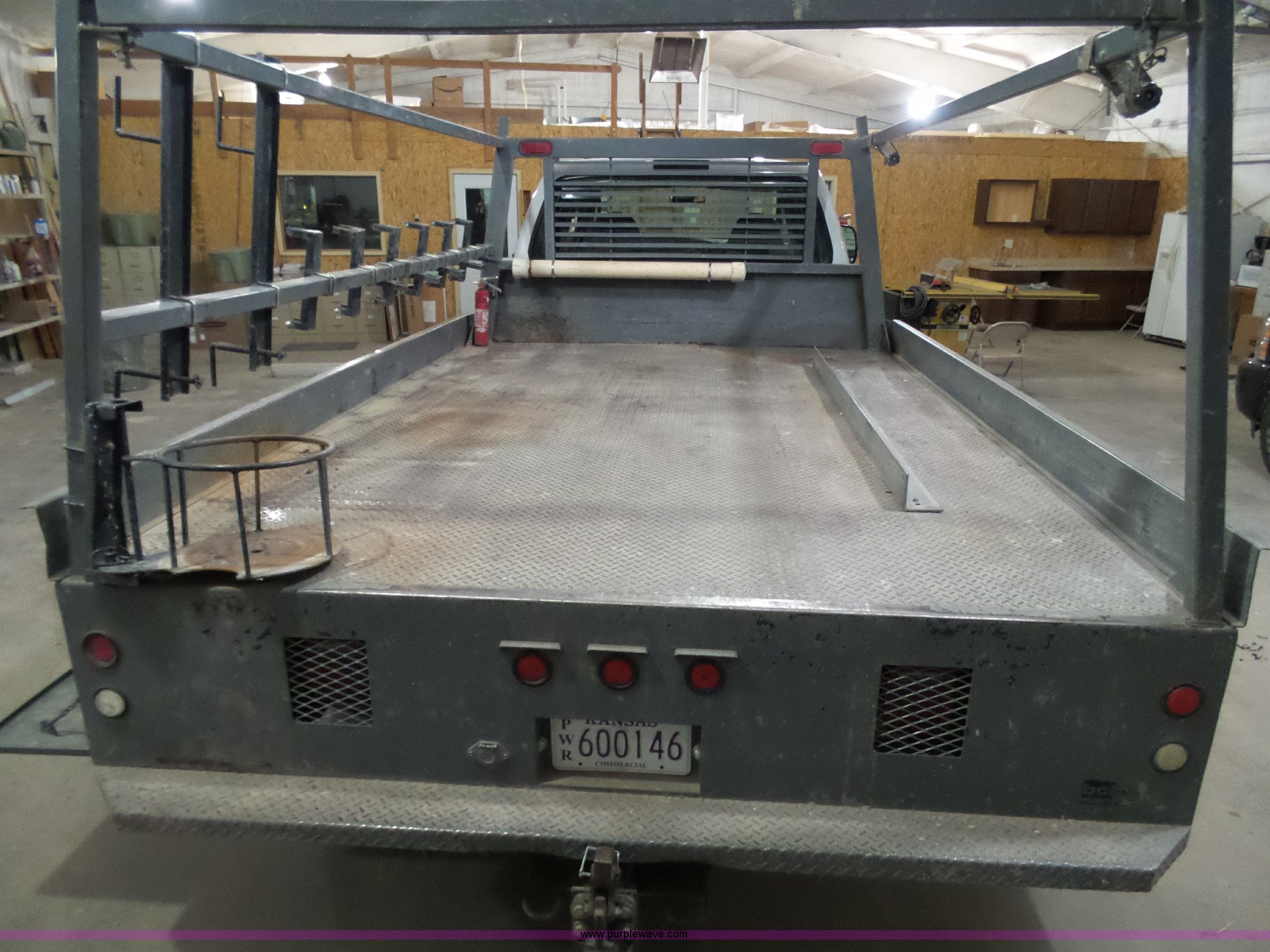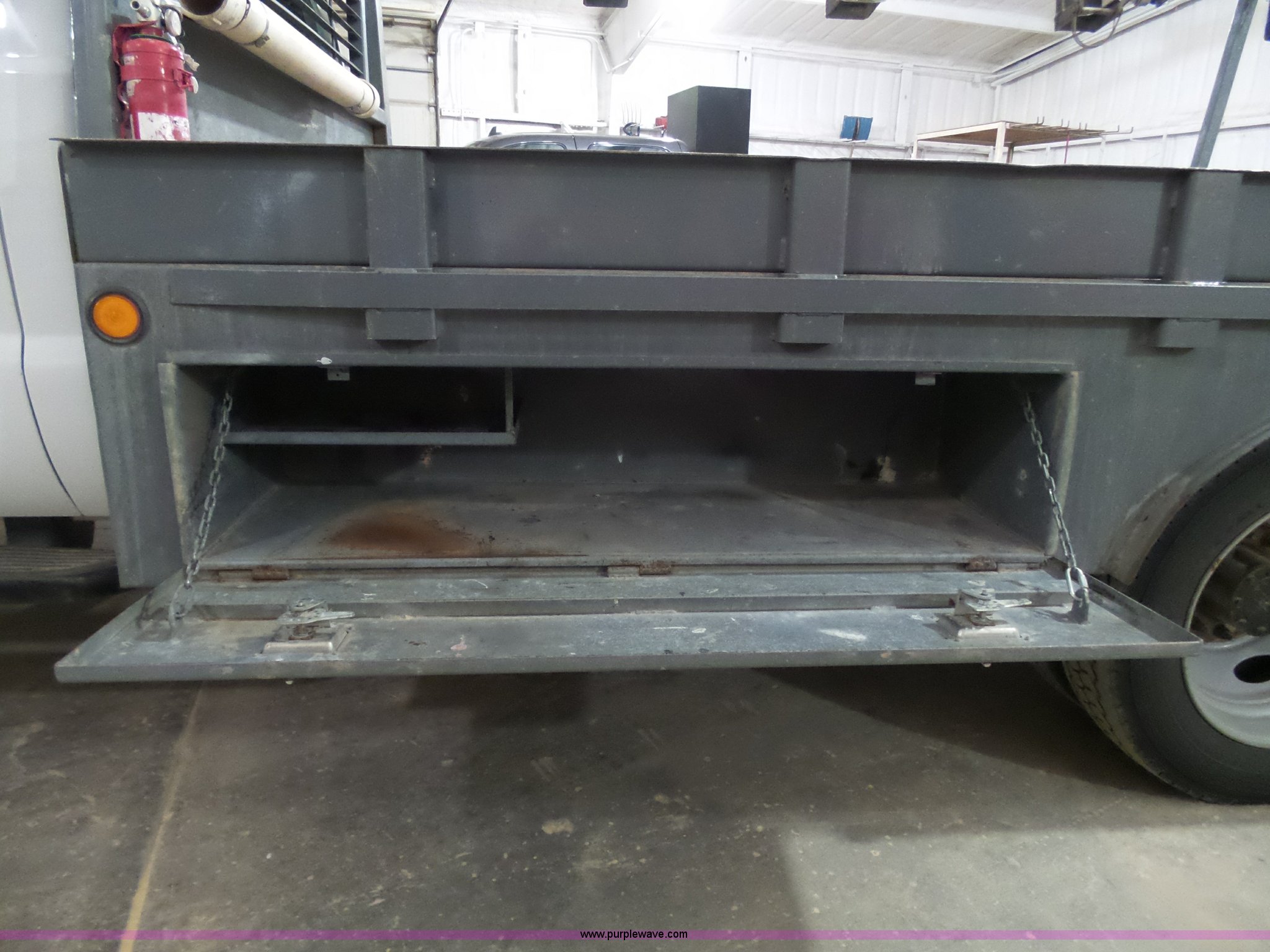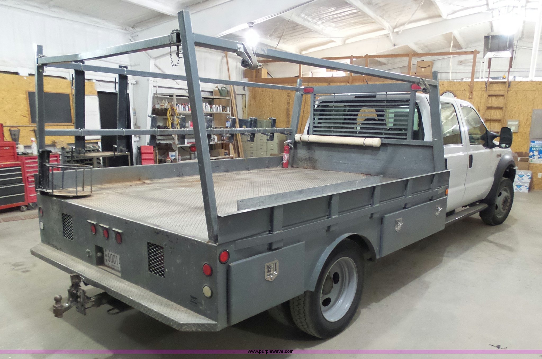 Purple Wave is selling a used Flat Bed Truck in Kansas. This item is a 2006 Ford F450 Super Duty XL SuperCrew flatbed truck with the following: 96,770 miles on odometer, 2,032 hours on meter, 6.8L V10 SOHC 30V gas engine, Five speed manual transmission, AC and heat, Tilt, Cruise, AM/FM, Manual windows and locks, Cloth interior, Front tow hooks, Running boards, BCI flatbed, 11'L x 96"W, (4) toolboxes, Receiver hitch, Trailer wiring, 255/70R19.5 tires, Interior/exterior cosmetic damage, Seat torn, Paint chipped, Scratches, Dents