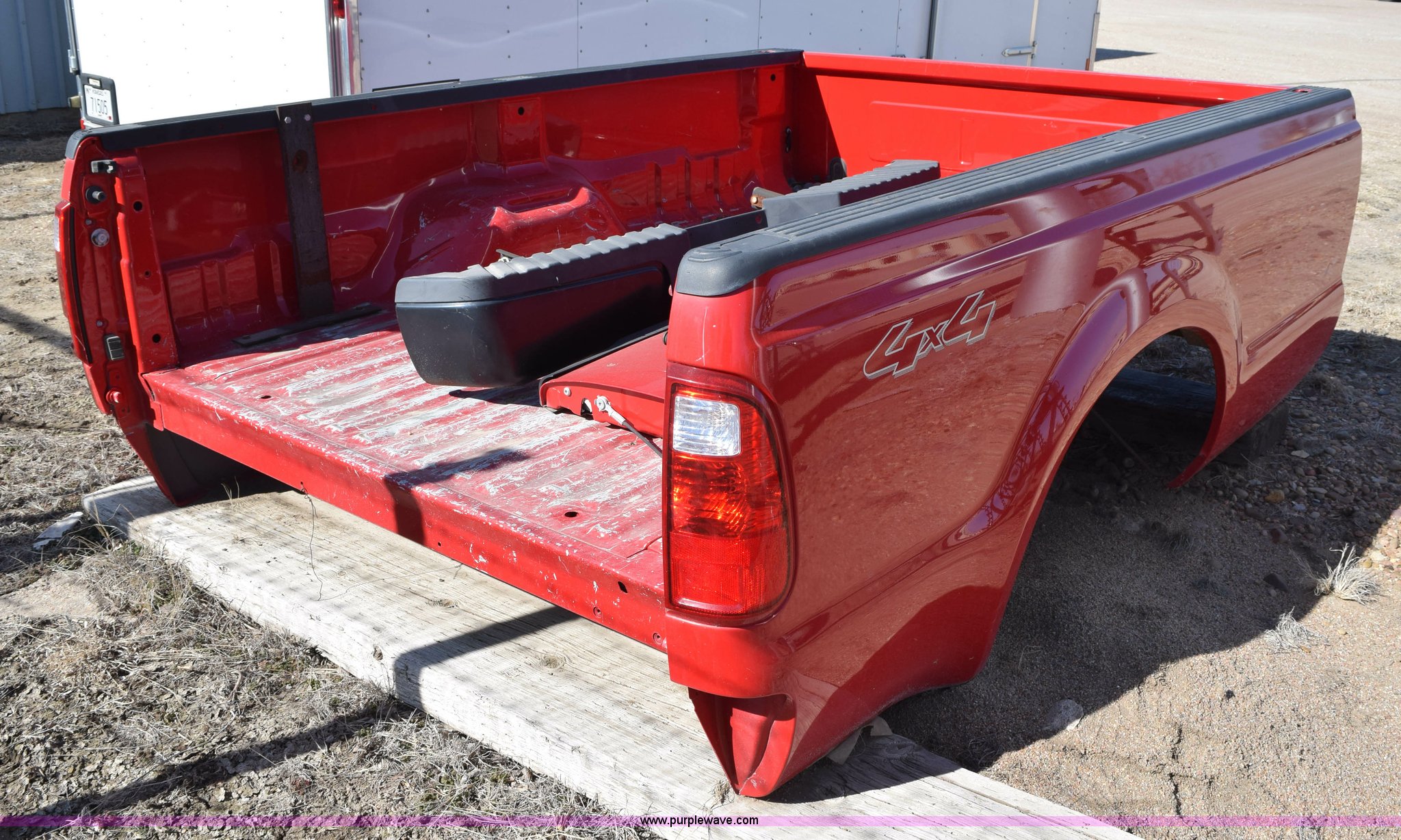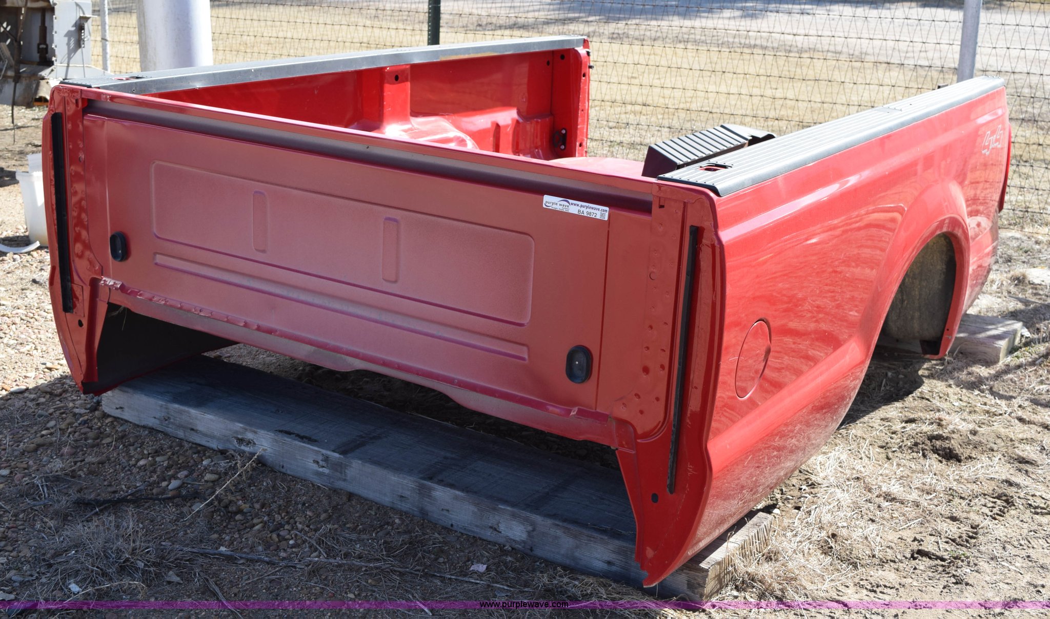 Purple Wave is selling a used Automotive Parts or Acces. in Kansas. This item is a Pickup truck bed with the following: 8'L x 6'W, Mounting bolt, bumper, and tailgate included, Removed from 2008 Ford F250 pickup truck