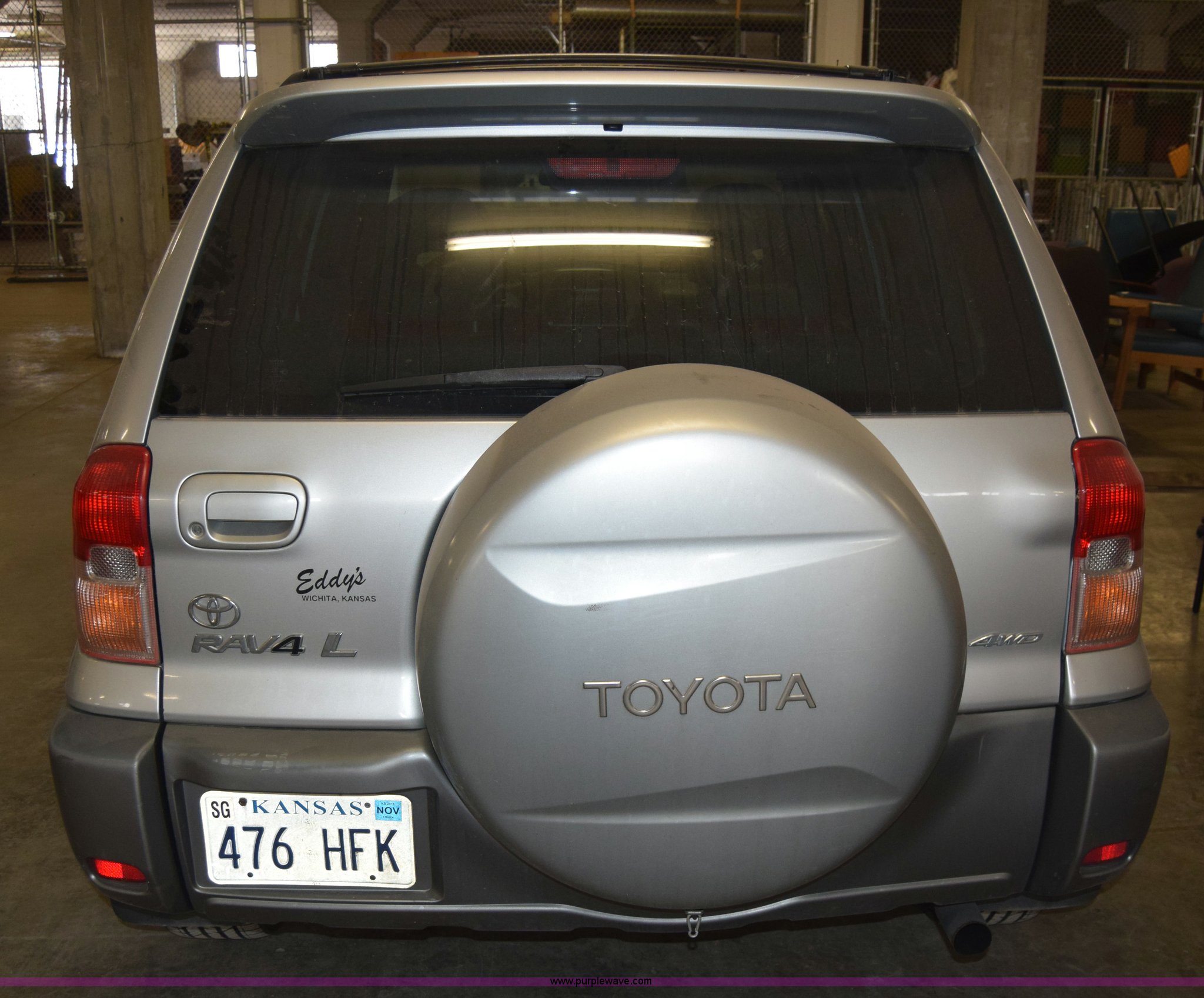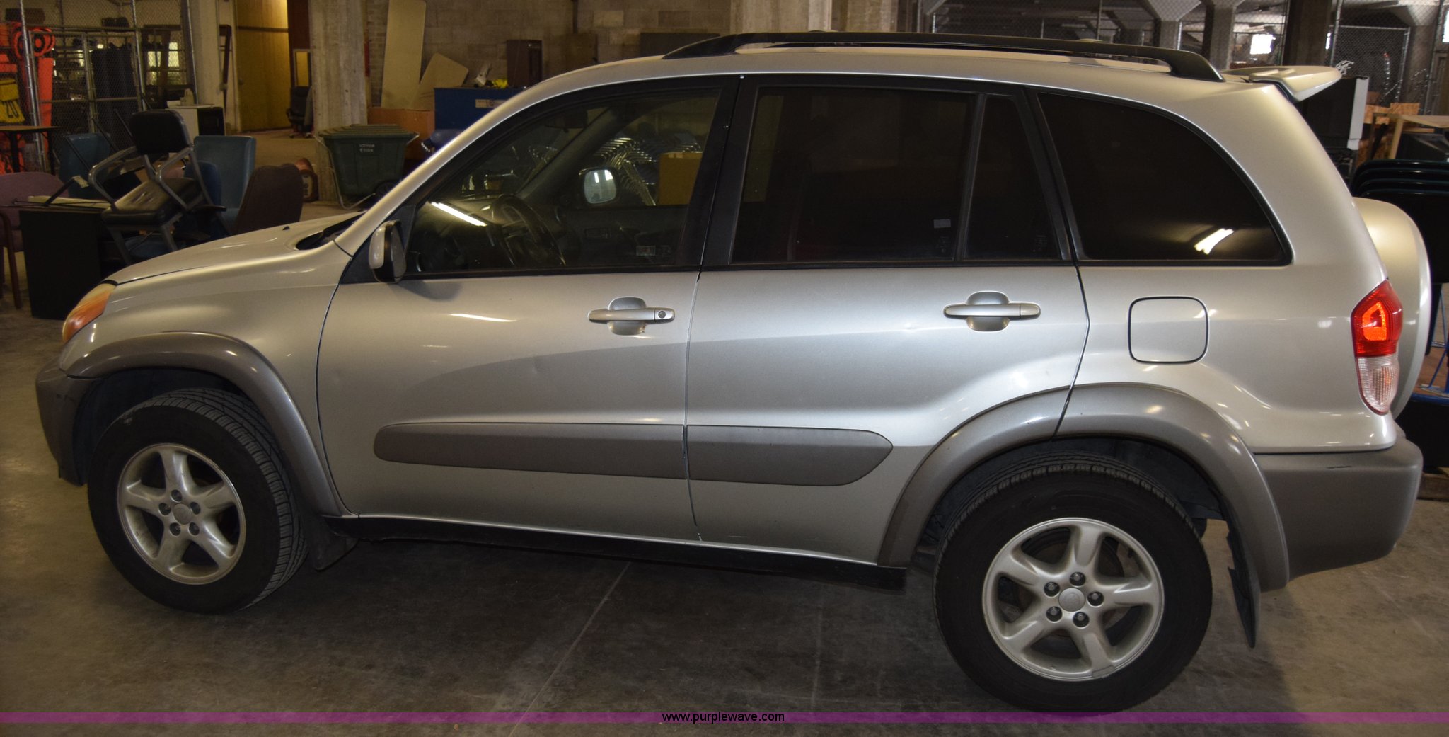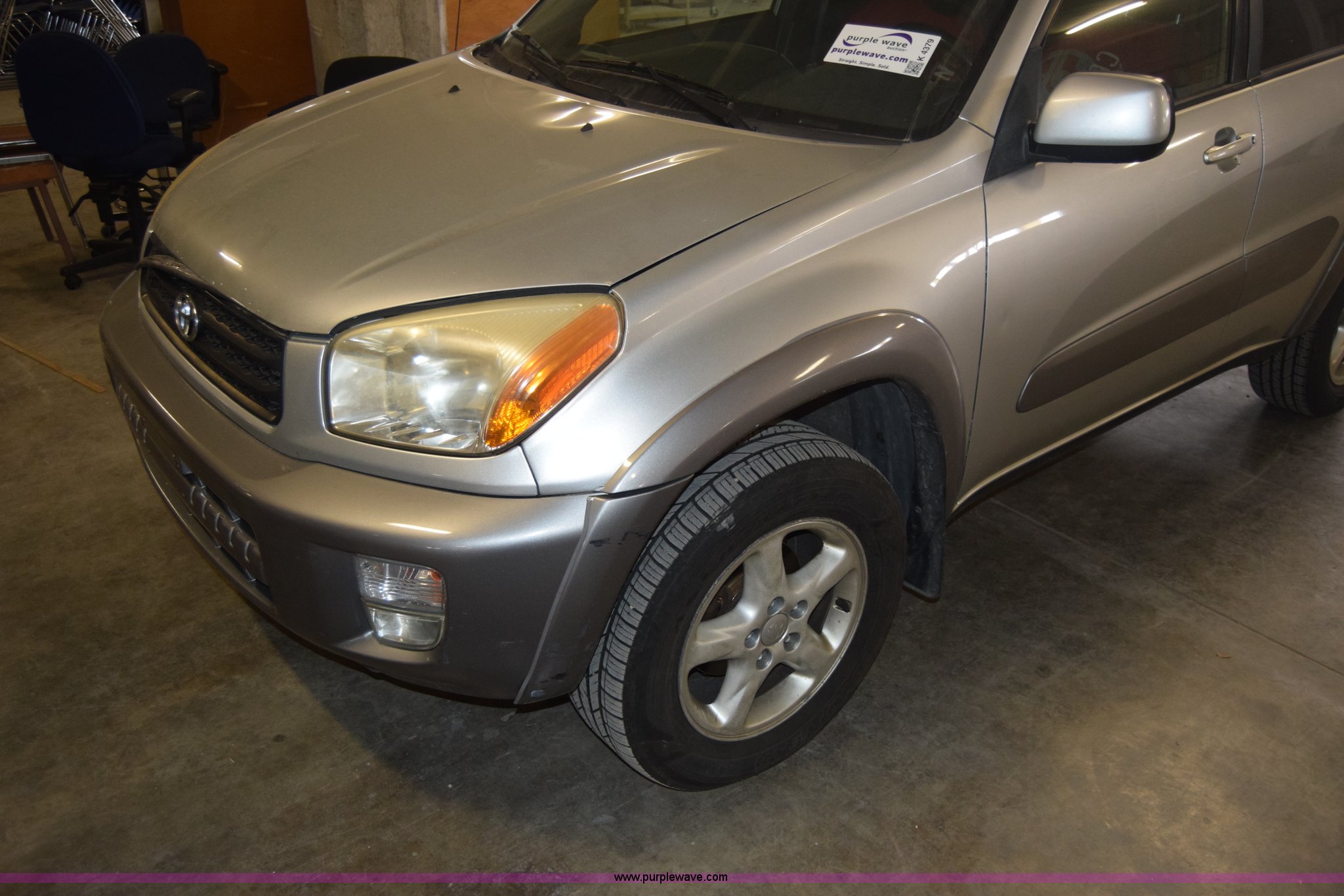 Purple Wave is selling a used Passenger Vehicle in Kansas. This item is a 2001 Toyota RAV4 SUV with the following: 302,178 miles on odometer, 2.0L L4 DOHC gas engine, Automatic transmission, AC and heat, AM/FM/CD, Power windows and locks, Cloth interior, 235/60R16 tires, Interior/exterior cosmetic damage, Dents and scratches