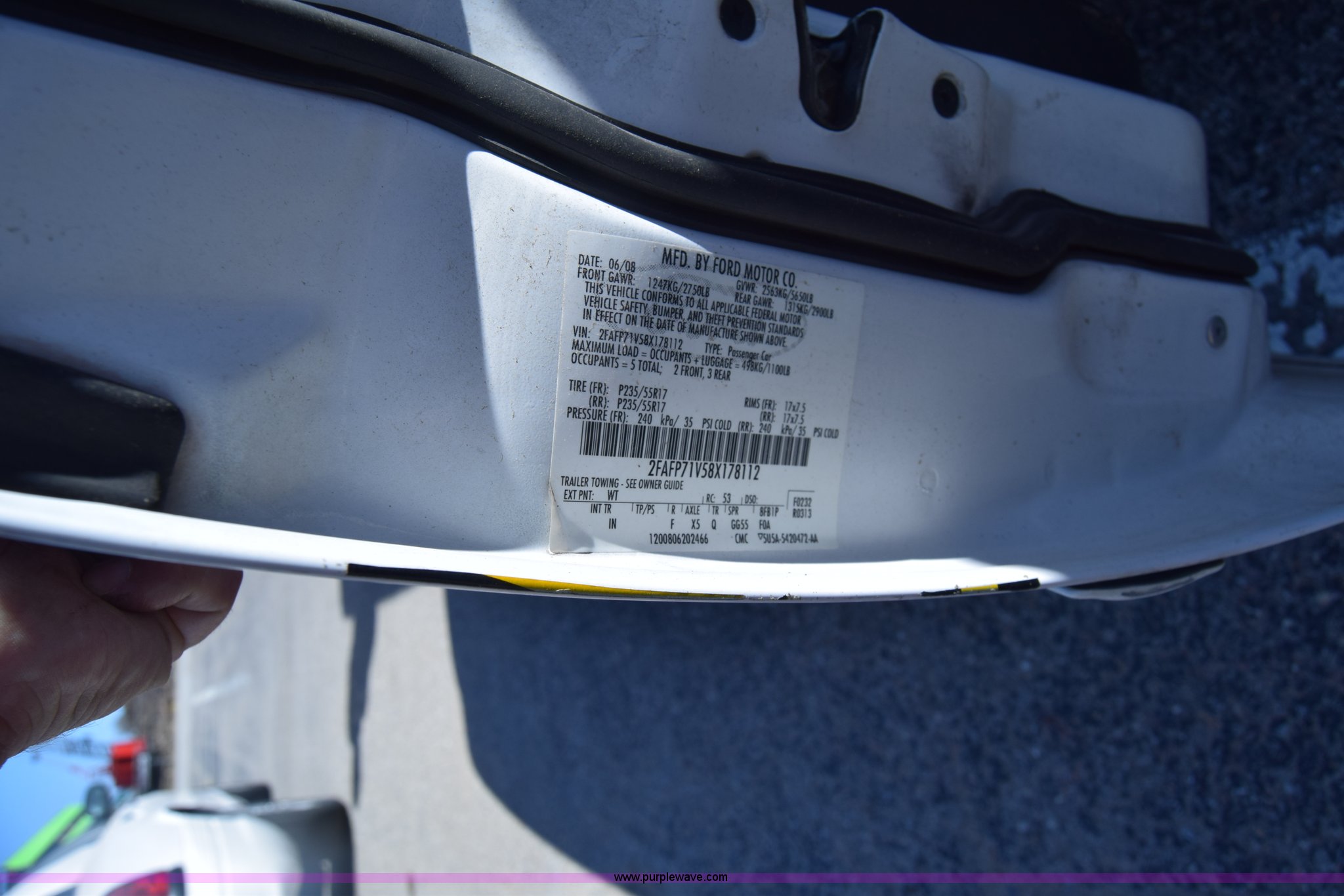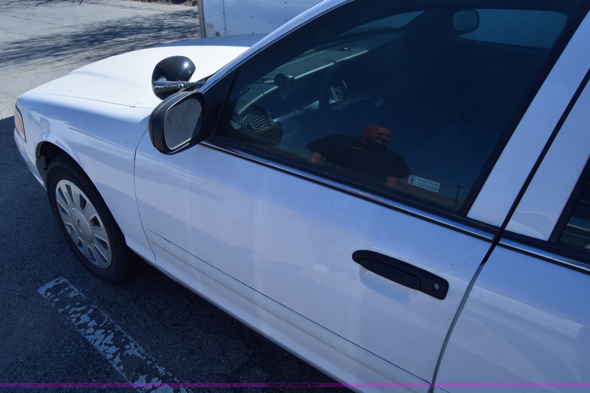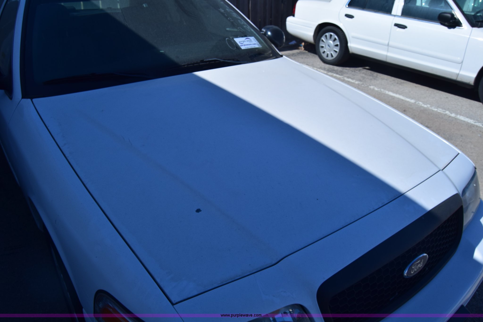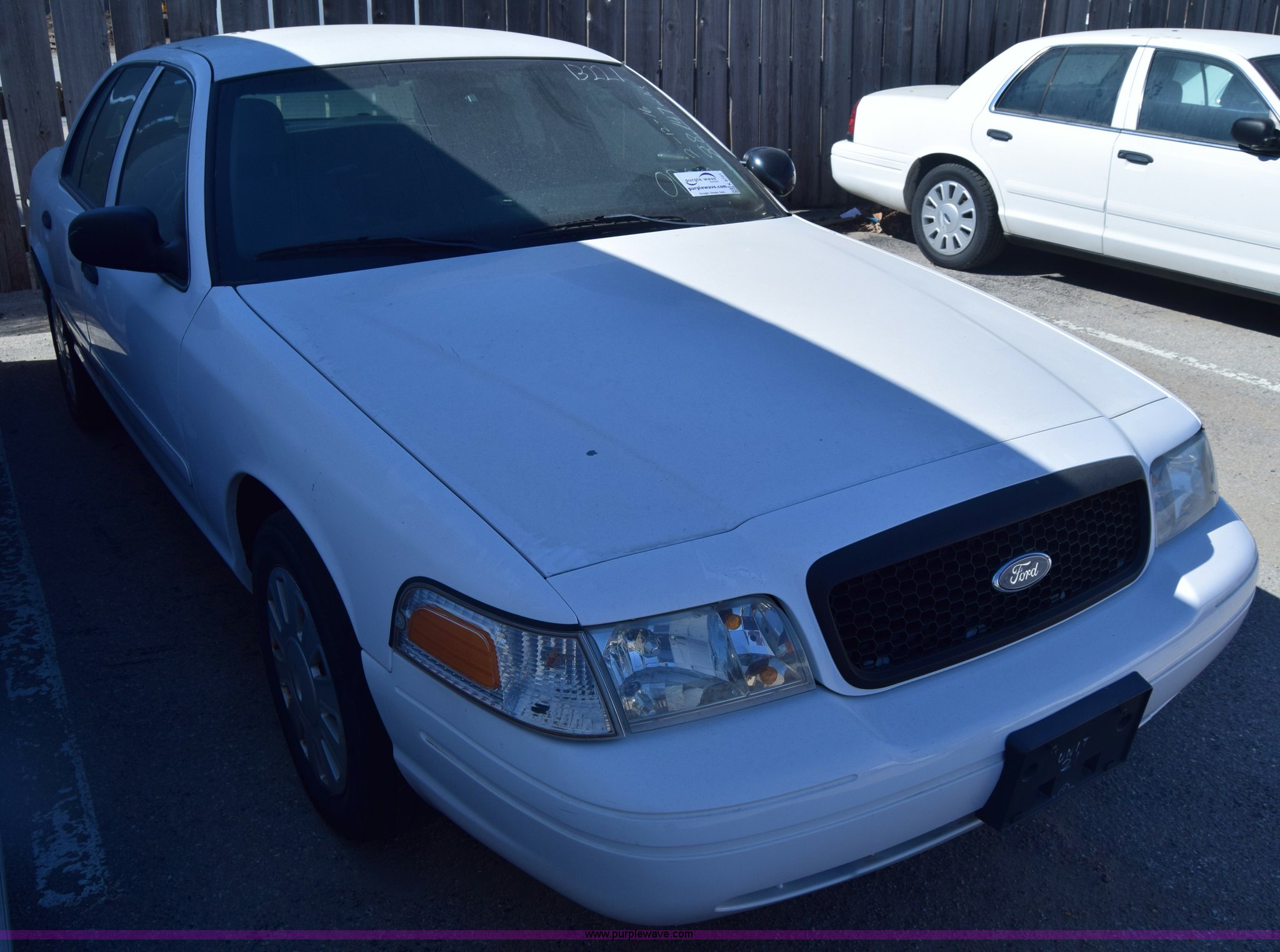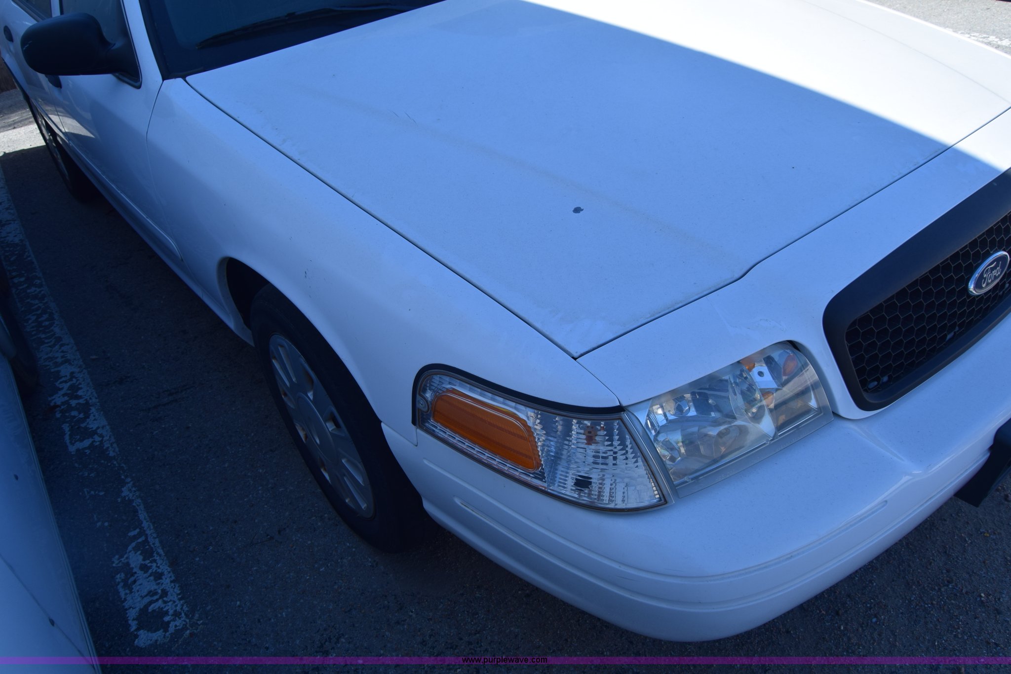 Purple Wave is selling a used Passenger Vehicle in Kansas. This item is a 2008 Ford Crown Victoria Police Interceptor with the following: Unknown miles on odometer, Odometer inoperable, 4.6L V8 SOHC 16V FFV gas engine, Automatic transmission, AC and heat, Tilt, Cruise, Power windows, locks, and mirrors, Cloth interior, 235/55R17 tires, Interior/exterior cosmetic damage, Dents, Scratches, Port holes, Weak battery, Stereo has been removed, Paint peeling