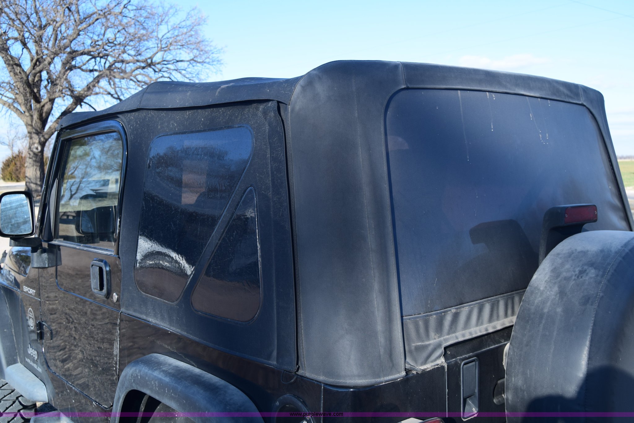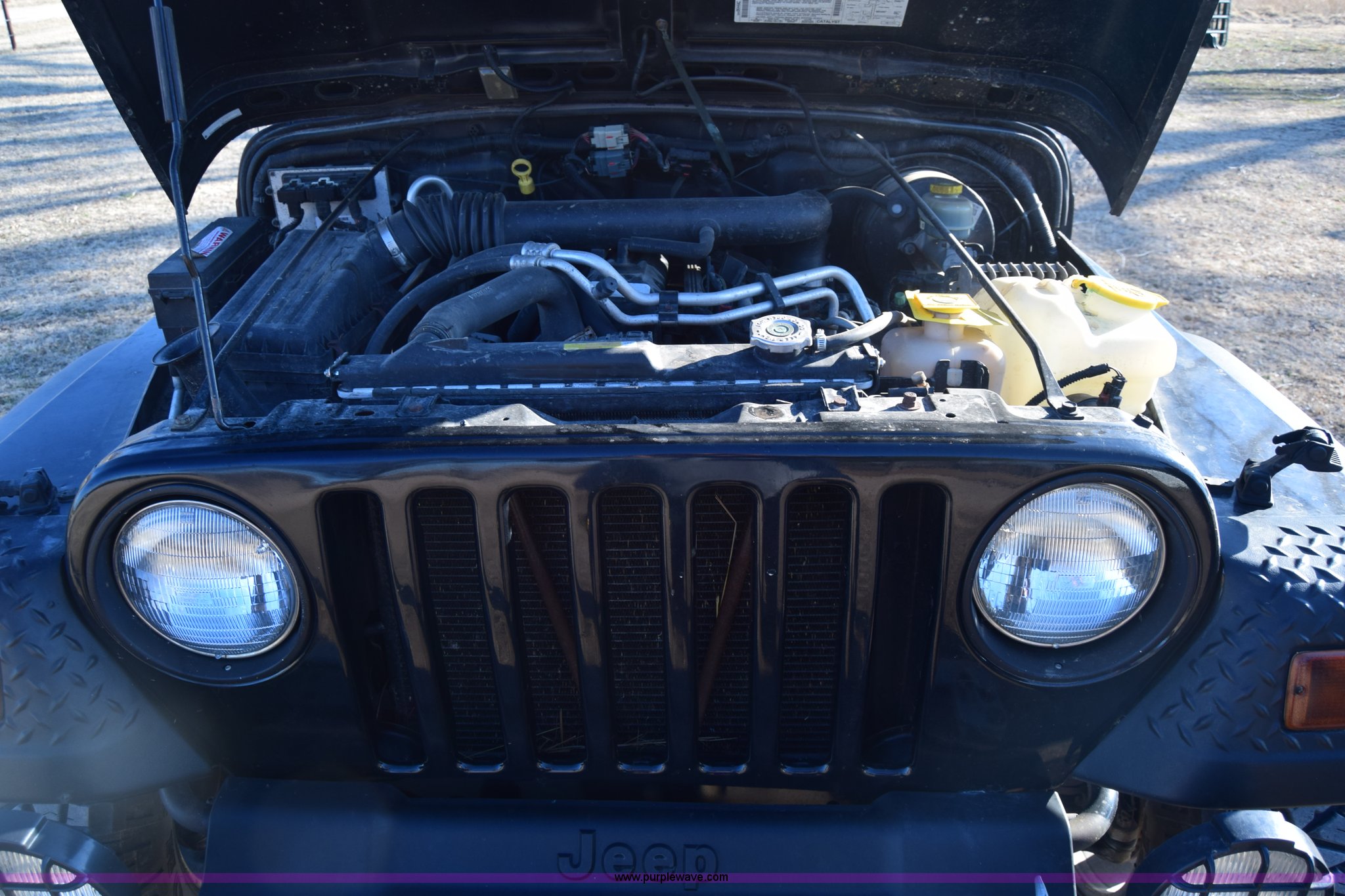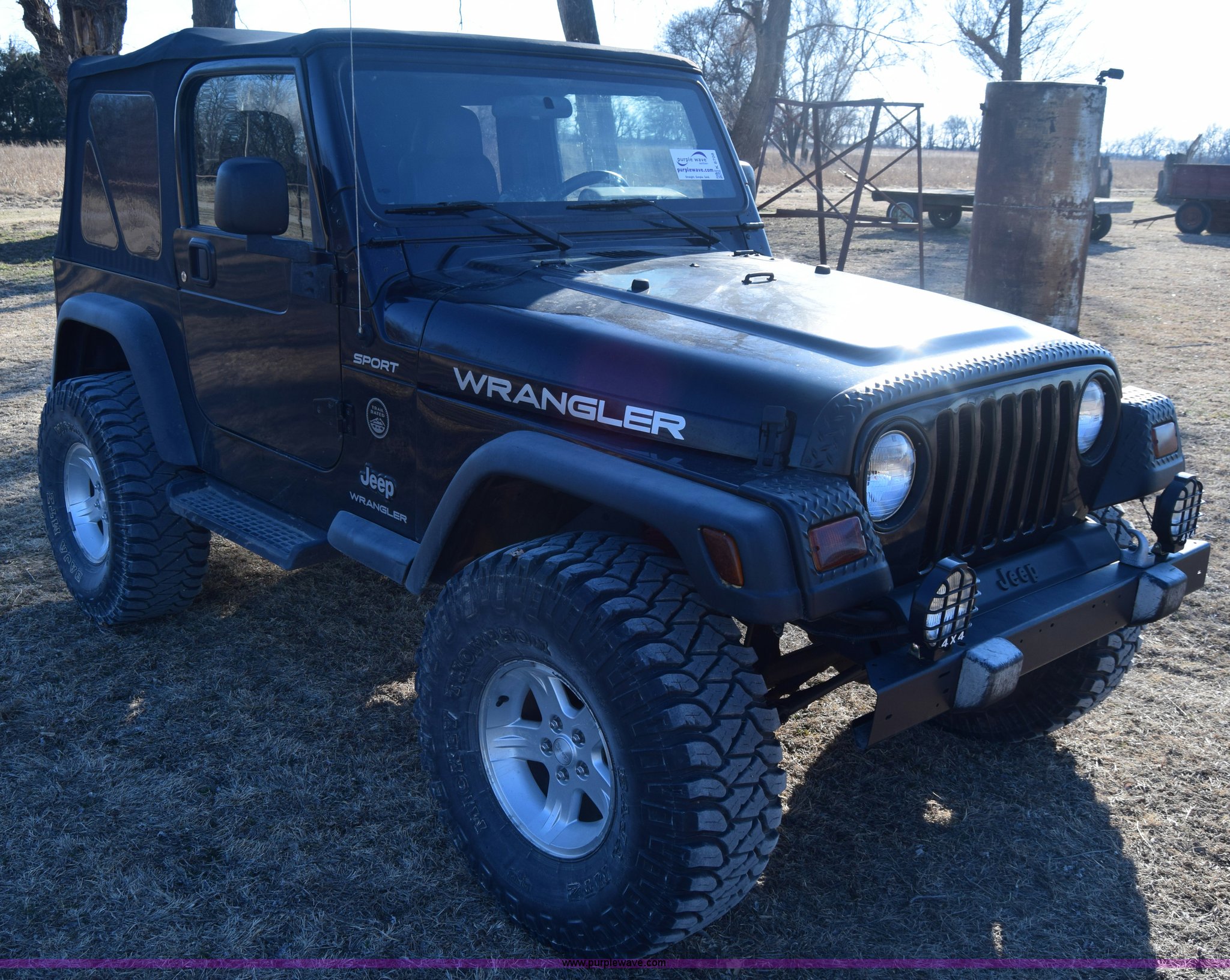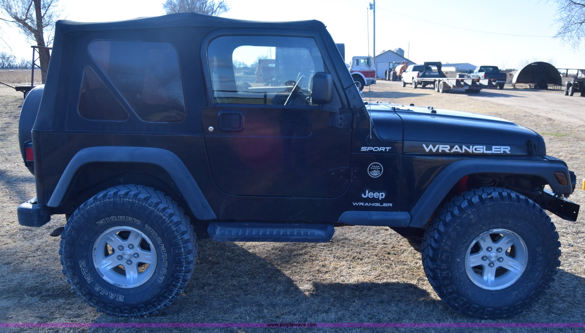 Purple Wave is selling a used Passenger Vehicle in Kansas. This item is a 2003 Jeep Wrangler Sport SUV with the following: 96,875 miles on odometer, 4.0L L6 OHV 12V gas engine, Automatic transmission, Four wheel drive, AC and heat, AM/FM/CD, Manual windows and locks, Vinyl interior, Fog lights, 353x12.50R15LT tires