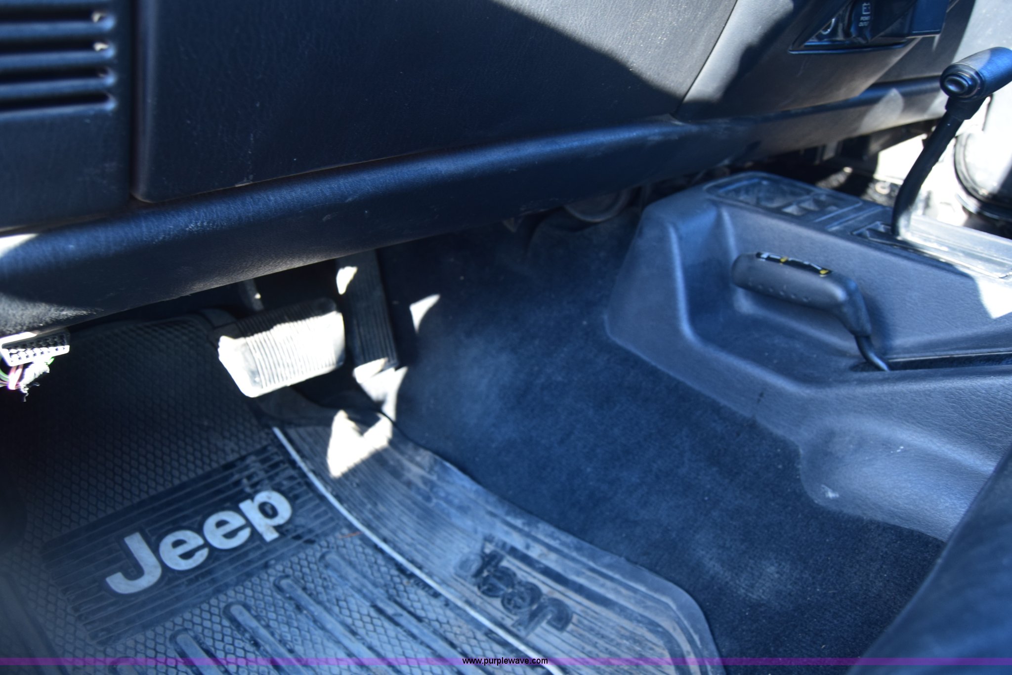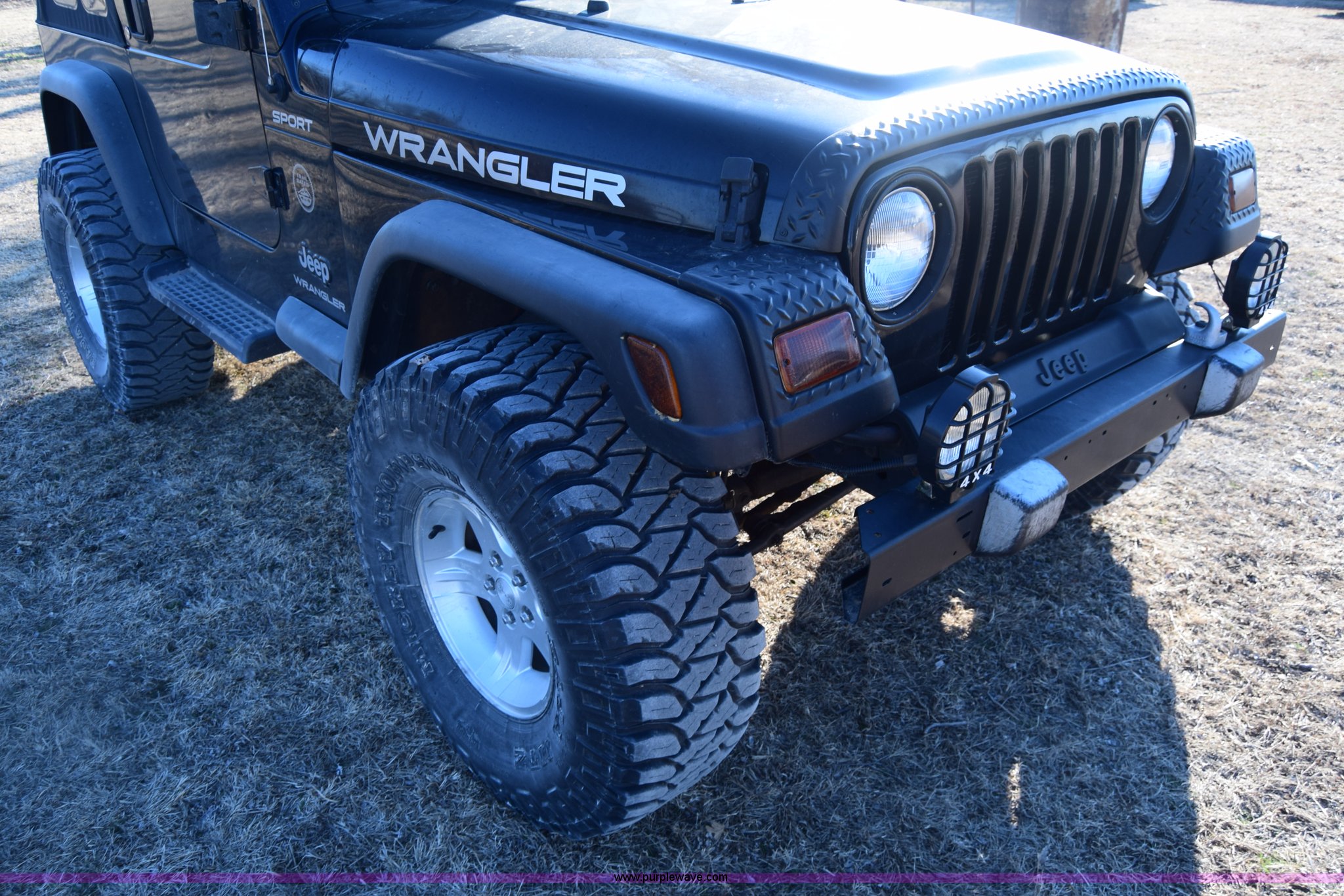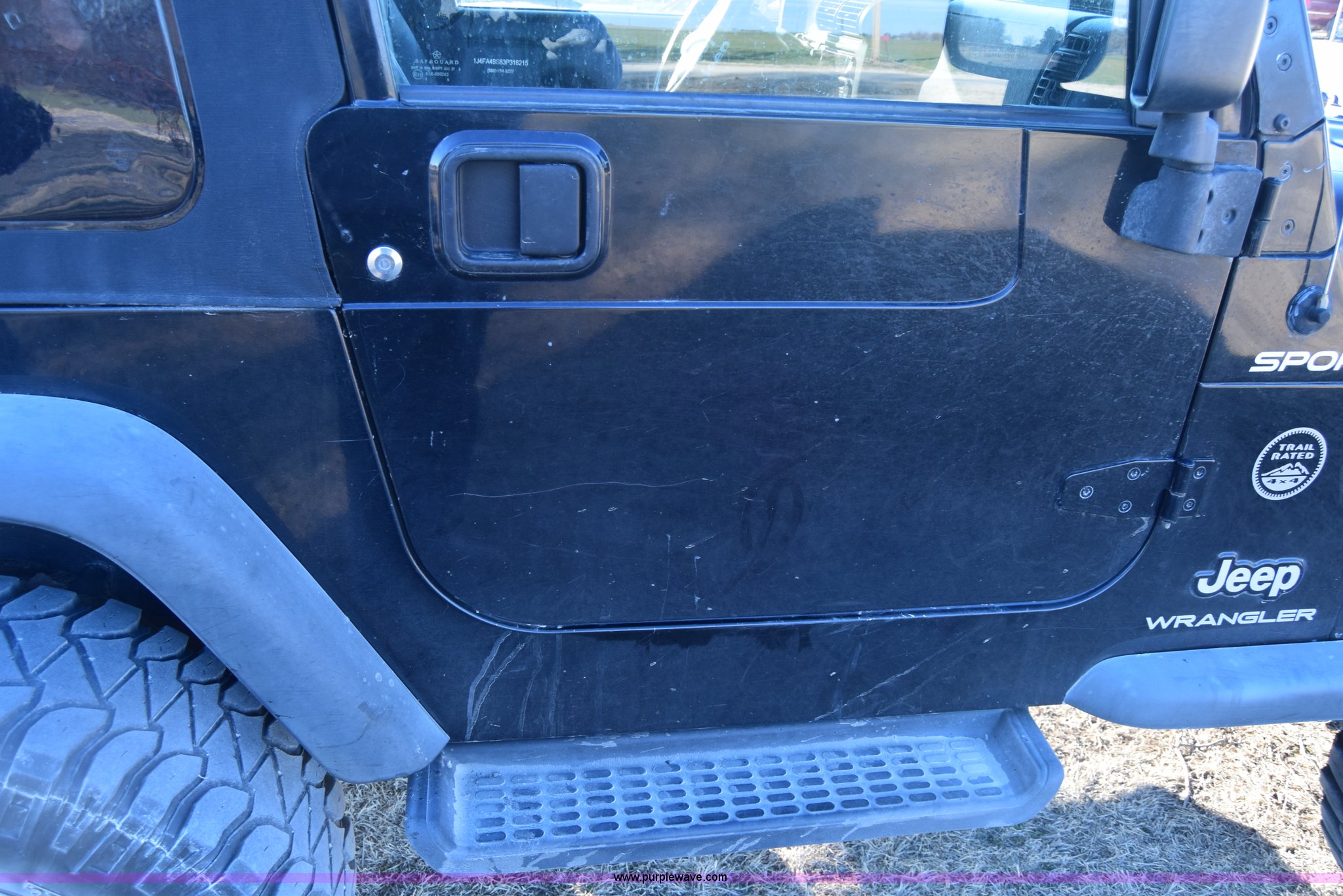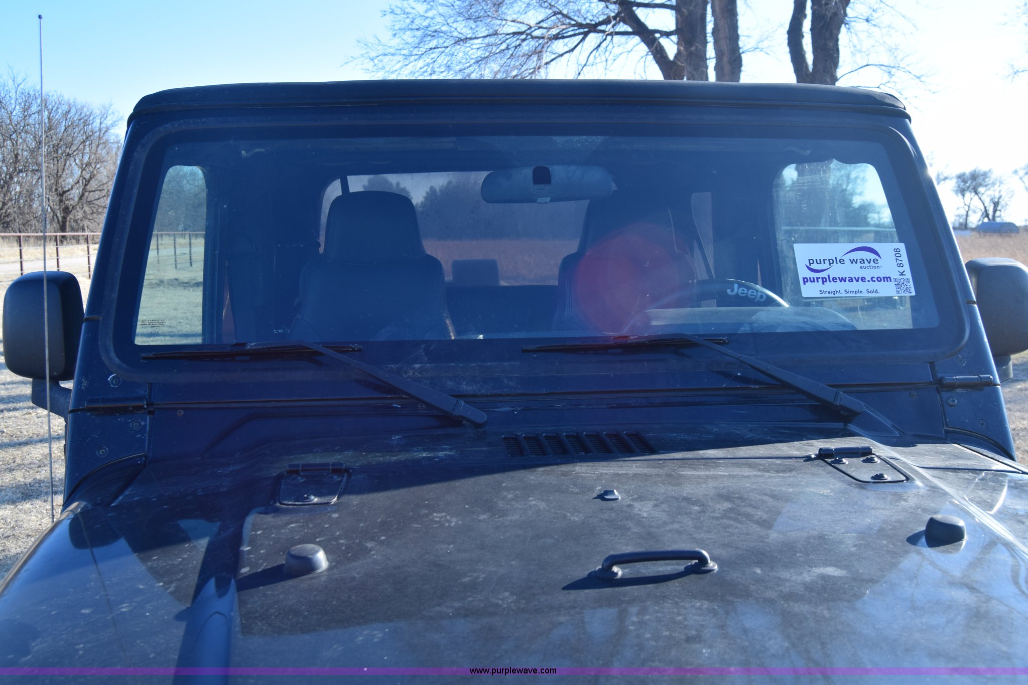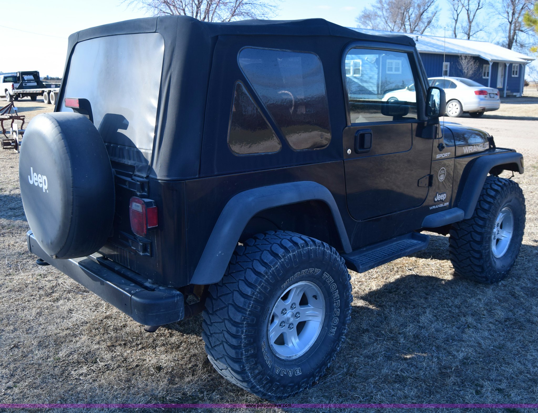Purple Wave is selling a used Passenger Vehicle in Kansas. This item is a 2003 Jeep Wrangler Sport SUV with the following: 96,875 miles on odometer, 4.0L L6 OHV 12V gas engine, Automatic transmission, Four wheel drive, AC and heat, AM/FM/CD, Manual windows and locks, Vinyl interior, Fog lights, 353x12.50R15LT tires
