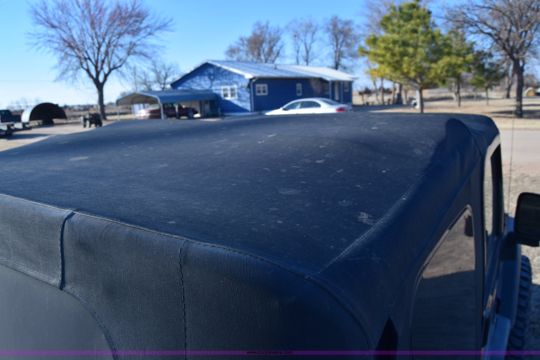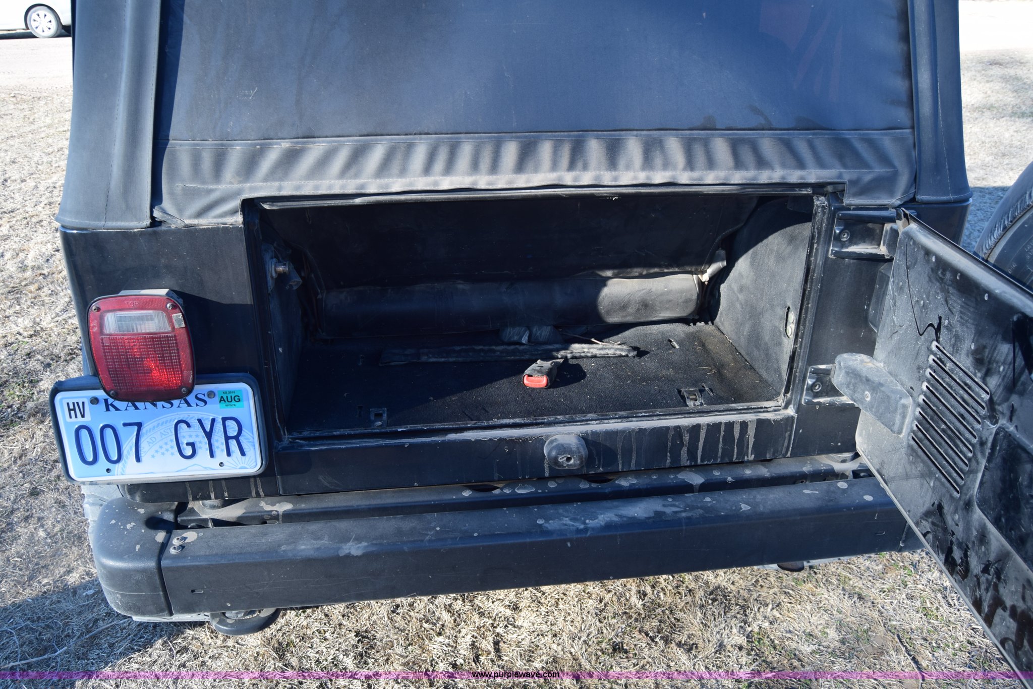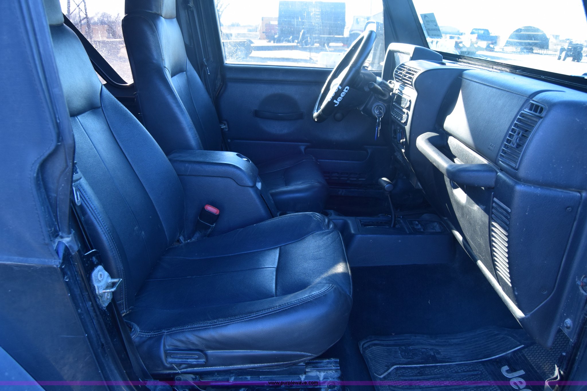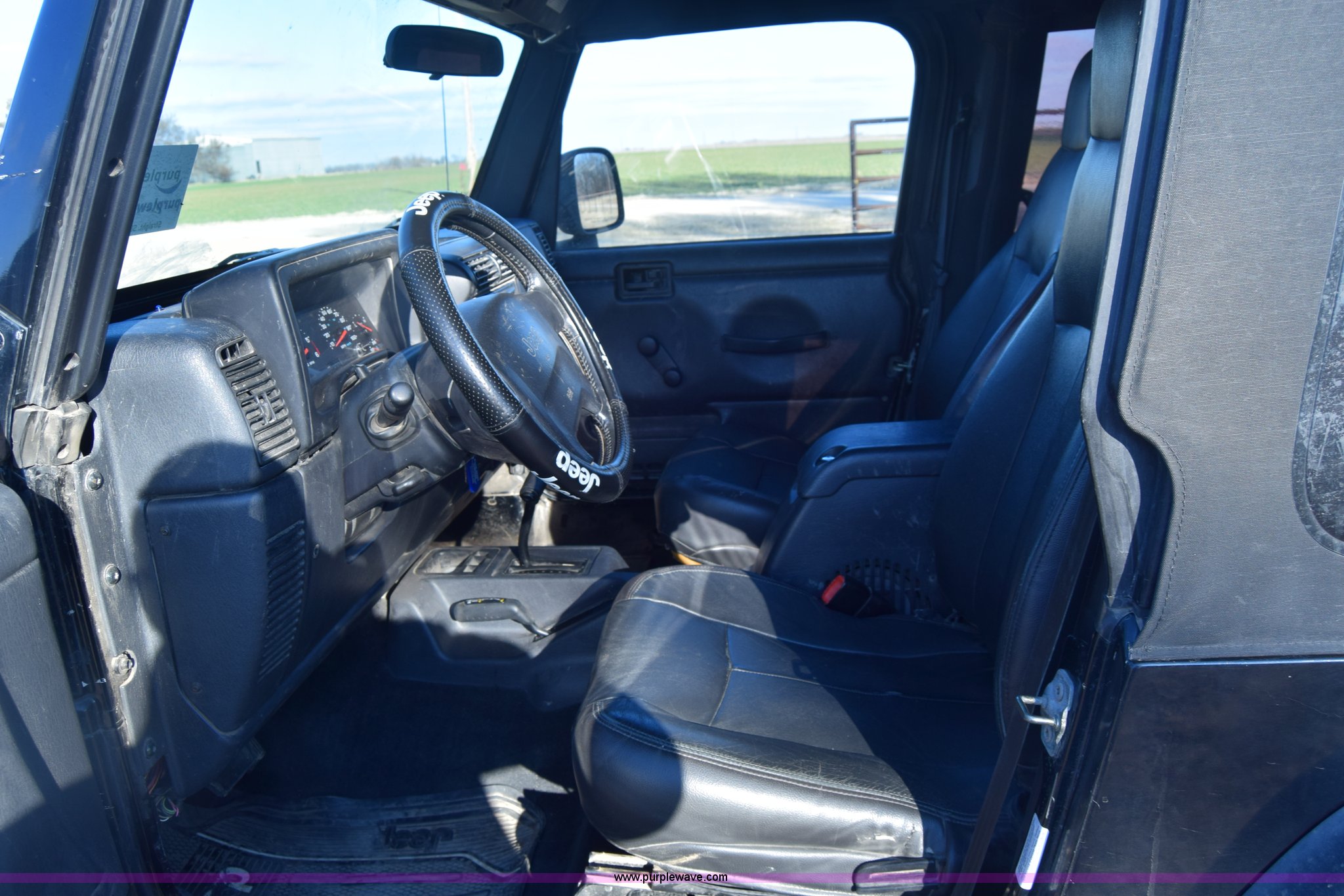 Purple Wave is selling a used Passenger Vehicle in Kansas. This item is a 2003 Jeep Wrangler Sport SUV with the following: 96,875 miles on odometer, 4.0L L6 OHV 12V gas engine, Automatic transmission, Four wheel drive, AC and heat, AM/FM/CD, Manual windows and locks, Vinyl interior, Fog lights, 353x12.50R15LT tires