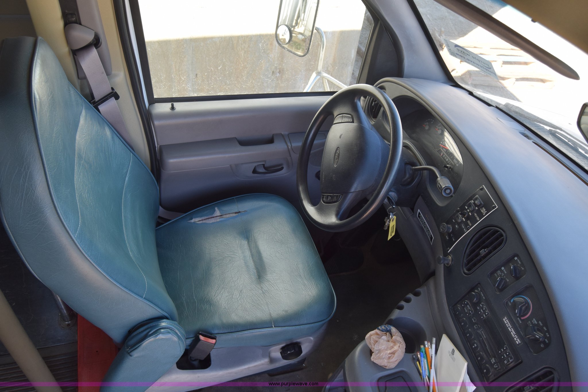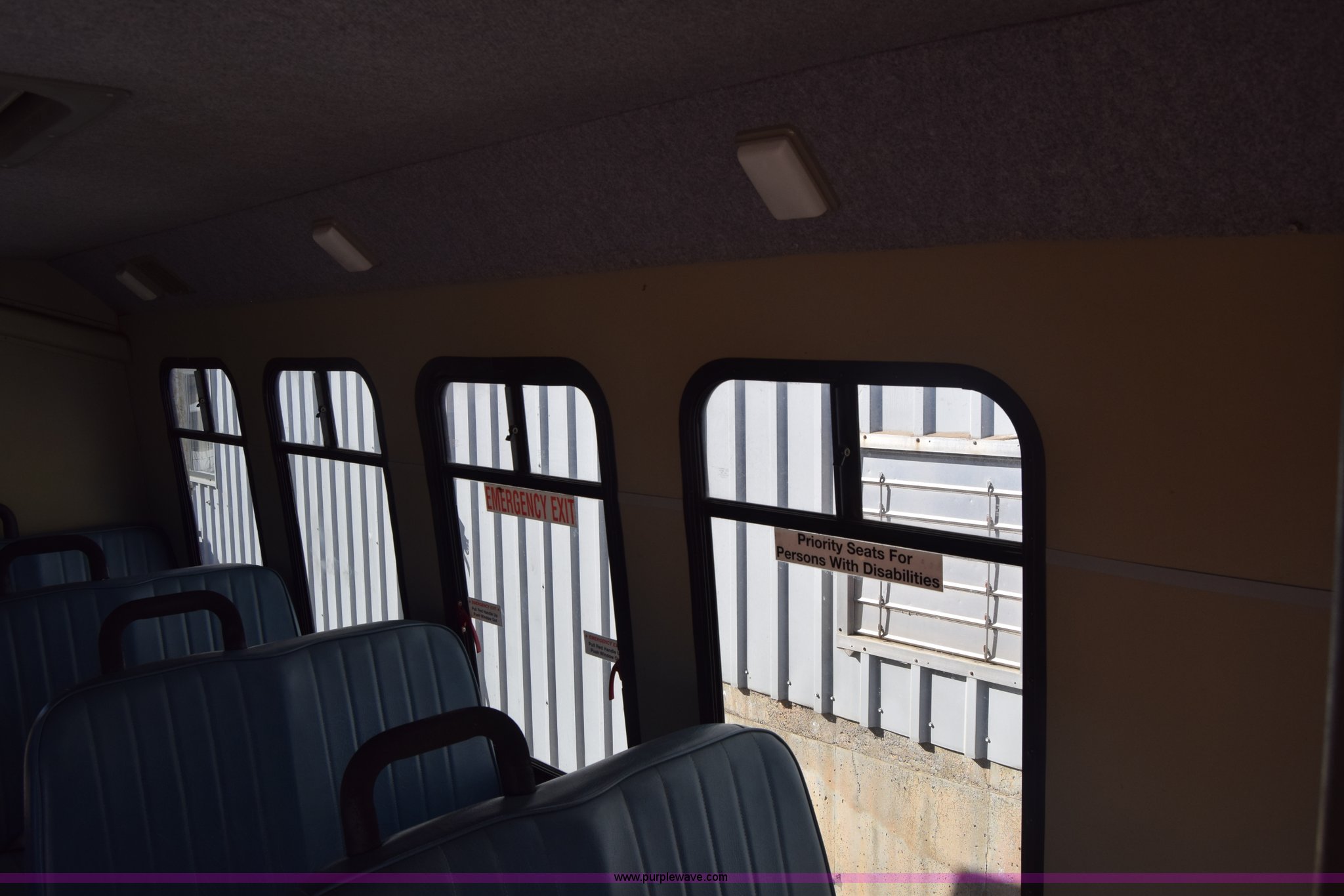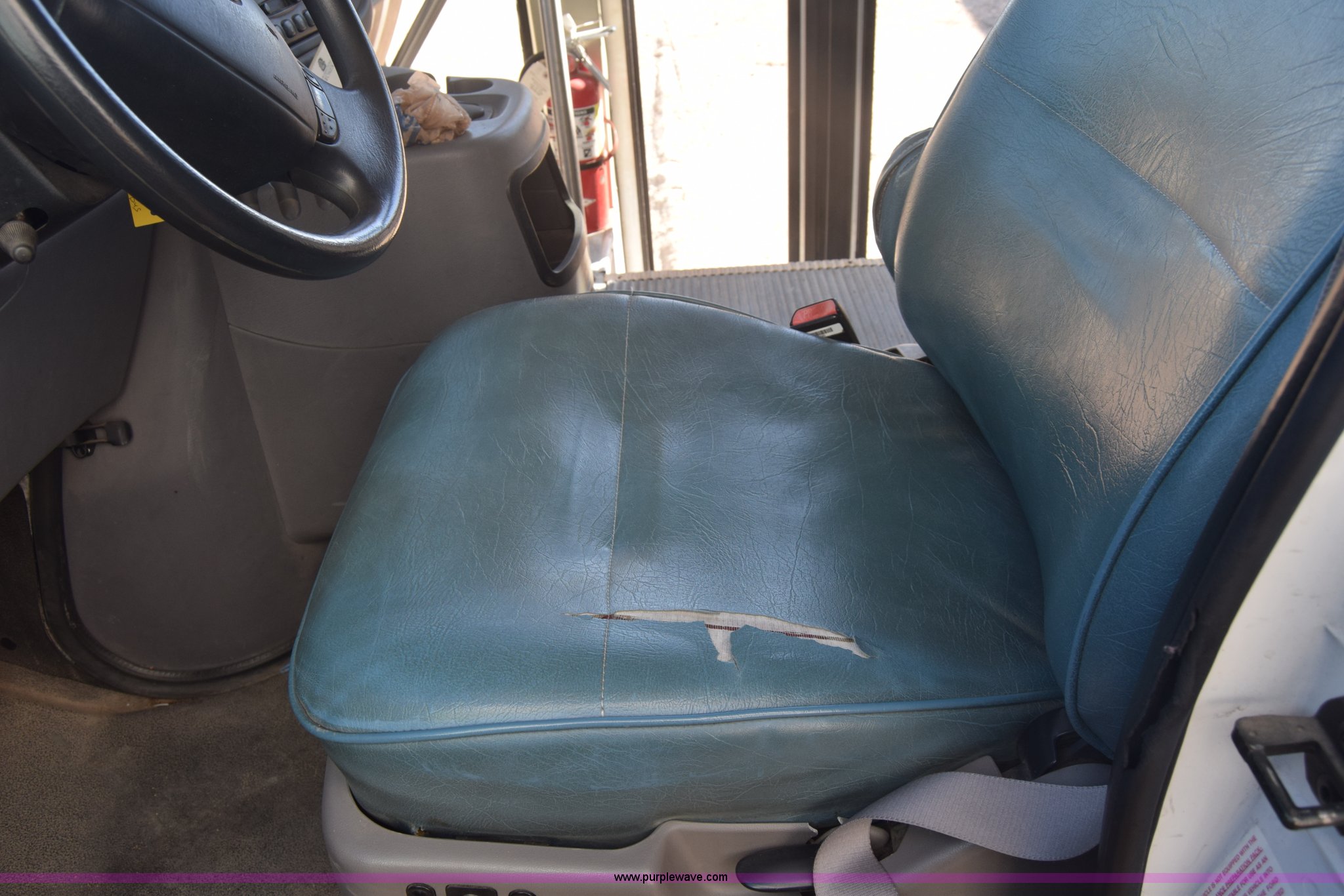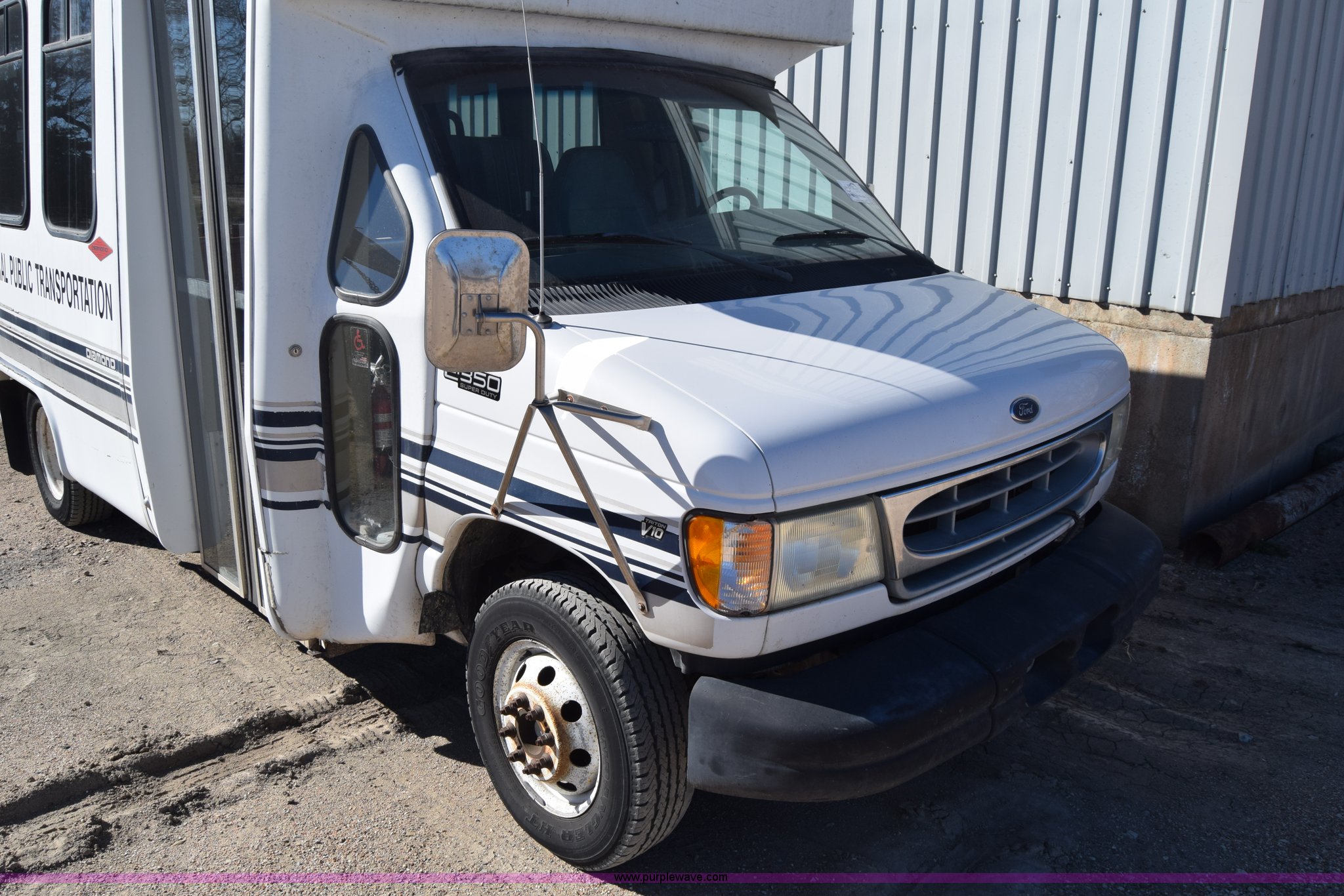 Purple Wave is selling a used Bus in Kansas. This item is a 2002 Ford 800 Diamond bus with the following: 149,304 miles on odometer, 6.8L V10 SOHC 20V gas engine, Automatic transmission, Heat, Tilt, Cruise, AM/FM/cassette, Manual windows and locks, 12 passenger capacity, Wheelchair lift, Rear, ceiling, and side egress, Carrier AC unit, 9'4" bus height, 225/75R16 tires, Interior/exterior cosmetic damage