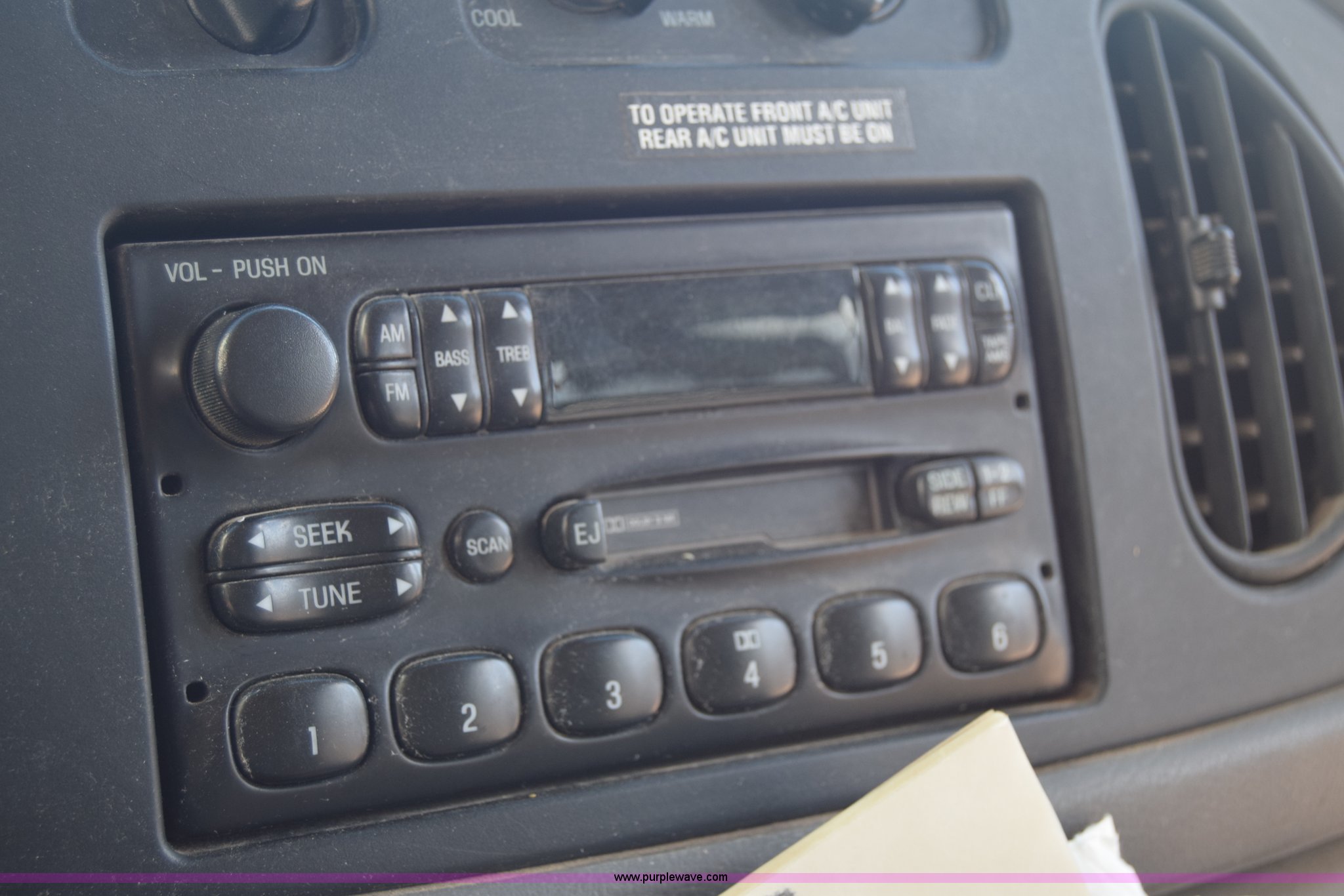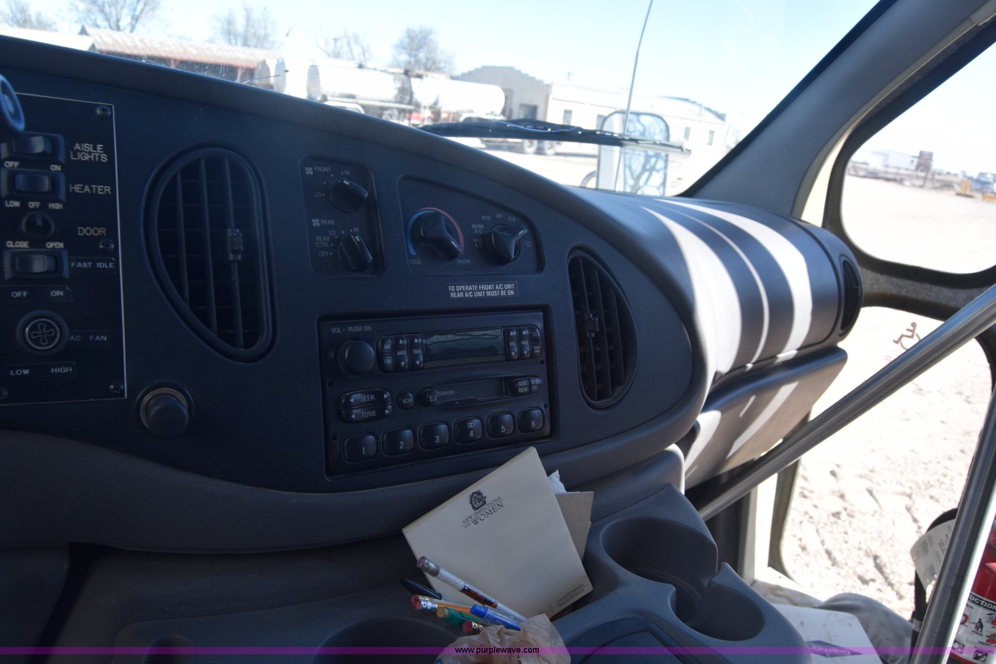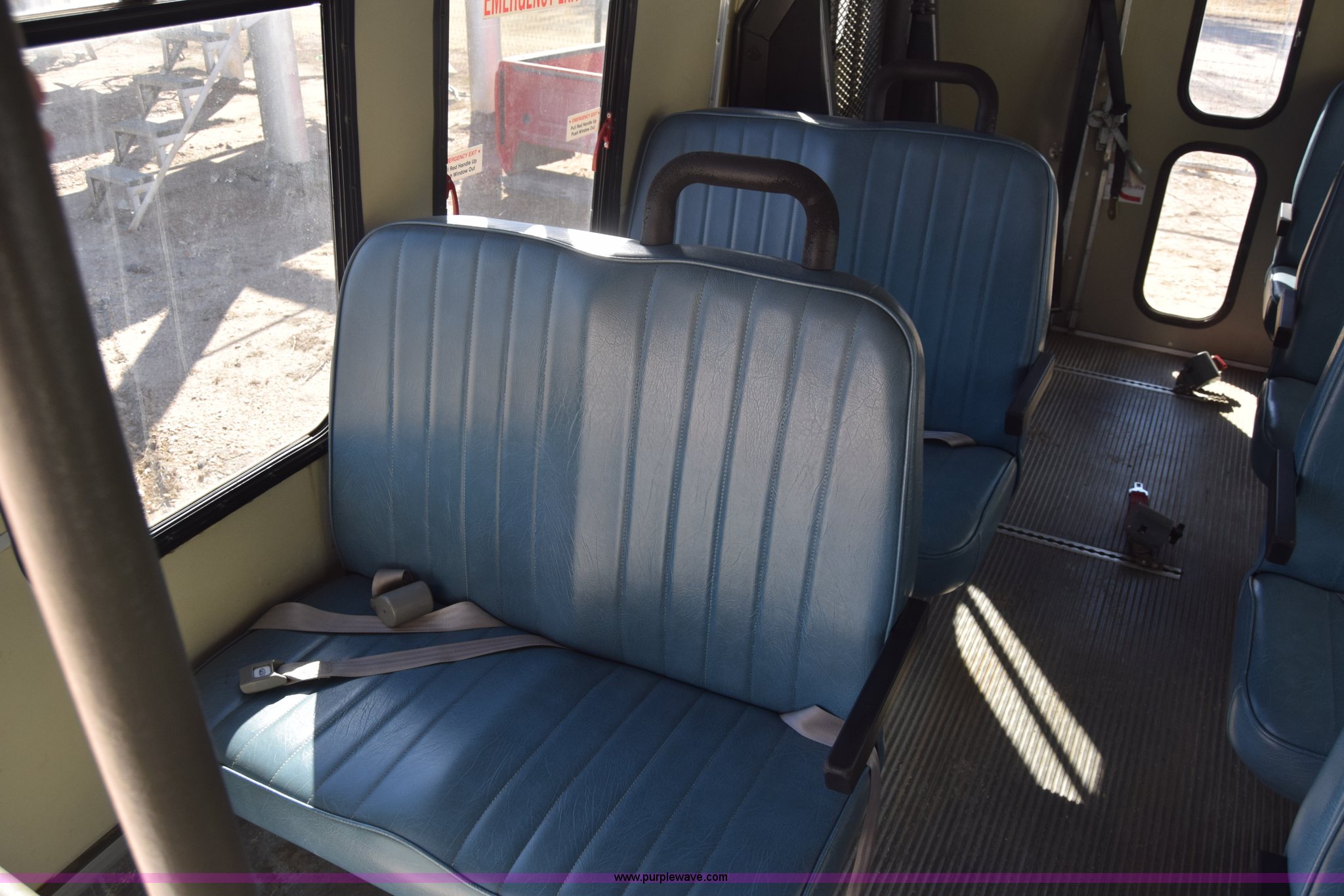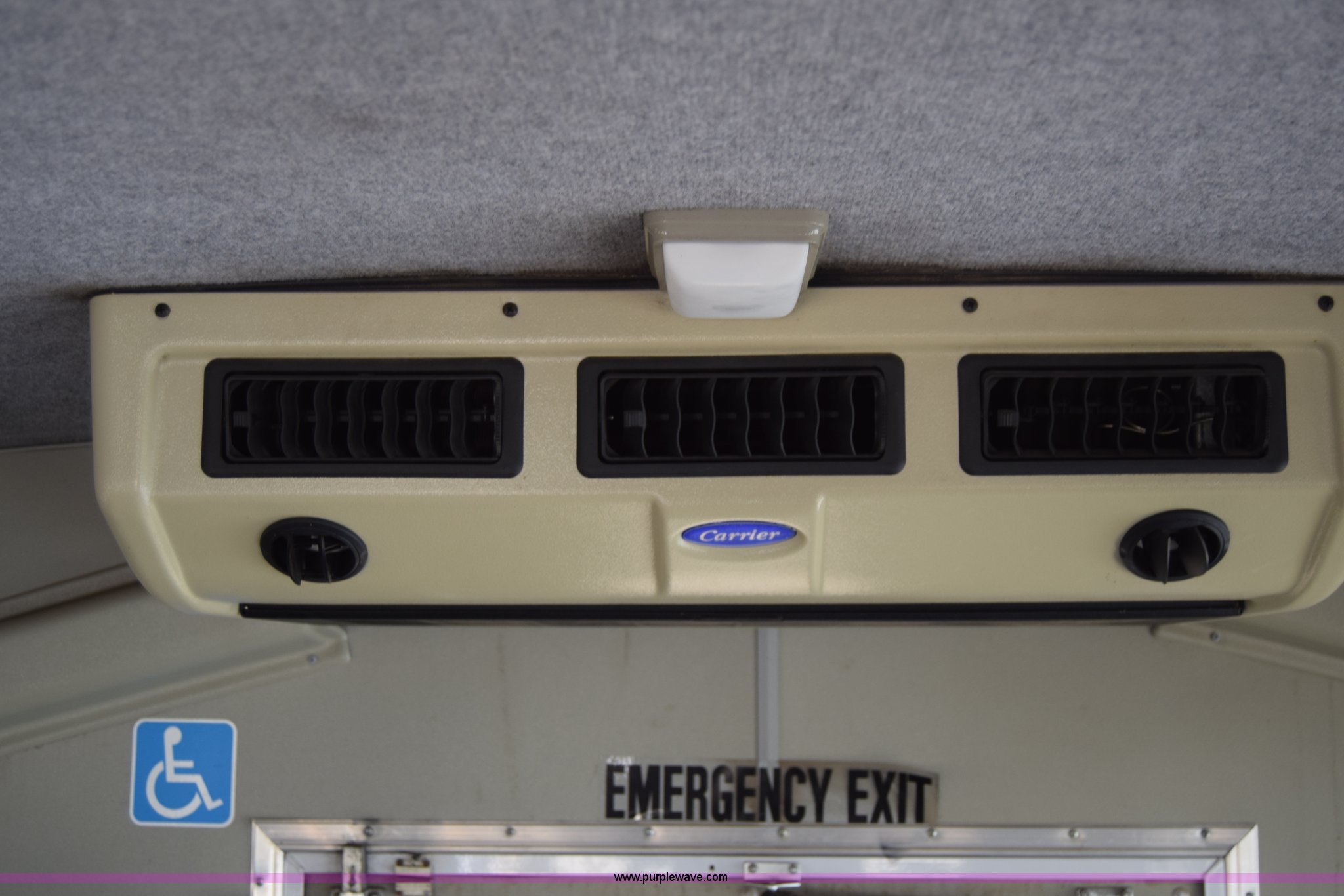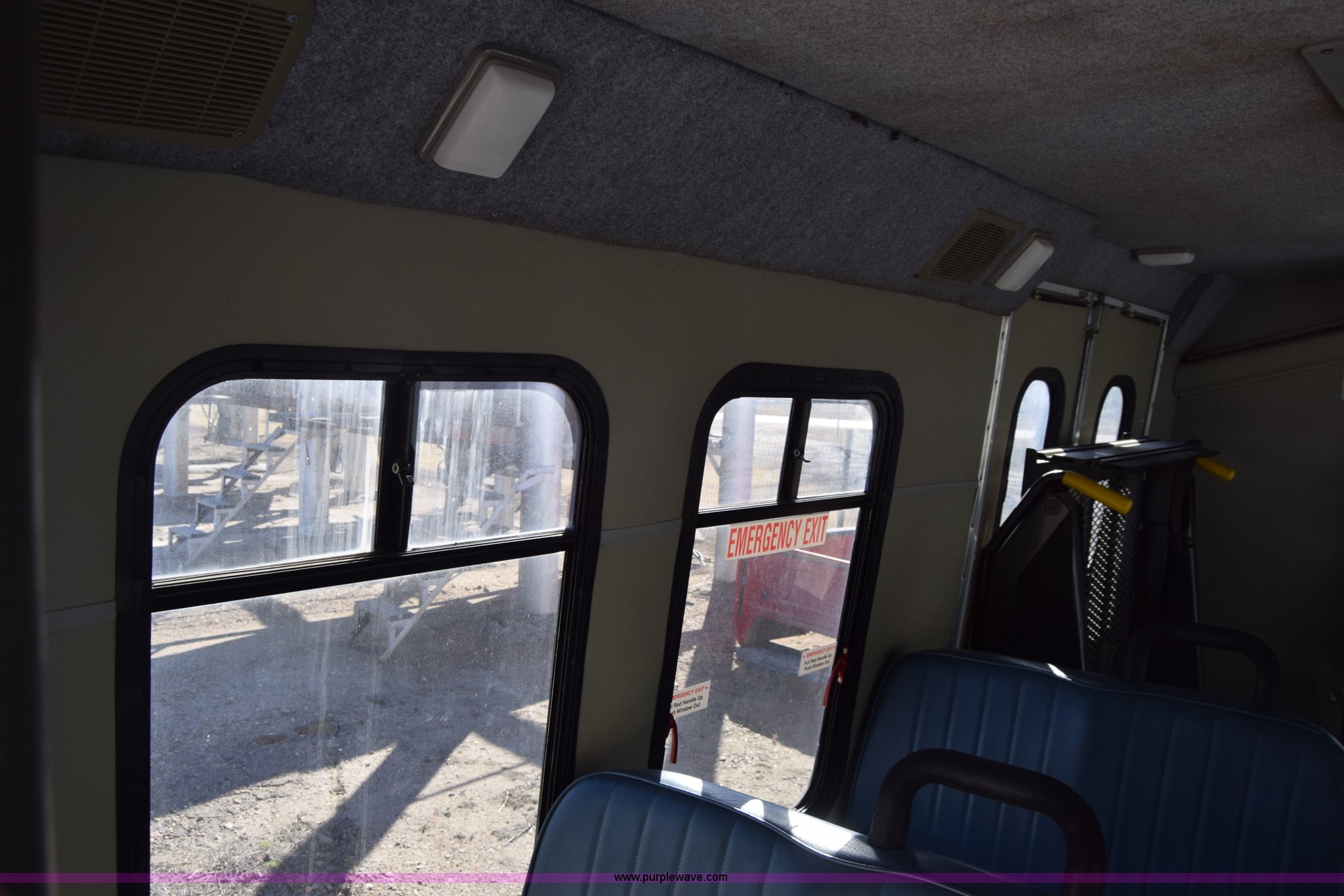 Purple Wave is selling a used Bus in Kansas. This item is a 2002 Ford 800 Diamond bus with the following: 149,304 miles on odometer, 6.8L V10 SOHC 20V gas engine, Automatic transmission, Heat, Tilt, Cruise, AM/FM/cassette, Manual windows and locks, 12 passenger capacity, Wheelchair lift, Rear, ceiling, and side egress, Carrier AC unit, 9'4" bus height, 225/75R16 tires, Interior/exterior cosmetic damage