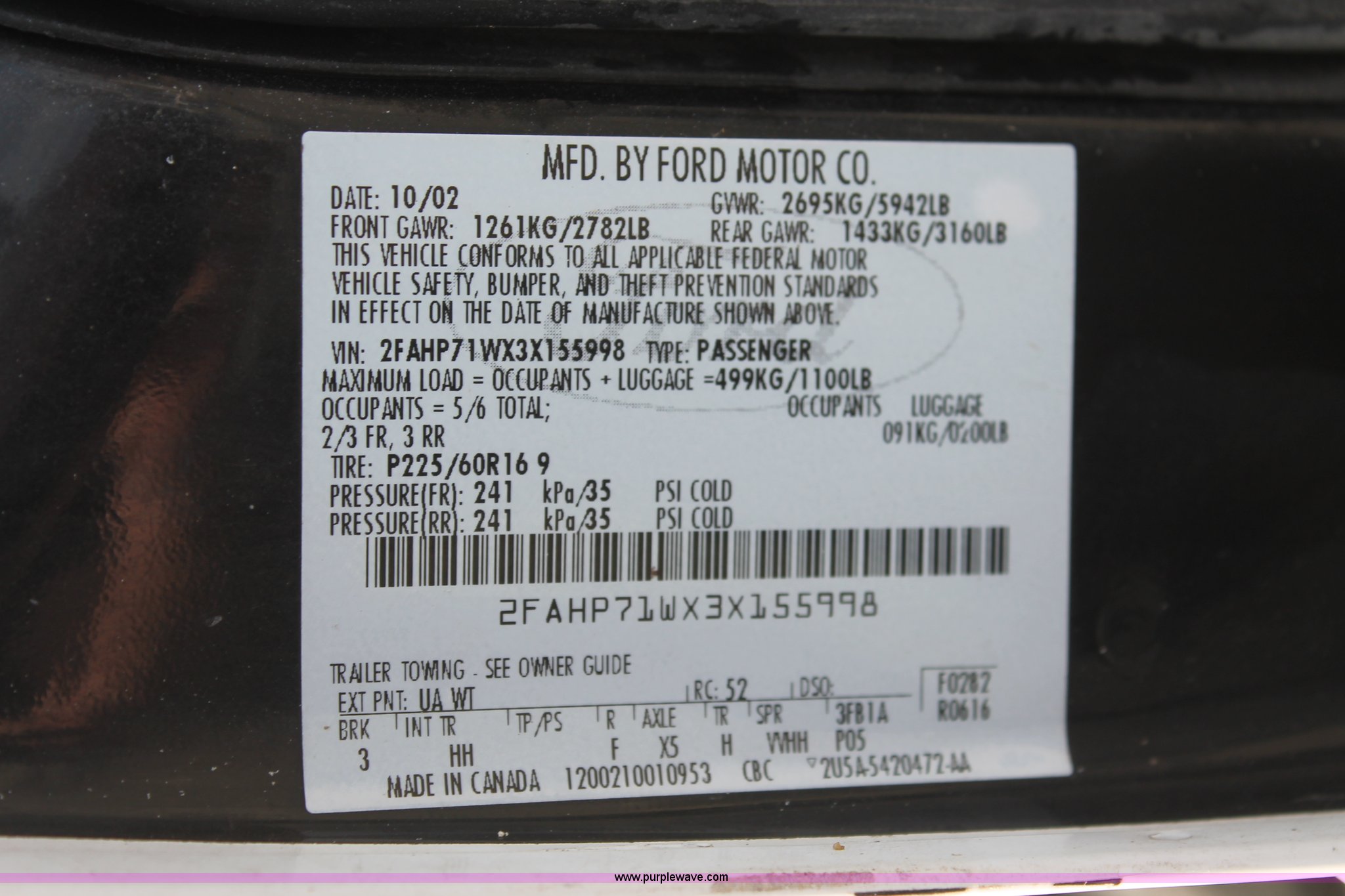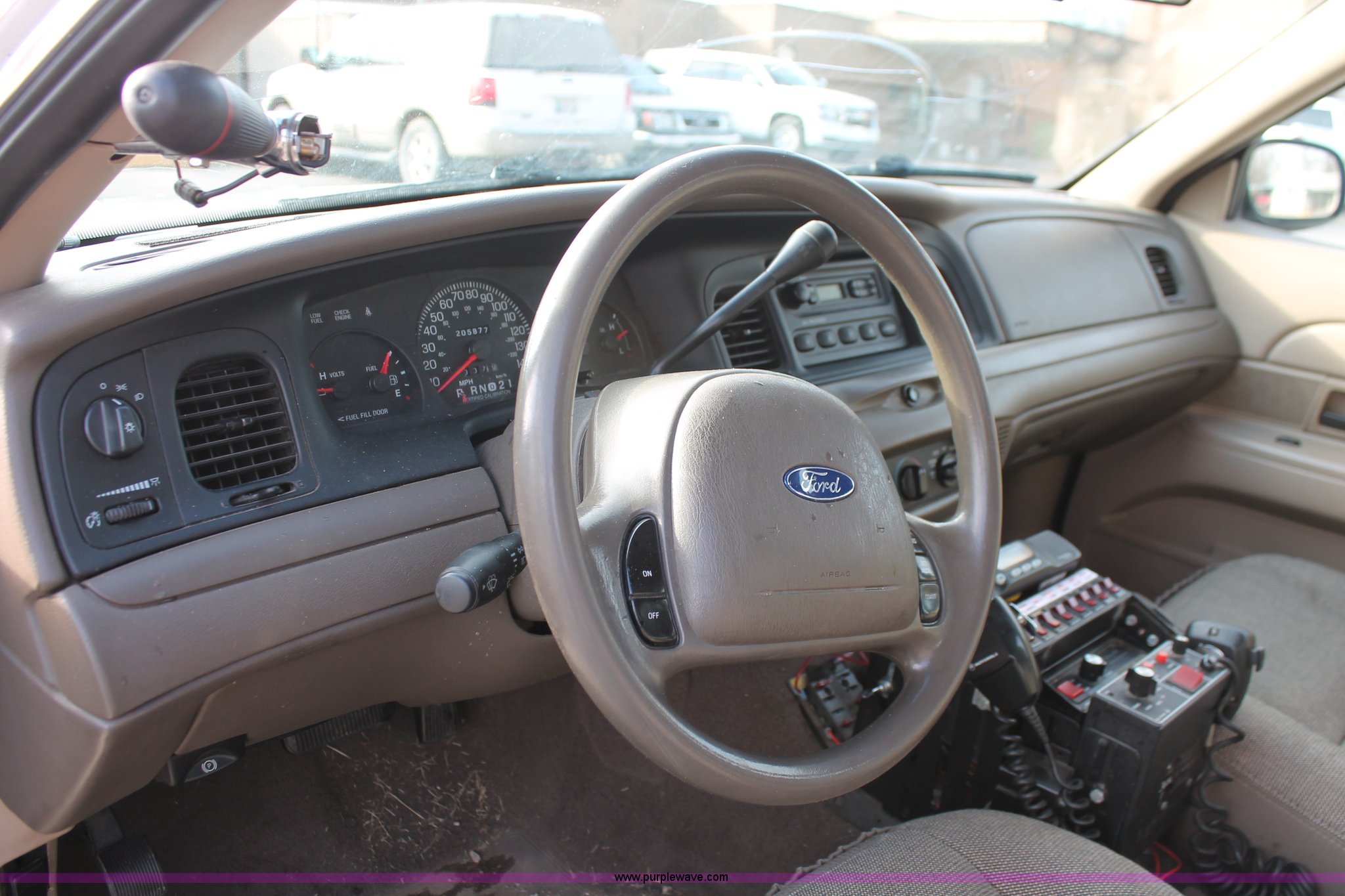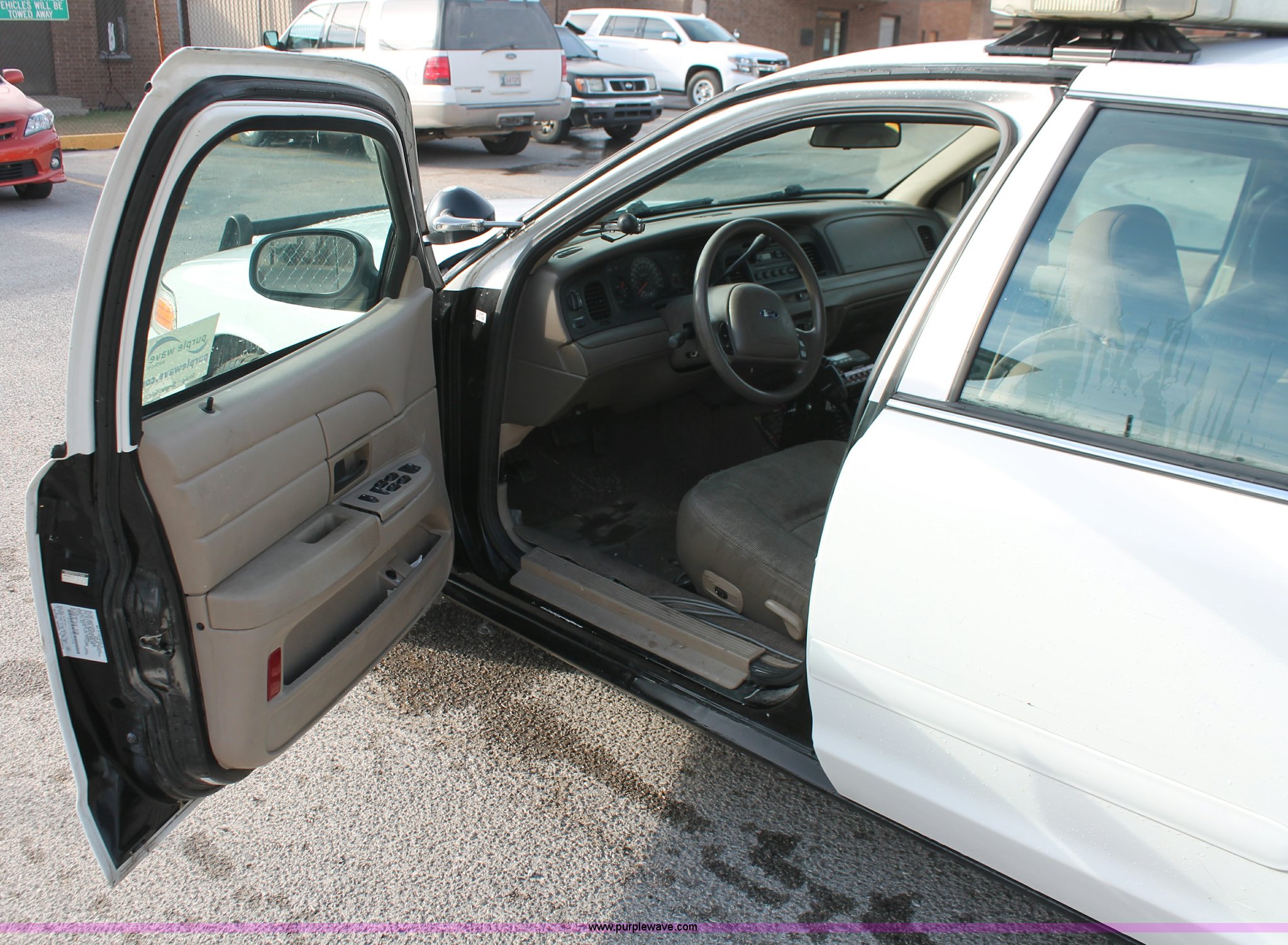 Purple Wave is selling a used Passenger Vehicle in Oklahoma. This item is a 2003 Ford Crown Victoria Police Interceptor with the following: 205,877 miles on odometer, 4.6L V8 SOHC 16V gas engine, Automatic transmission, AC and heat, Cruise, AM/FM, Power windows, locks, mirrors, and seat, Cloth interior, Rhino brush guard, P235/55R17 tires, Radio and lights are not included, Windshield cracked, Unit# HC50-B6-331-17