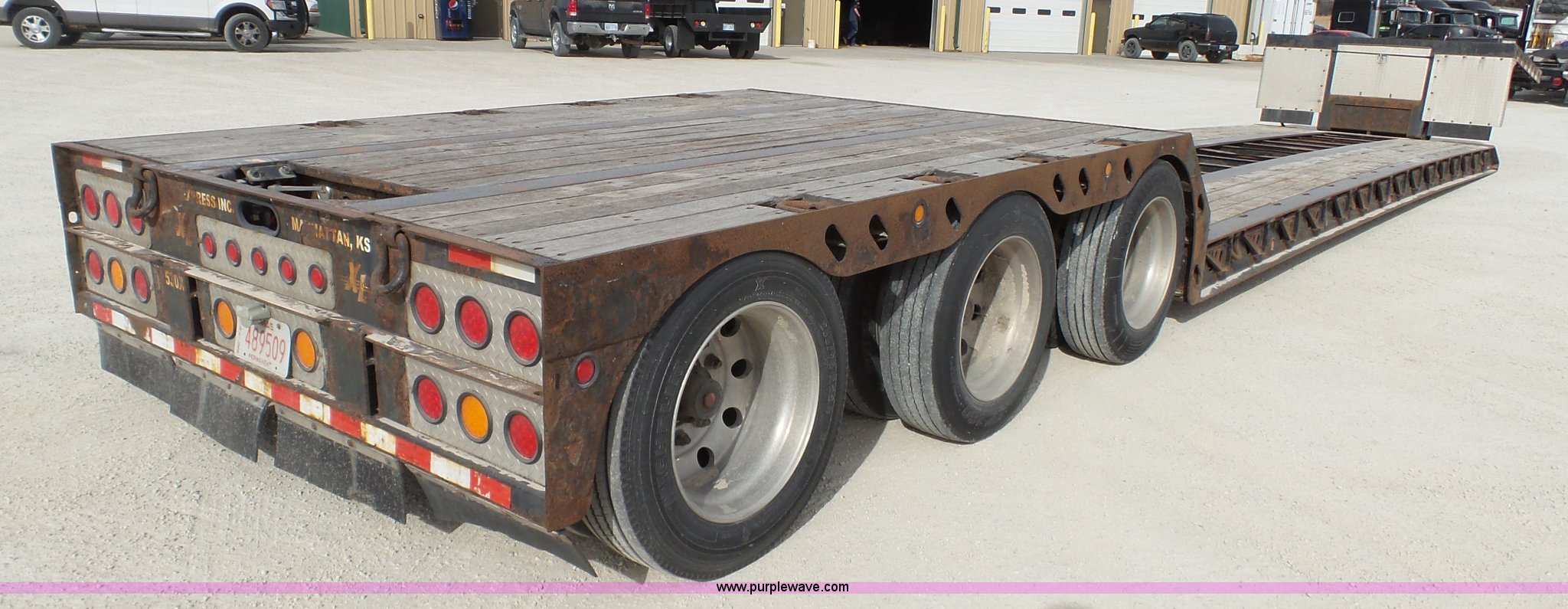 Purple Wave is selling a used Equip. Trailer in Kansas. This item is a 2008 XL Specialized XL80MFG double drop deck equipment trailer with the following: 53'L x 102"W, 9.6'L top deck, 30'L well, 12'L rear deck, Steel outriggers, Detachable neck, Wood deck, D-rings, Fifth wheel plate, Dual leg landing gear, Air up/air down third axle, Air suspension, Air brakes, Triple axle, Aluminum wheels, 255/70R22.5 tires, GVWR 98,880 lbs, GAWR 20,280 lbs, Maintenance records available