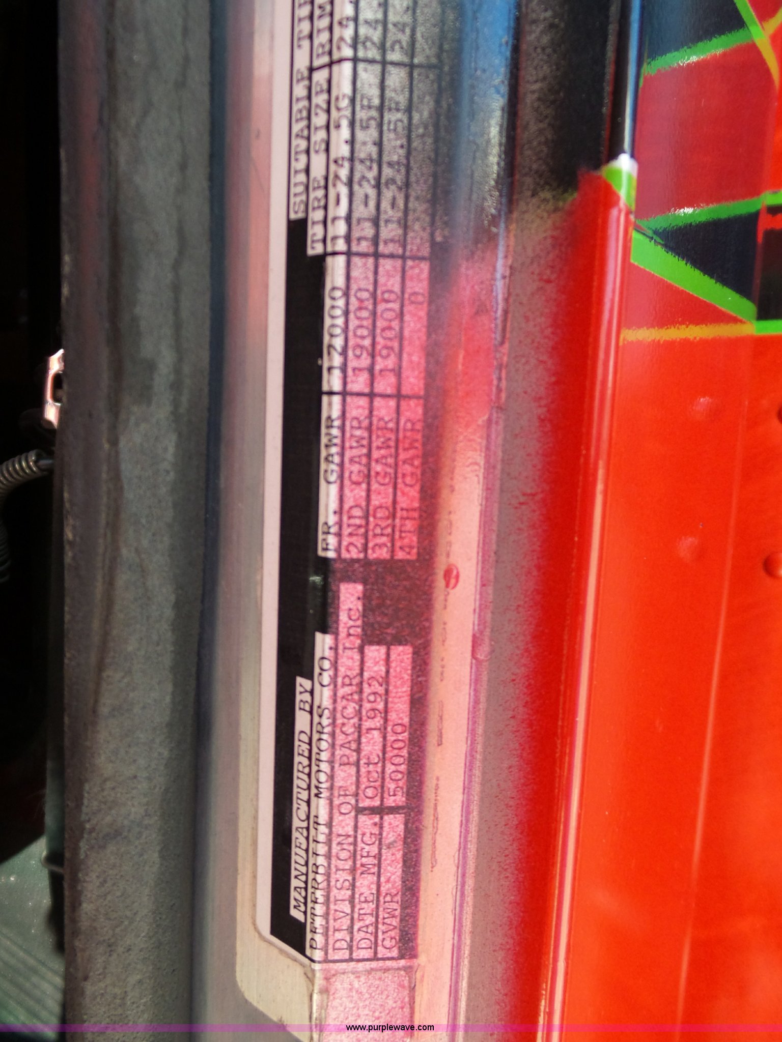 Purple Wave is selling a used Truck Tractor in Texas. This item is a 1993 Peterbilt 379 semi truck with the following: 2,096,498 miles on odometer, Caterpillar 3406 14.6L L6 turbo diesel engine, 13 speed manual transmission, Triple axle, AC and heat, Tilt, AM/FM/CD, Heated mirrors, Air suspension seat, Sleeper, Single bed, Storage cabinets, Hanging closet, Exterior visor, Dual exhaust stacks, Aluminum deck plate, Sliding fifth wheel plate, Dual fuel tanks, Air suspension, Air brakes, 295/75R22.5 tires, GVWR 50,000 lbs, FAWR 12,000 lbs, IAWR 19,000 lbs, RAWR 19,000 lbs