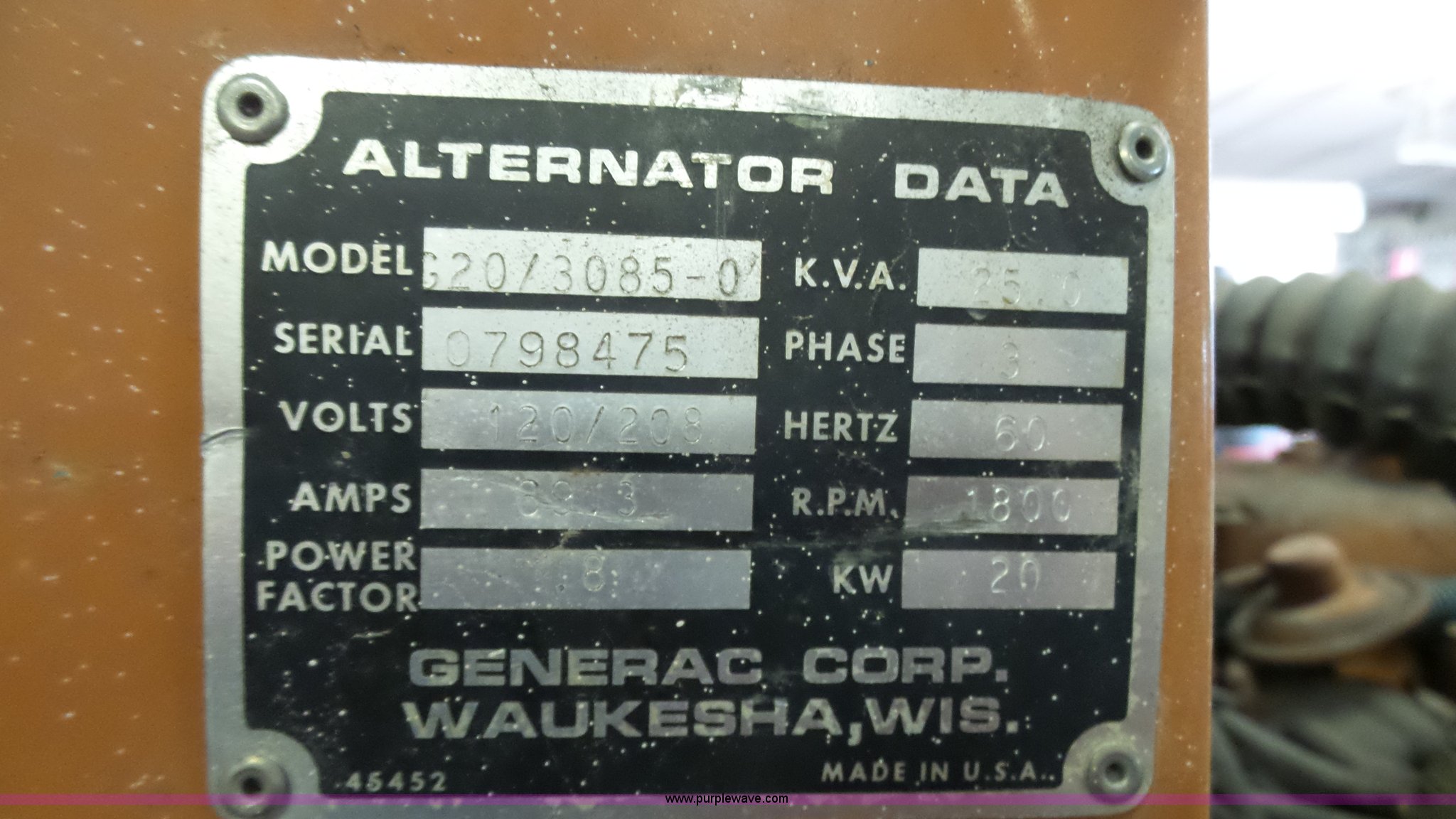 Purple Wave is selling a used Generator Set in Kansas. This item is a 1992 Kohler SG020/3085C generator with the following: 20 kW, 120/280V, Three phase, Natural gas, Skid mounted, No batttery, Serial 798475, KDOT ID 542-1012