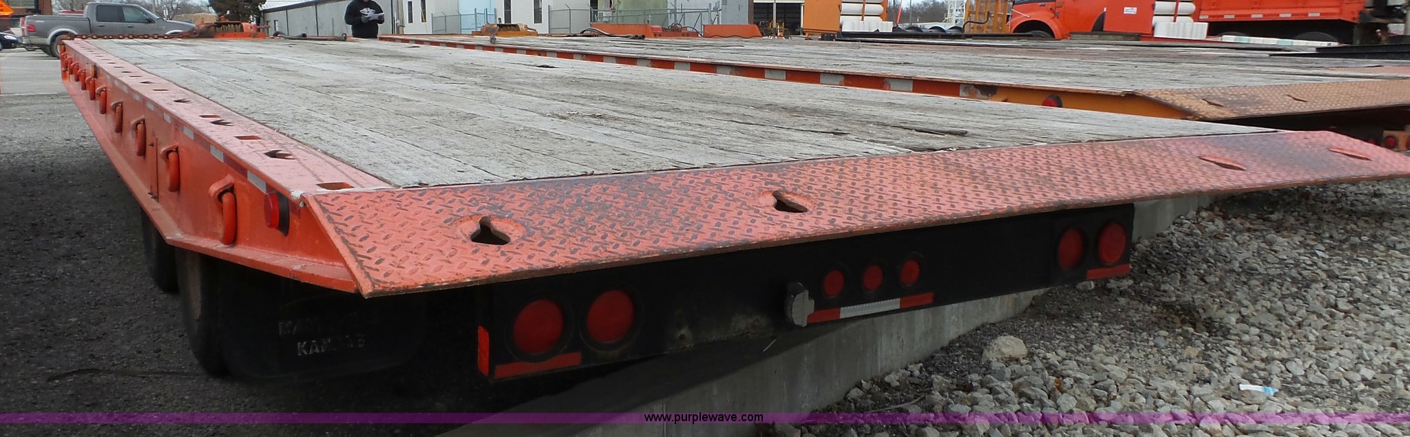 Purple Wave is selling a used Equip. Trailer in Kansas. This item is a 1994 Landoll 343-31 tilt deck trailer with the following: 31'L x 102"W steel deck, D-ring tie downs, Braden winch, Dual leg landing gear, Pintle hitch, Tandem axle, Spring suspension, Air brakes, GVWR 50,000 lbs, GAWR 17,540 lbs, KDOT ID 777-4054