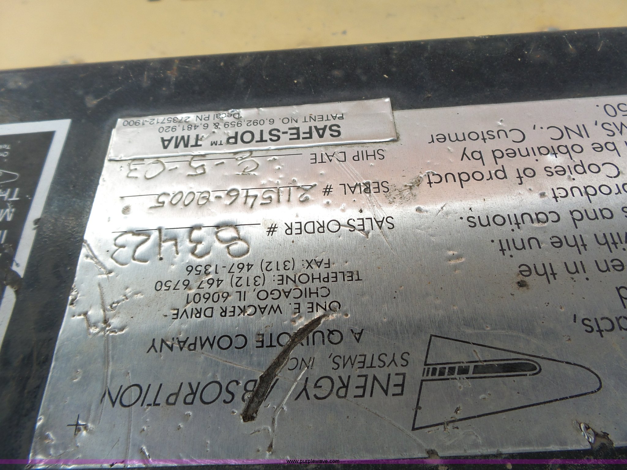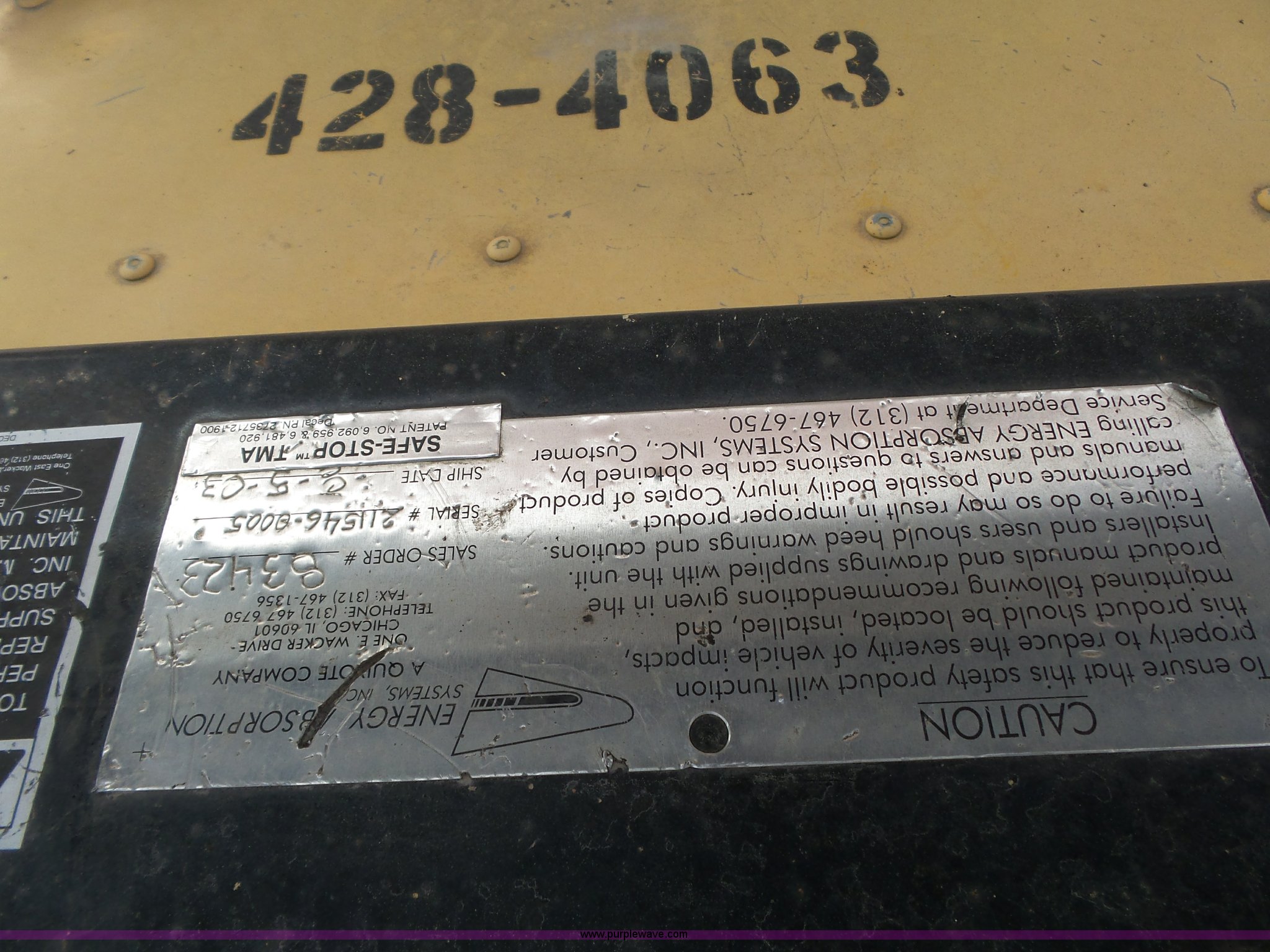 2003 Enabs Safe-Stop TM9180 crash attenuator has sold in Chanute, Kansas for $11550. Item BL9647 sold on March 24th, 2016.