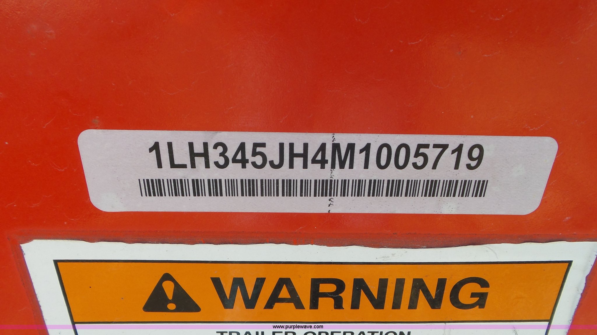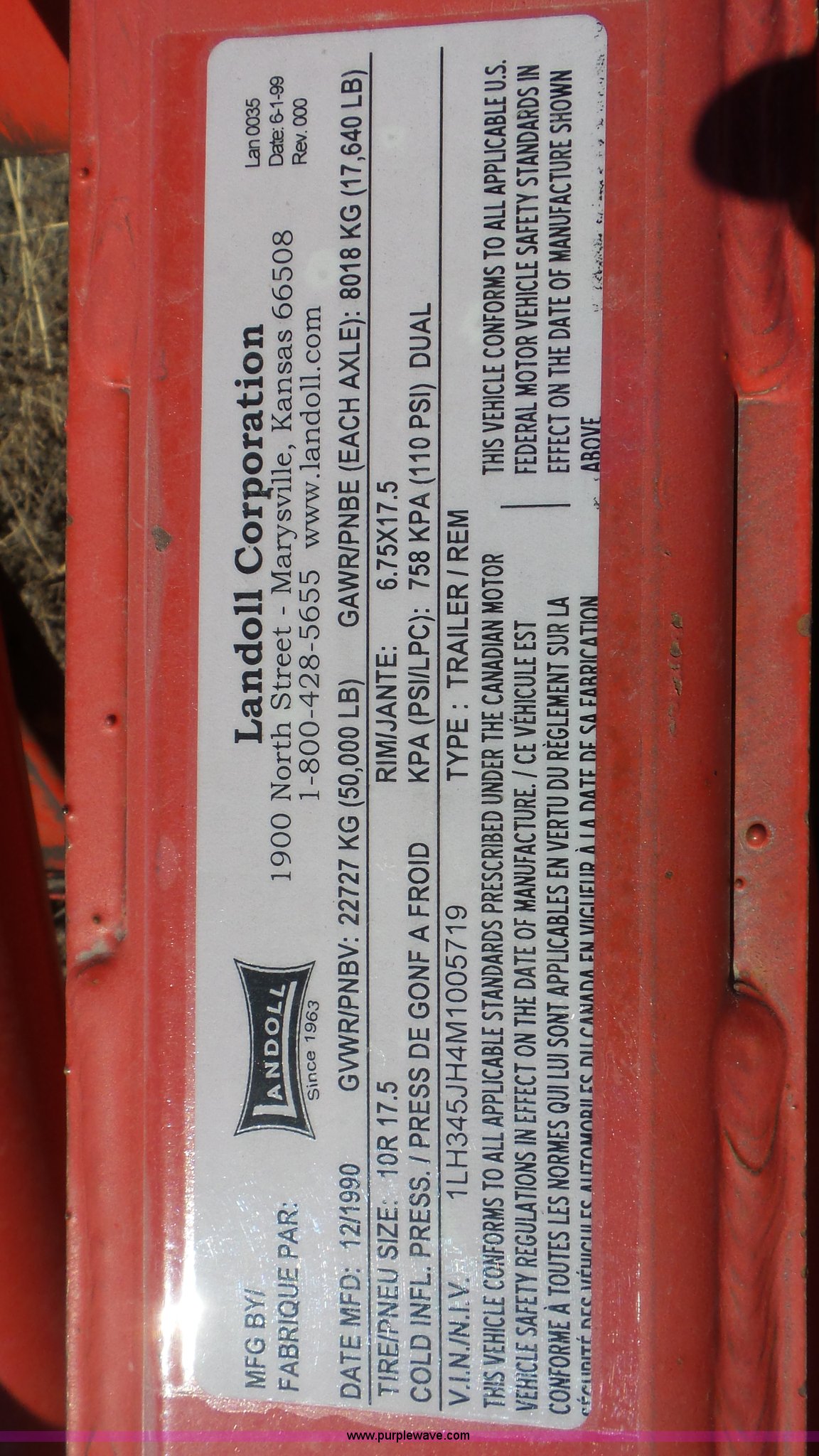 Purple Wave is selling a used Equip. Trailer in Kansas. This item is a 1991 Landoll 345 equipment trailer with the following: 31'L x 102"W wood deck, 39" deck height, Winch, 12,000 lbs capacity, D-ring tie downs, Toolbox, Dual leg landing gear, Pintle hitch, Sliding axle, Tandem axle, Air brakes, 10R17.5 tires, GVWR 50,000 lbs, Rust, KDOT ID 777-6021
