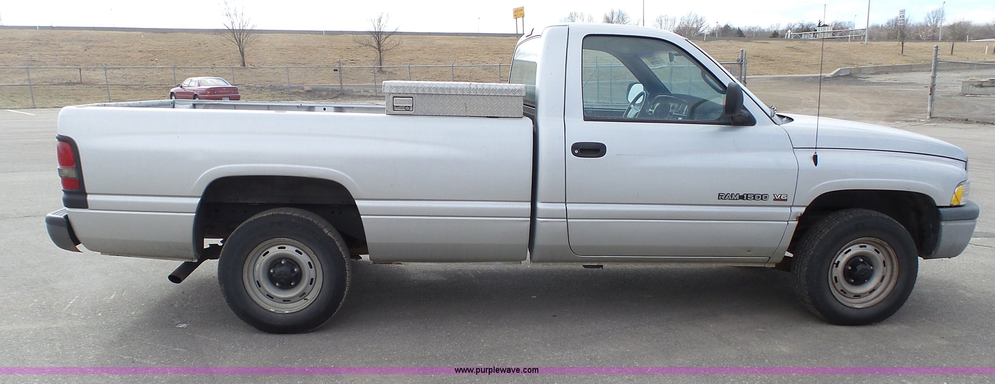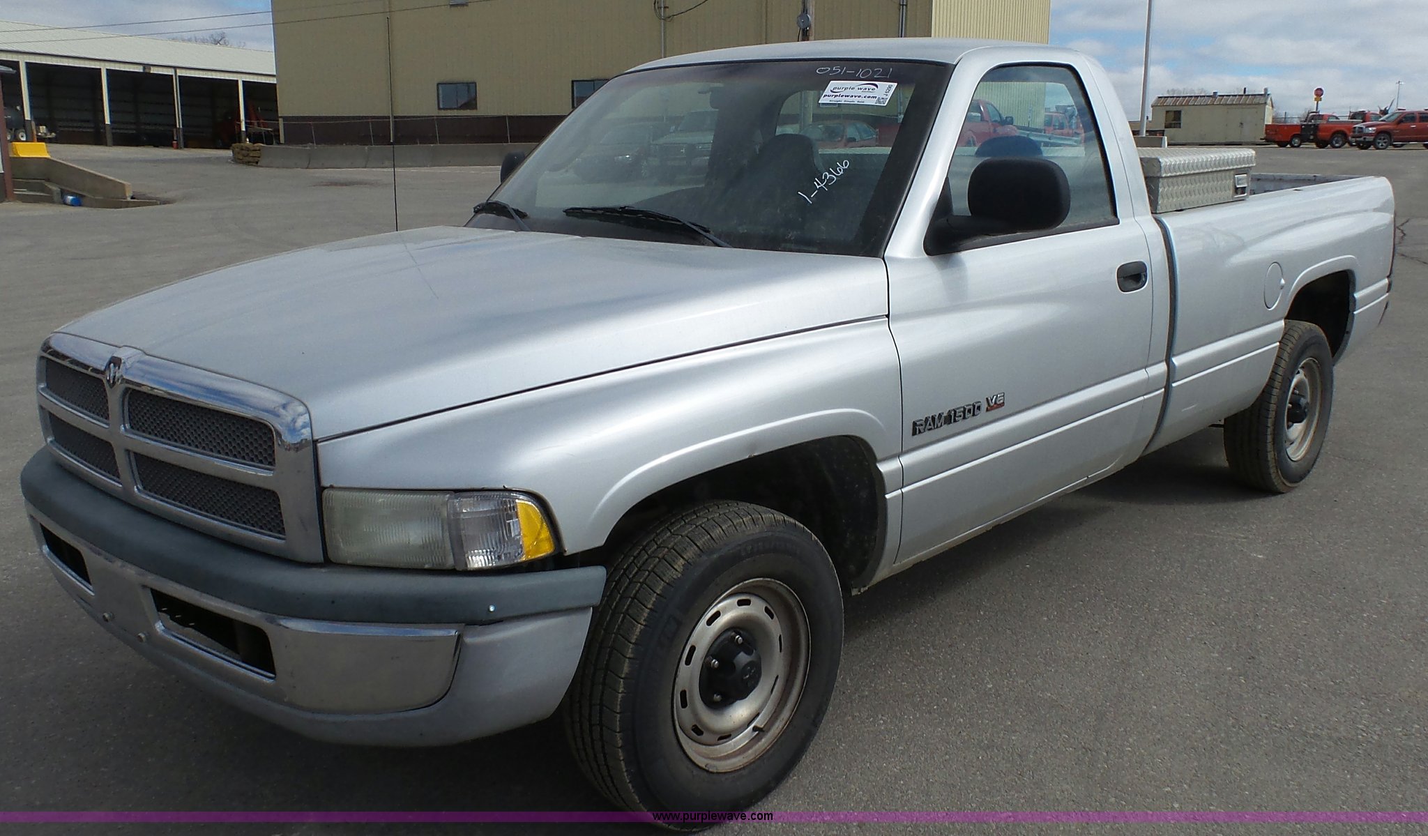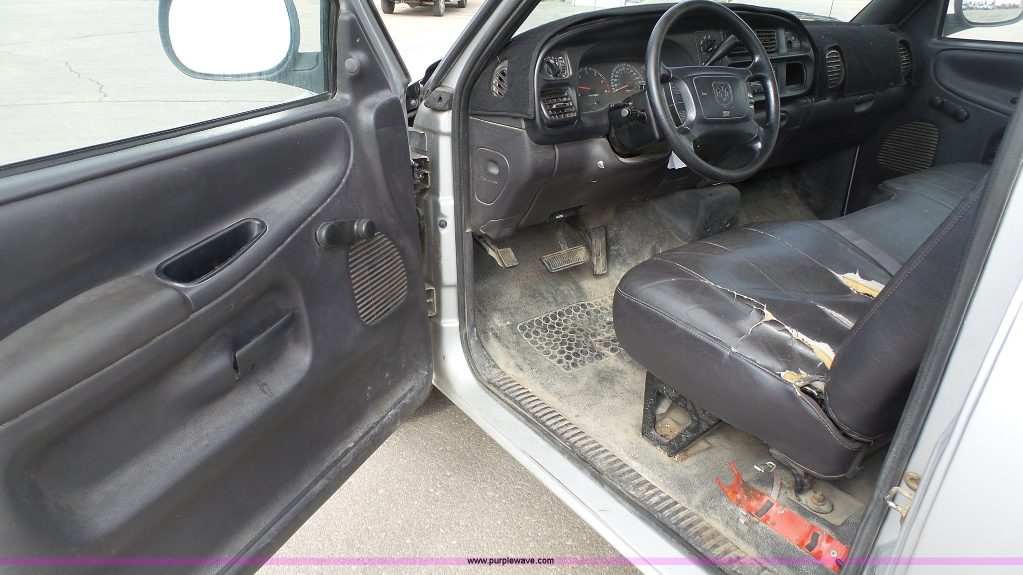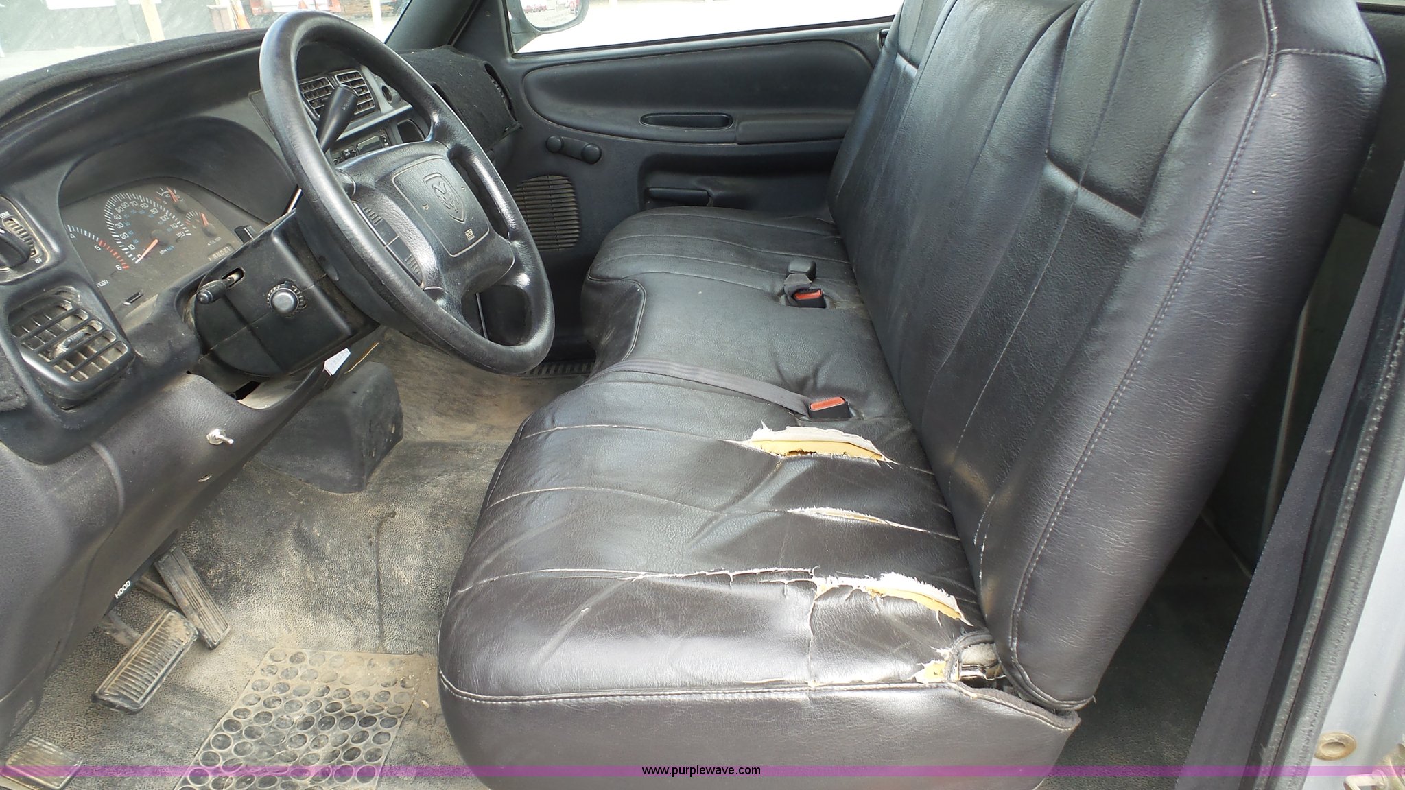 Purple Wave is selling a used 1/2 Ton Pickup or Van in Kansas. This item is a 2001 Dodge Ram 1500 pickup truck with the following: 117,454 miles on odometer, 3.9L V6 OHV 12V gas engine, Automatic transmission, AC and heat, Tilt, Cruise, AM/FM/cassette, Manual windows and locks, Vinyl interior, Cross bed toolbox, Long bed, 225/75R16 tires, Dash cracked, Interior/exterior cosmetic damage, Paint faded and scratched, KDOT ID 051-1021