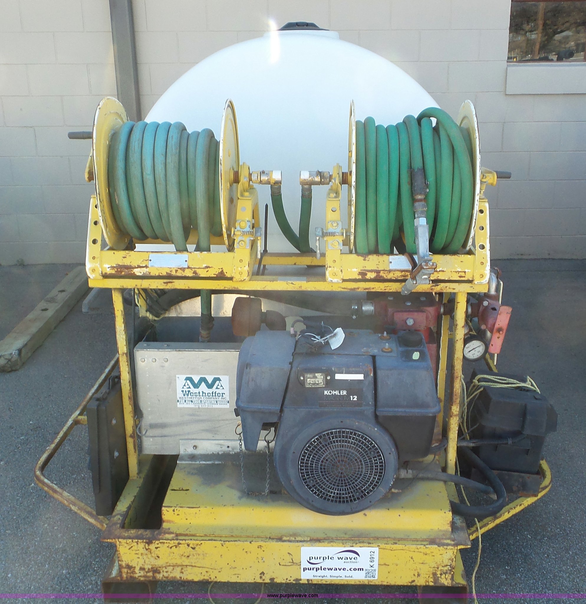 1997 Westheffer FG50F20K20M weed sprayer. 536 hours on meter, Kohler Magnum gas engine Bean B-20 pump, 20 gallon per minute capacity at 50 psi, (2) hoses, (2) hose reels, (2) spray guns, Battery needs replaced, Serial 25051, KDOT ID 712-2037. Kansas Department of Transportation - Salina. 1006 N 3rd. Salina, KS 67402