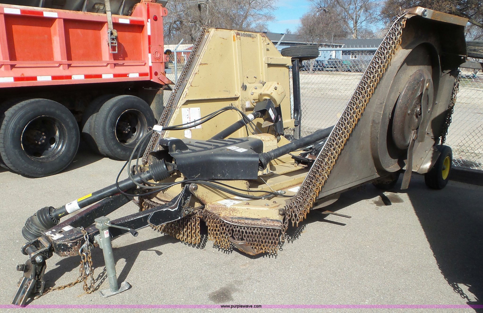 Purple Wave is selling a used Mower, Cutter, Shredder in Kansas. This item is a 2005 Land Pride RCB6015 rotary mower with the following: 15' cutting capacity, 1000 PTO, Tongue mounted jack stand, Draw bar mount, Pin hitch, 7.7" wheels, Tires worn, Chain guards bent, Serial 473318, KDOT ID 397-2085