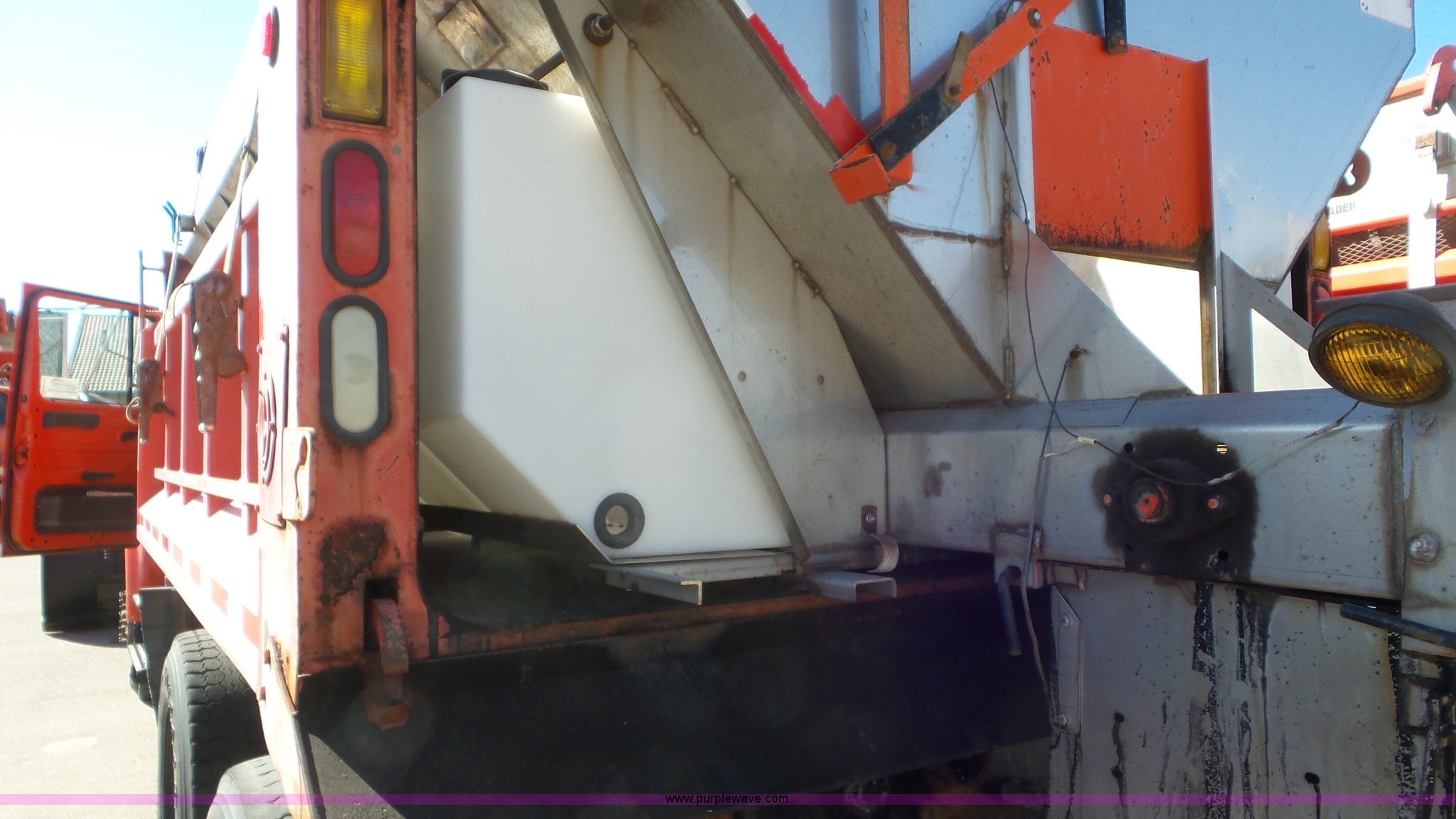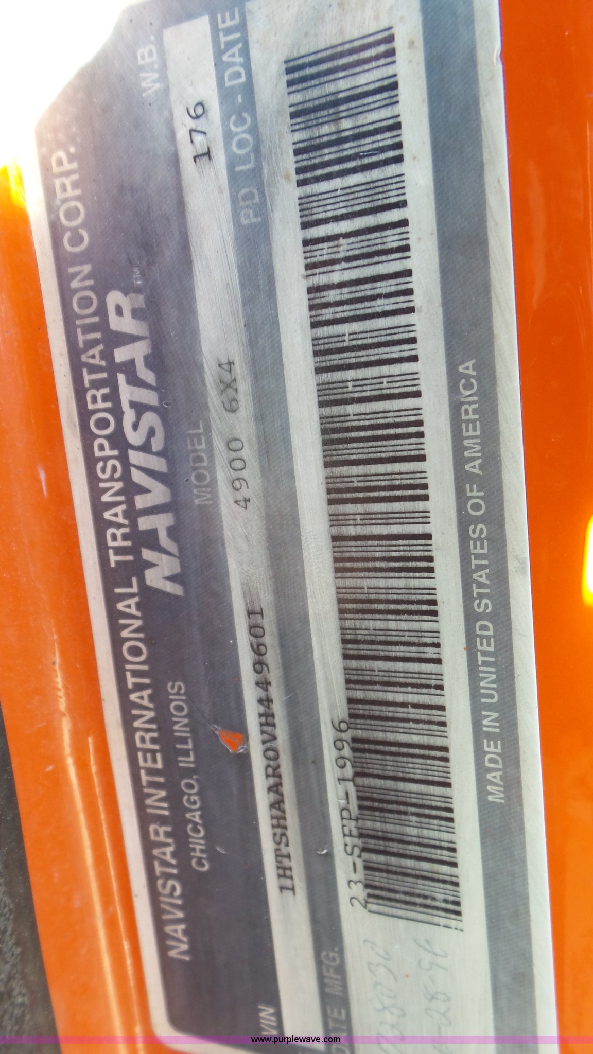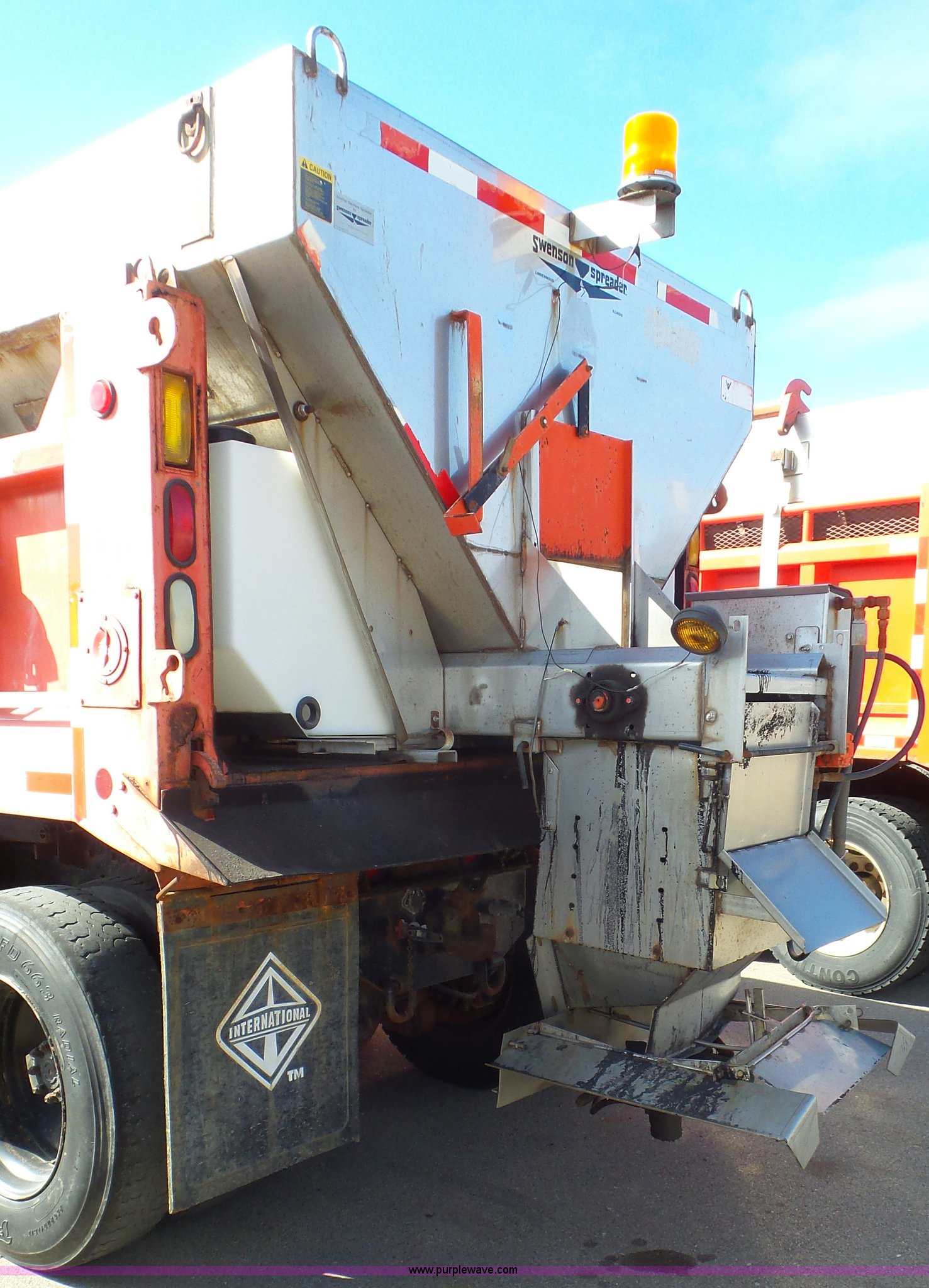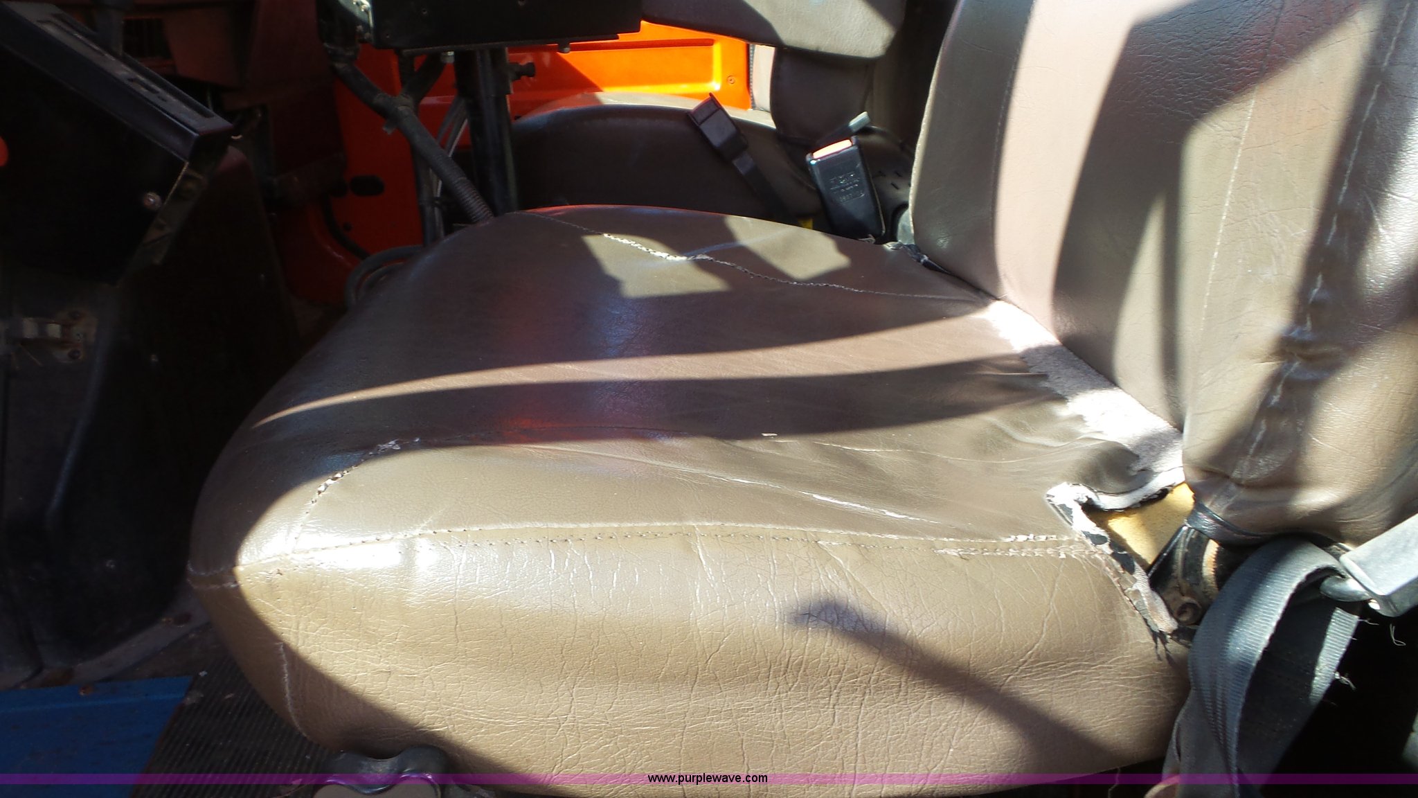 Purple Wave is selling a used Construction Dump Truck in Kansas. This item is a 1997 International 4900 dump truck with the following: 165,207 miles on odometer, International DT466 7.6L L6 turbo diesel engine, Automatic transmission, Tandem axle, AC and heat, AM/FM, Air suspension seat, Trailer brake controller, PTO, 13'L steel bed, Single fuel tank, Rear glad hand couplers, Side hydraulic couplers, Air operated end gate, Spring suspension, Air brakes, 275/80R22.5 front tires, 295/75R22.5 rear tires, Batteries weak, KDOT ID 264-2016